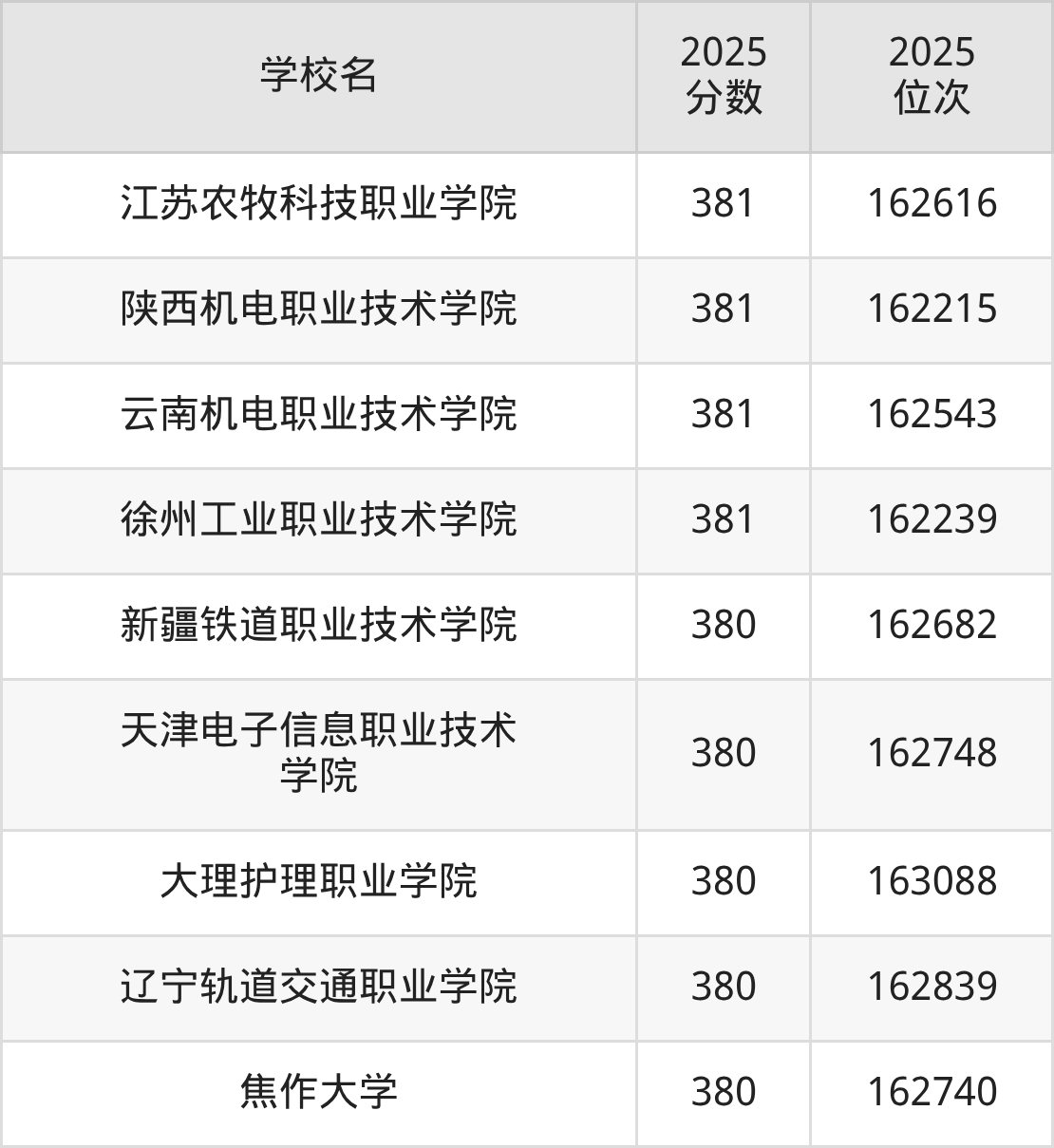录取分数线的波动较大,下面圆梦小编为大家带来了2025年380到400分对应的位次排名区间,建议2026年位于该位次范围内的考生参考上文所整理的学校(本文仅针对贵州省)。