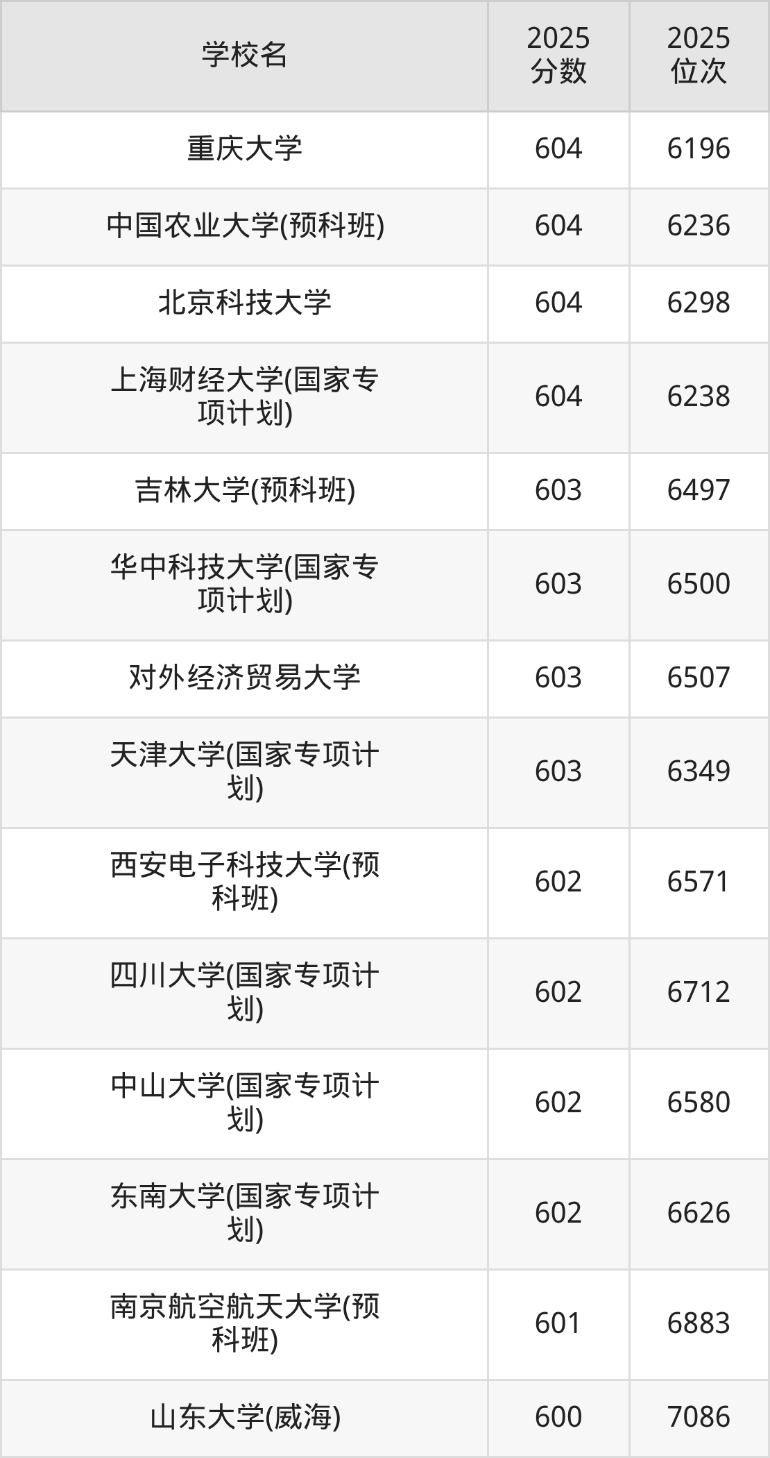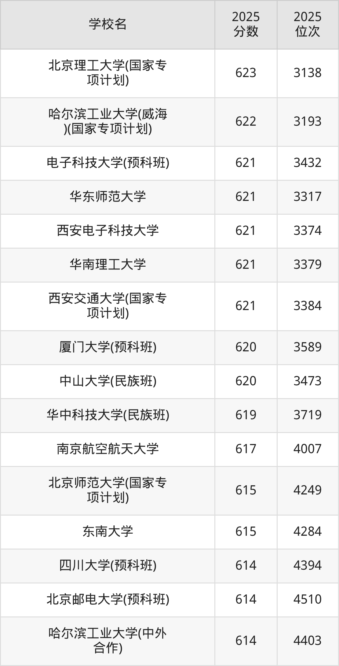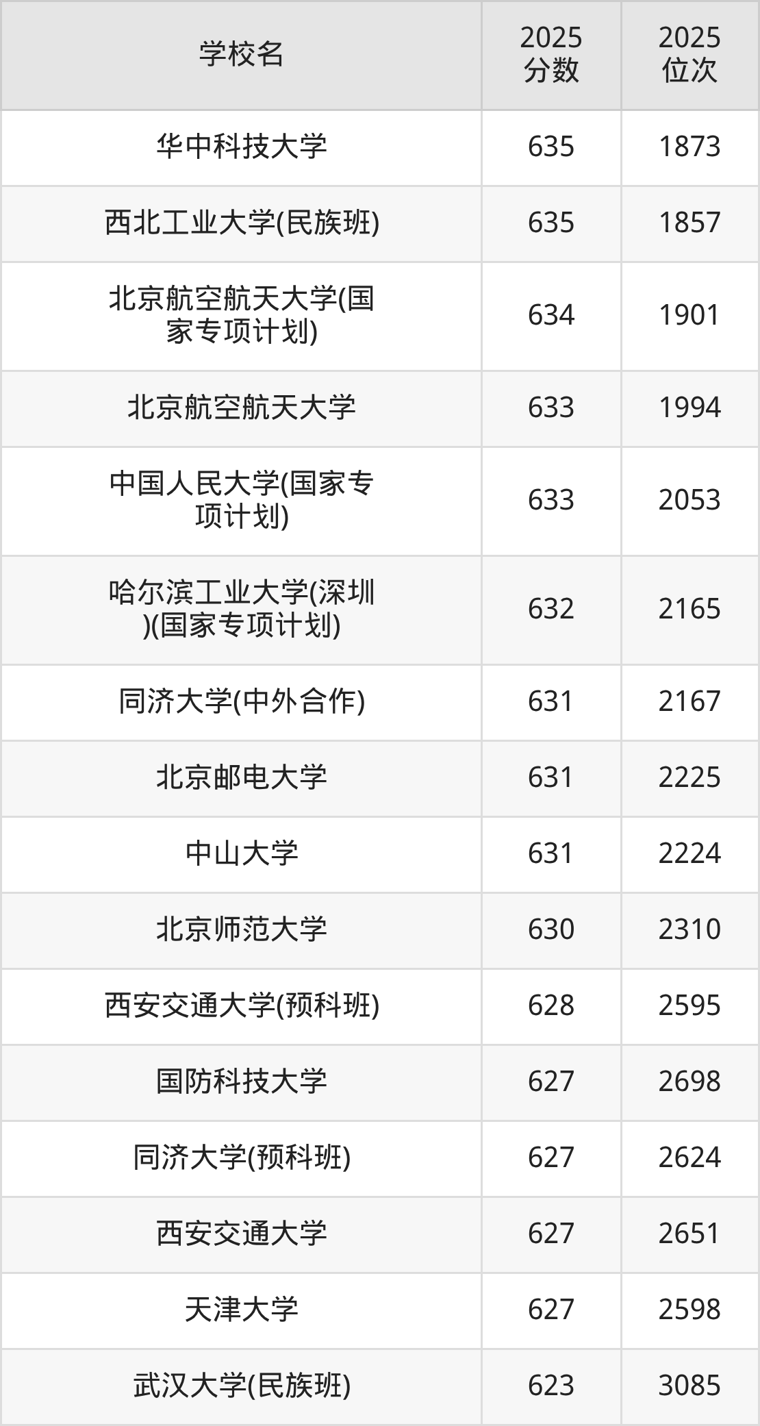 | 学校名 | 2025 分数 | 2025 位次 |