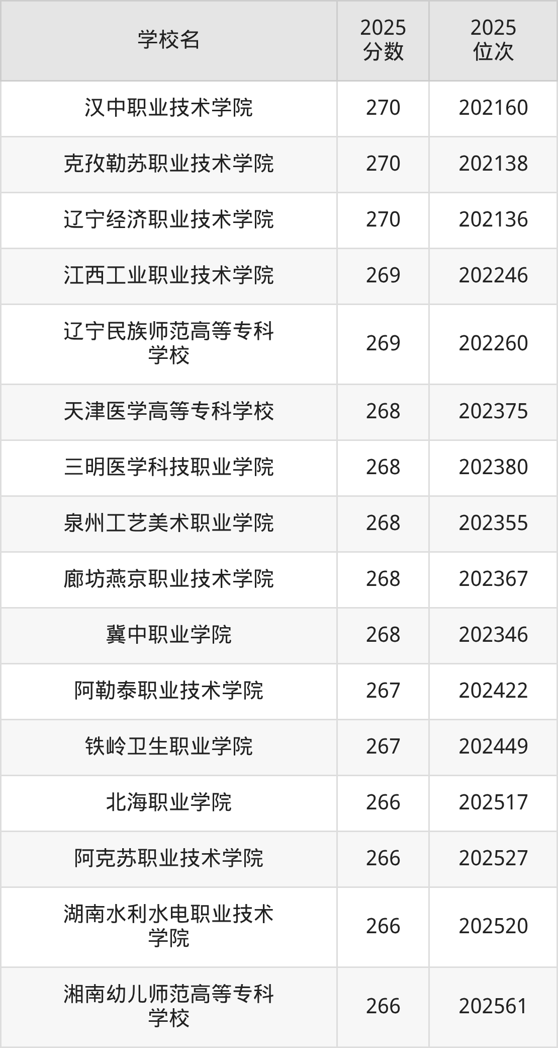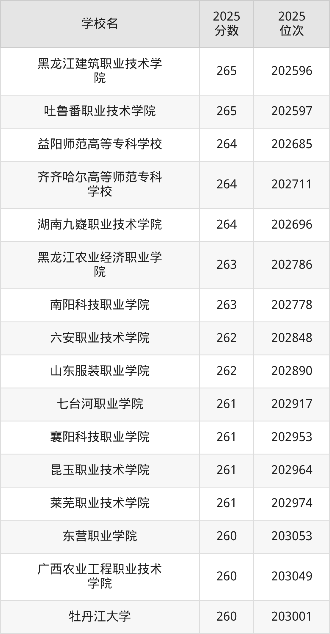 录取分数线的波动较大,下面圆梦小编为大家带来了2025年260到300分对应的位次排名区间,建议2026年位于该位次范围内的考生参考上文所整理的学校(本文仅针对贵州省)。