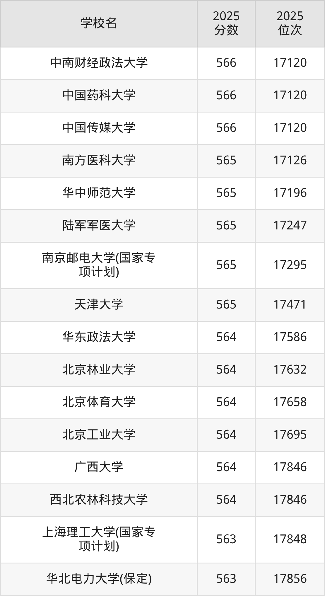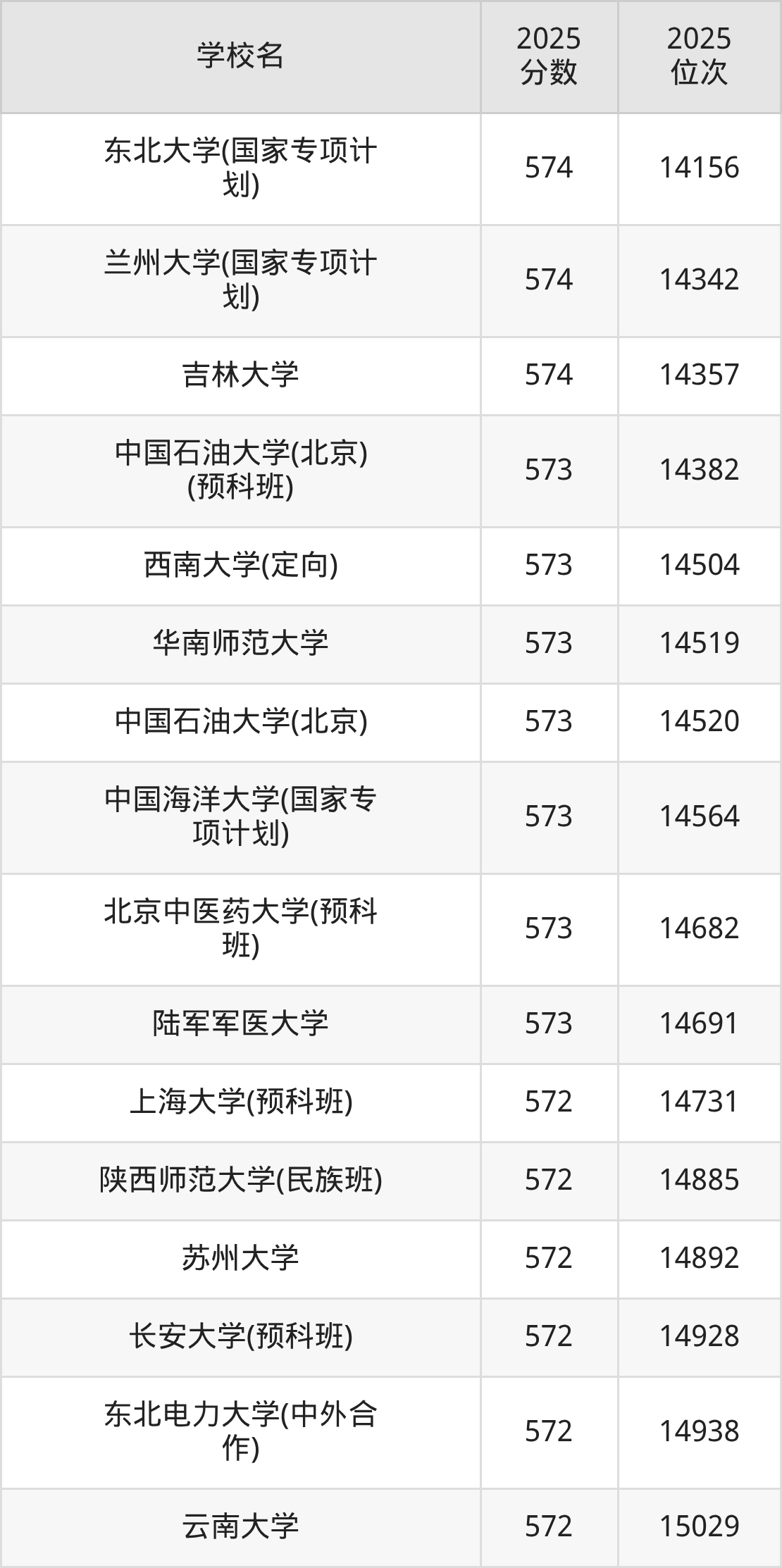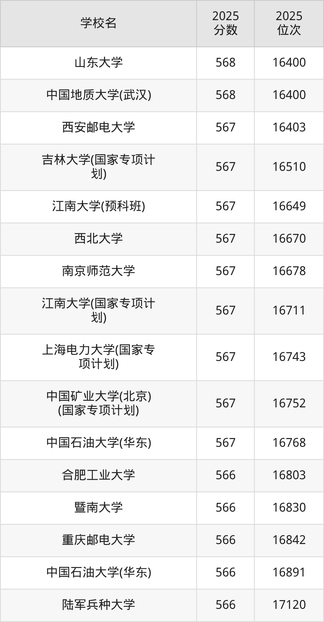 | 学校名 | 2025 分数 | 2025 位次 |