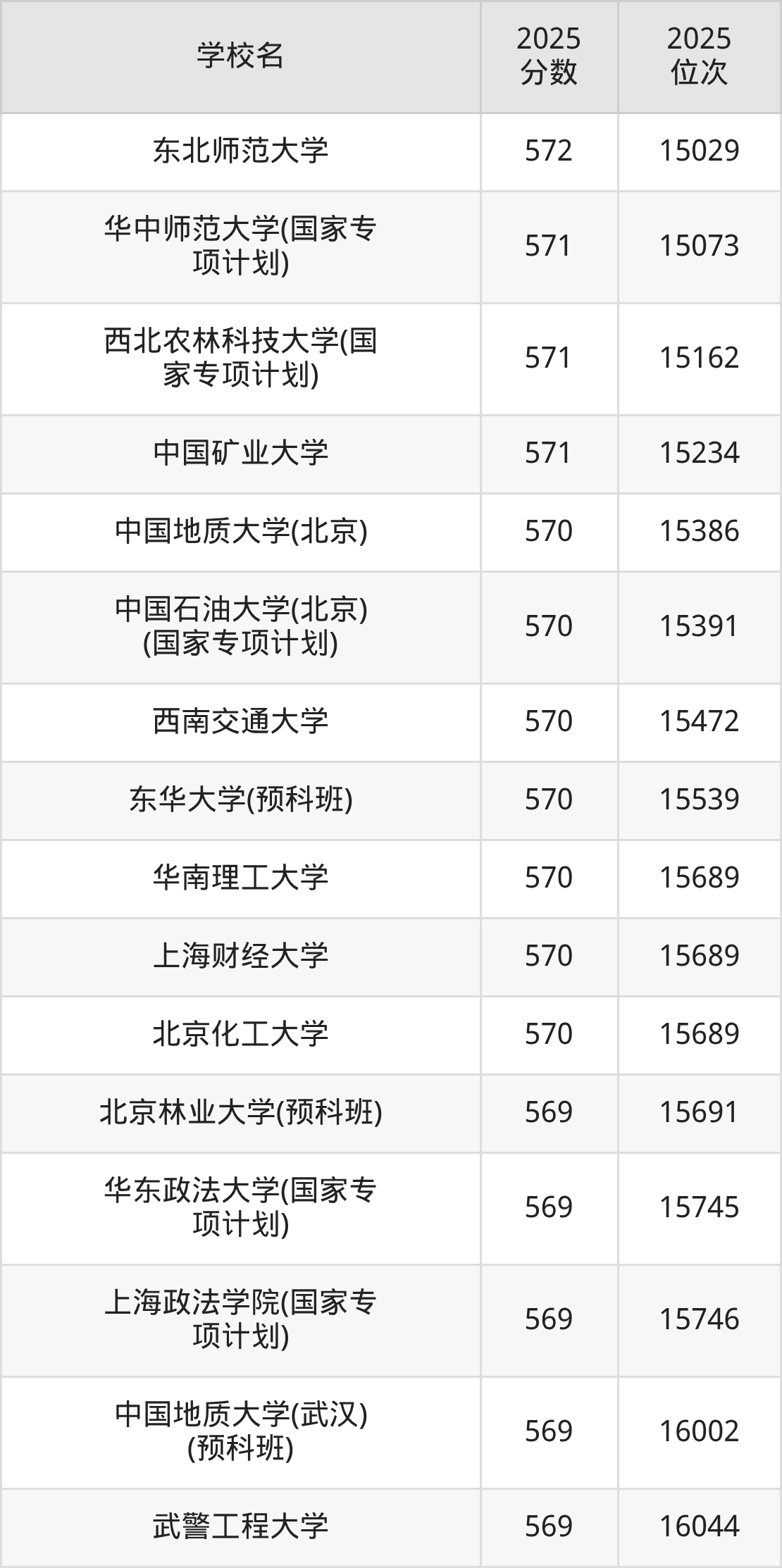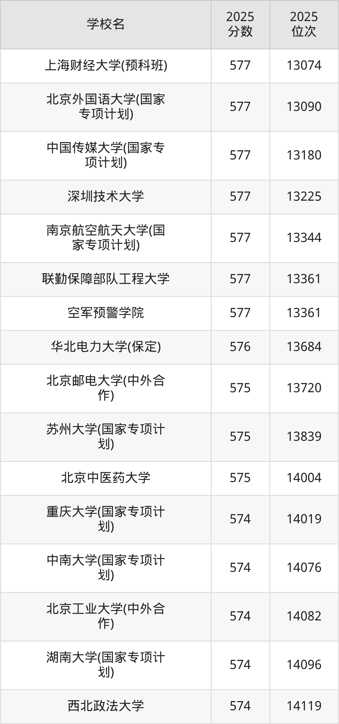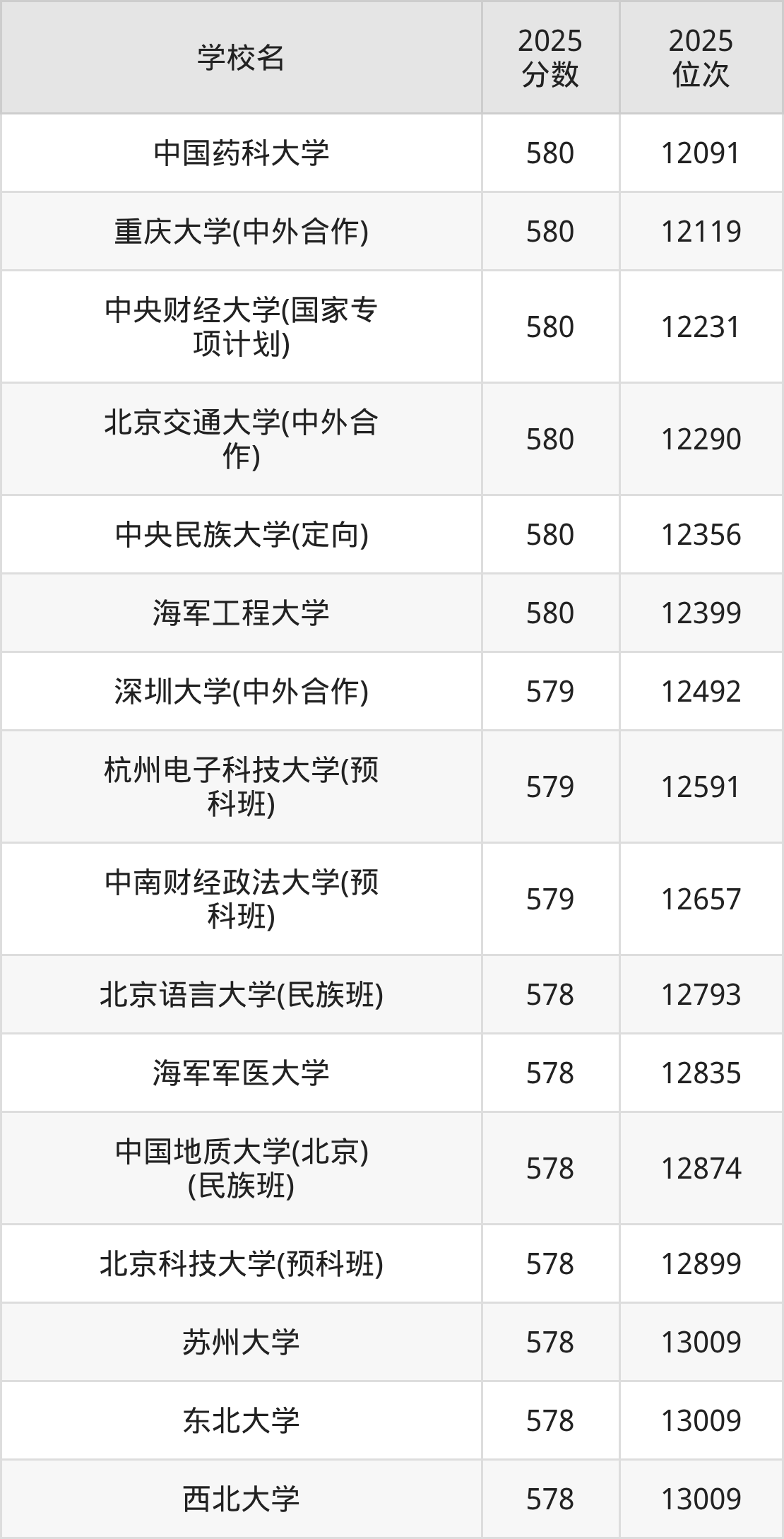 | 学校名 | 2025 分数 | 2025 位次 |