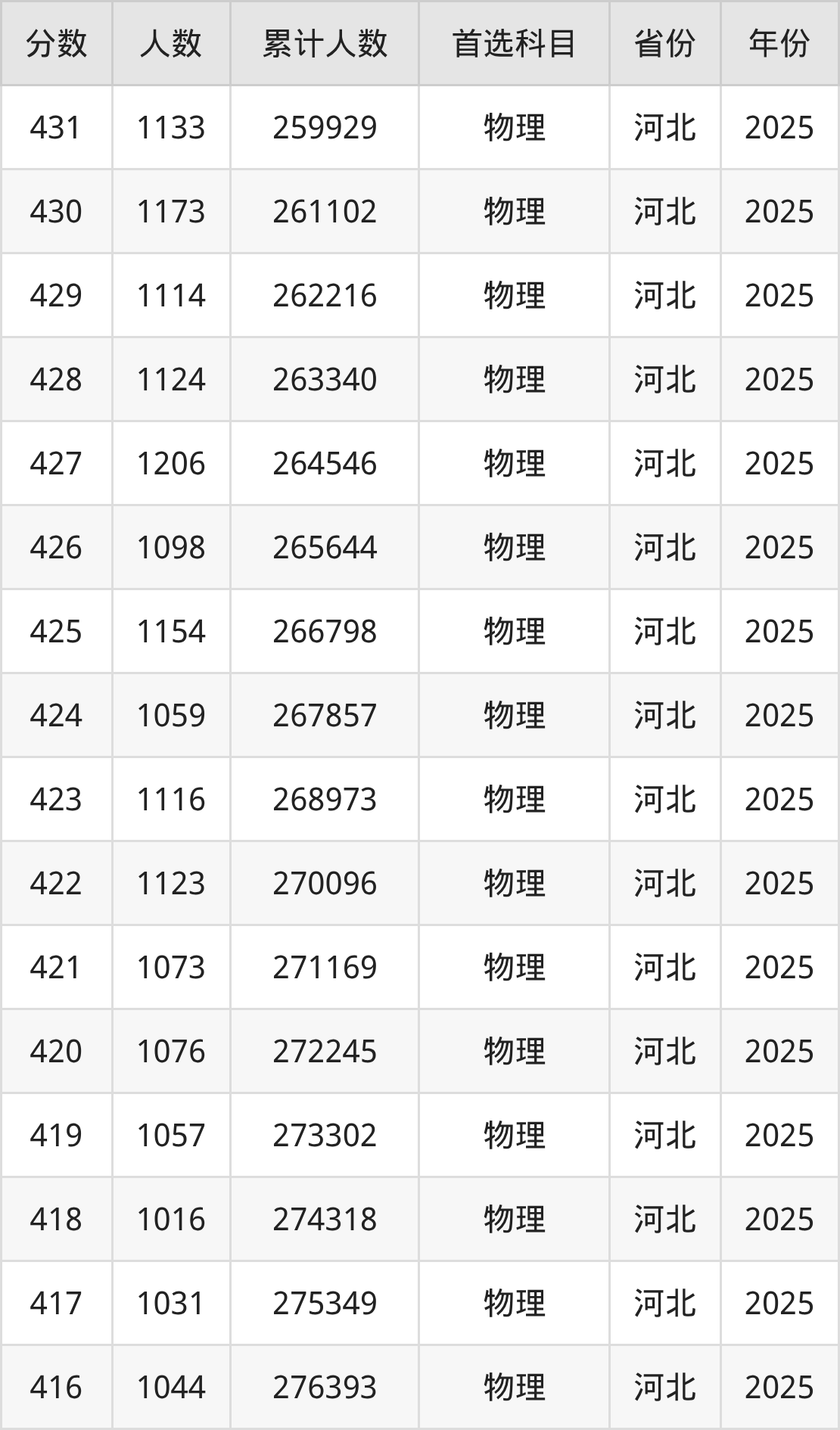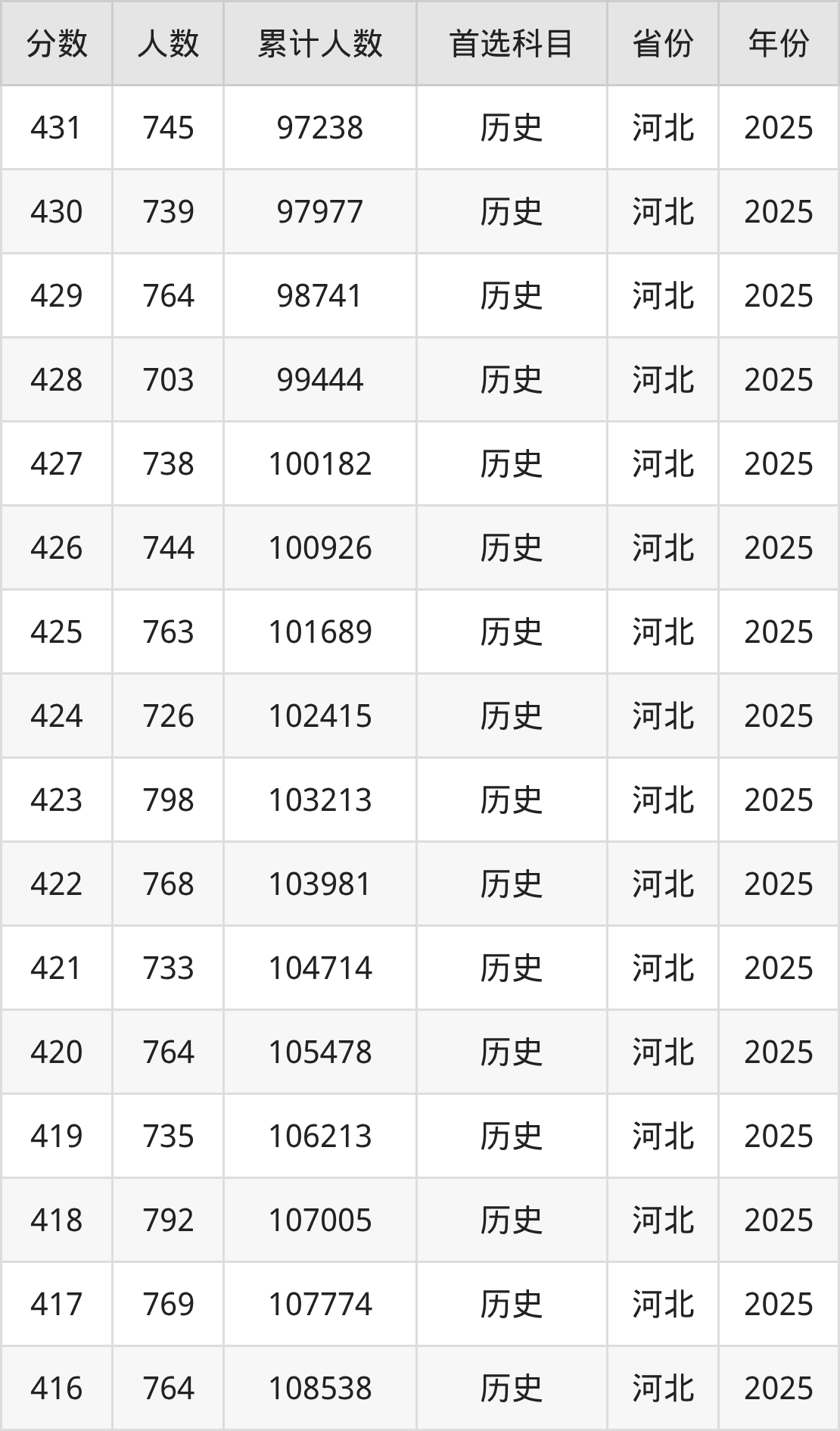 录取分数线的波动较大,下面圆梦小编为大家带来了2025年410到430分对应的位次排名区间,建议2026年位于该位次范围内的考生参考上文所整理的学校(本文仅针对河北省)。