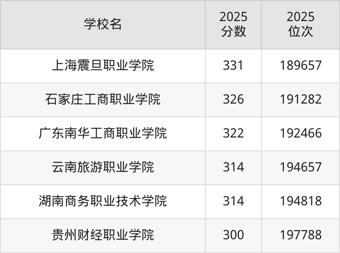 | 学校名 | 2025 分数 | 2025 位次 |