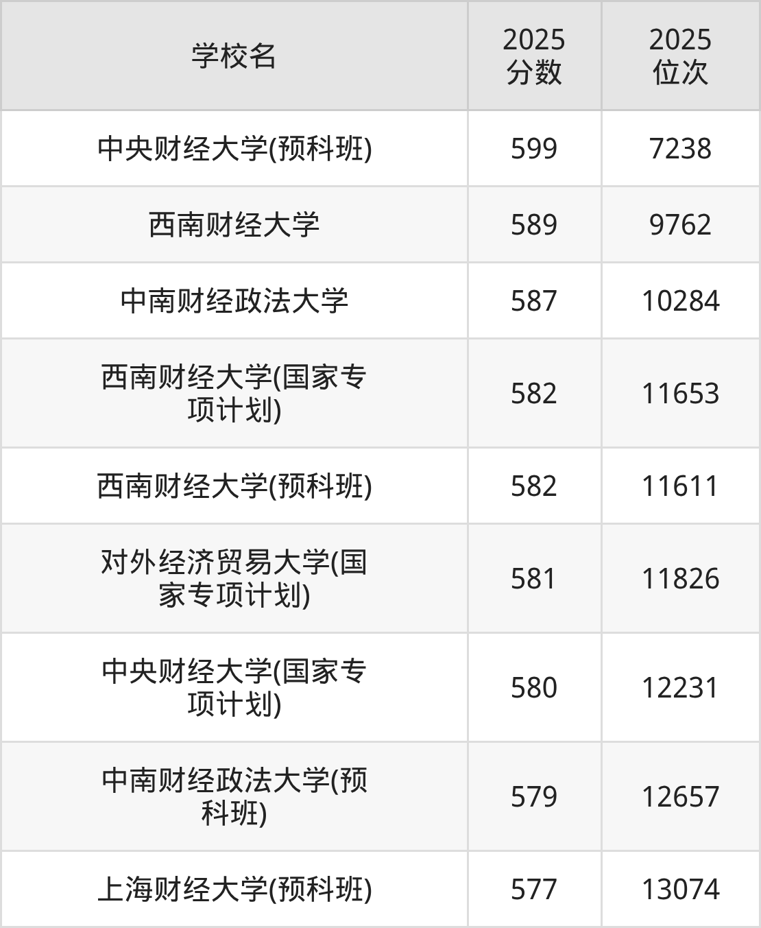 温馨提示:全国各省录取分数线不相同,本文以贵州省为例,为大家带来2025年录取分数线位于570到600分的财经大学名单汇总,并附上该分数段对应的位次排名区间,供查阅。