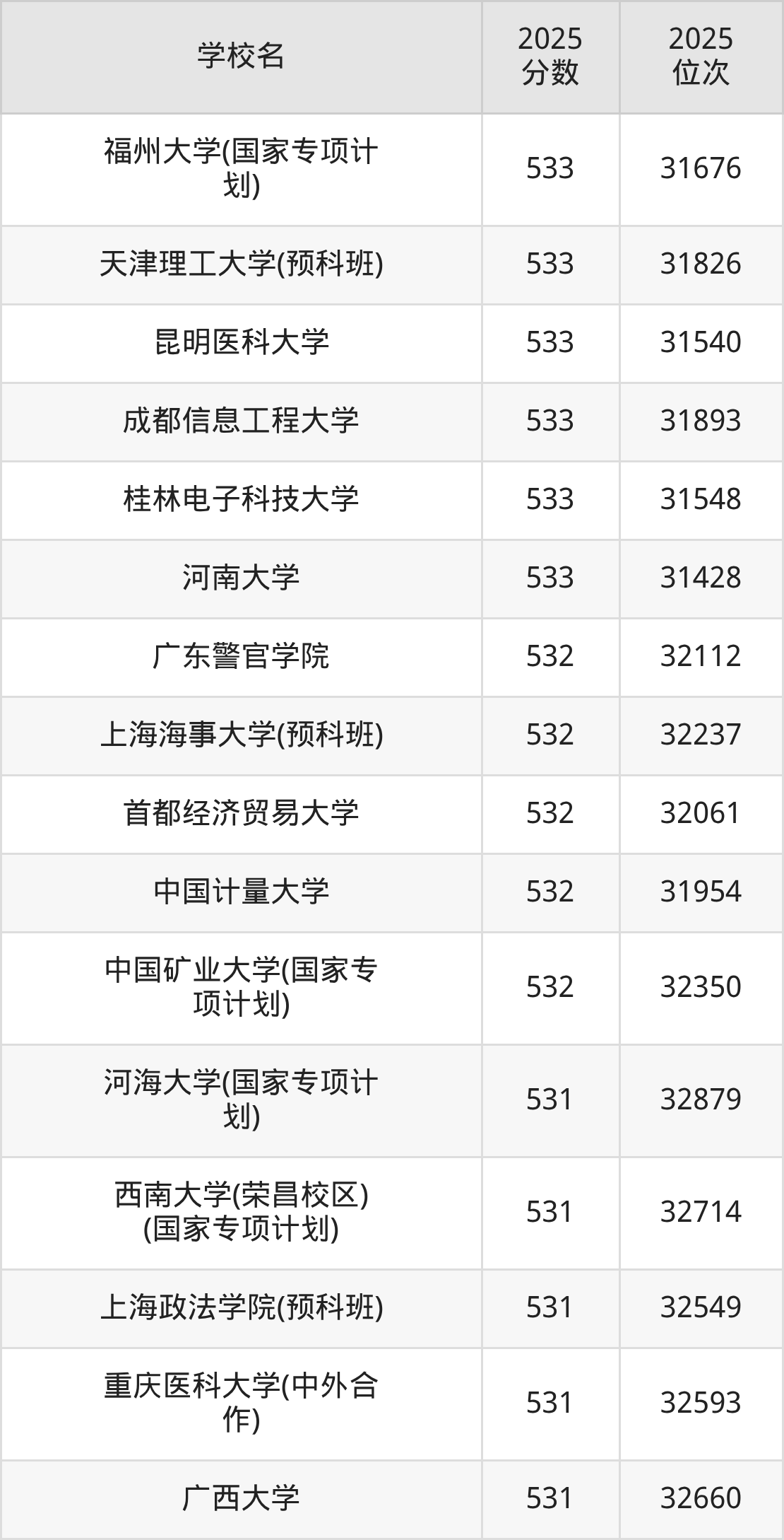 录取分数线的波动较大,下面圆梦小编为大家带来了2025年530到580分对应的位次排名区间,建议2026年位于该位次范围内的考生参考上文所整理的学校(本文仅针对贵州省)。