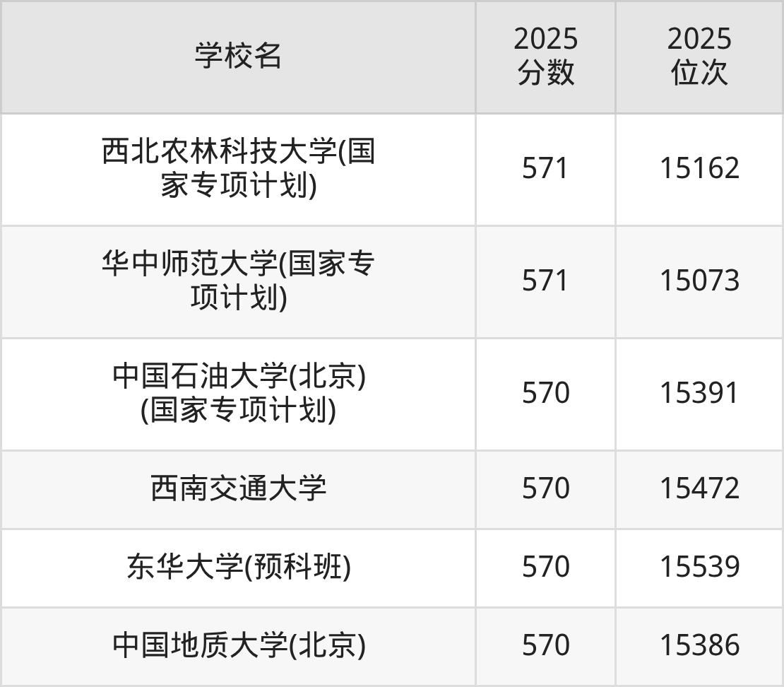 温馨提示:全国各省录取分数线不相同,本文以贵州省为例,为大家带来2025年录取分数线位于570到580分的211大学名单汇总,并附上该分数段对应的位次排名区间,供查阅。