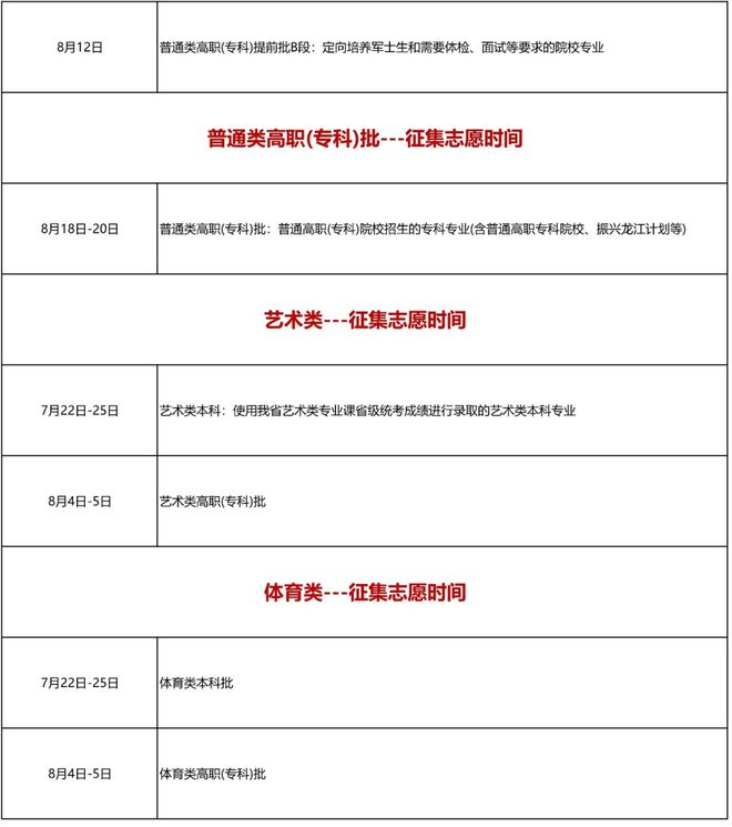 8月4日:填报普通高职(专科)批次征询志愿。