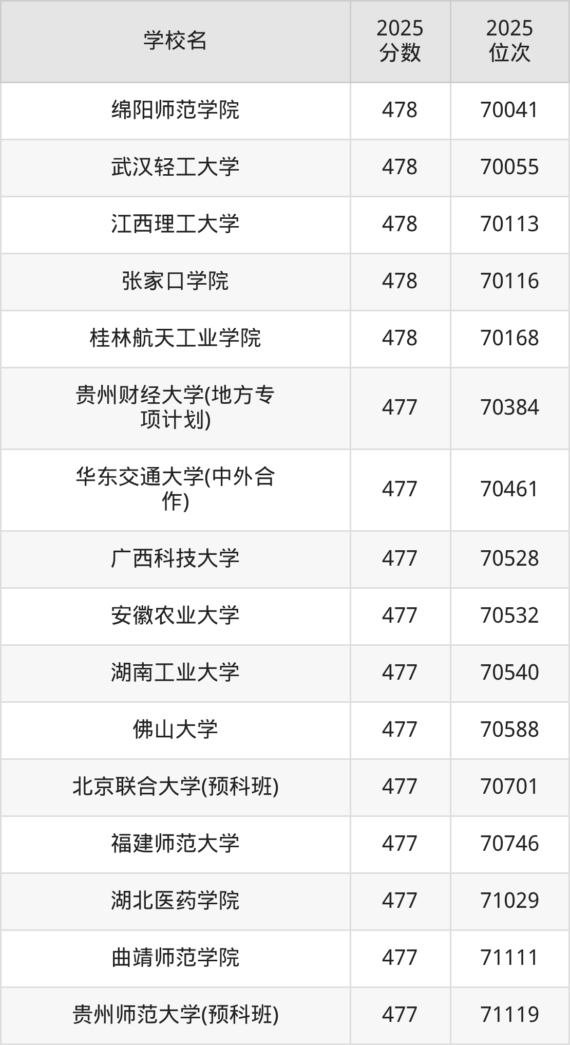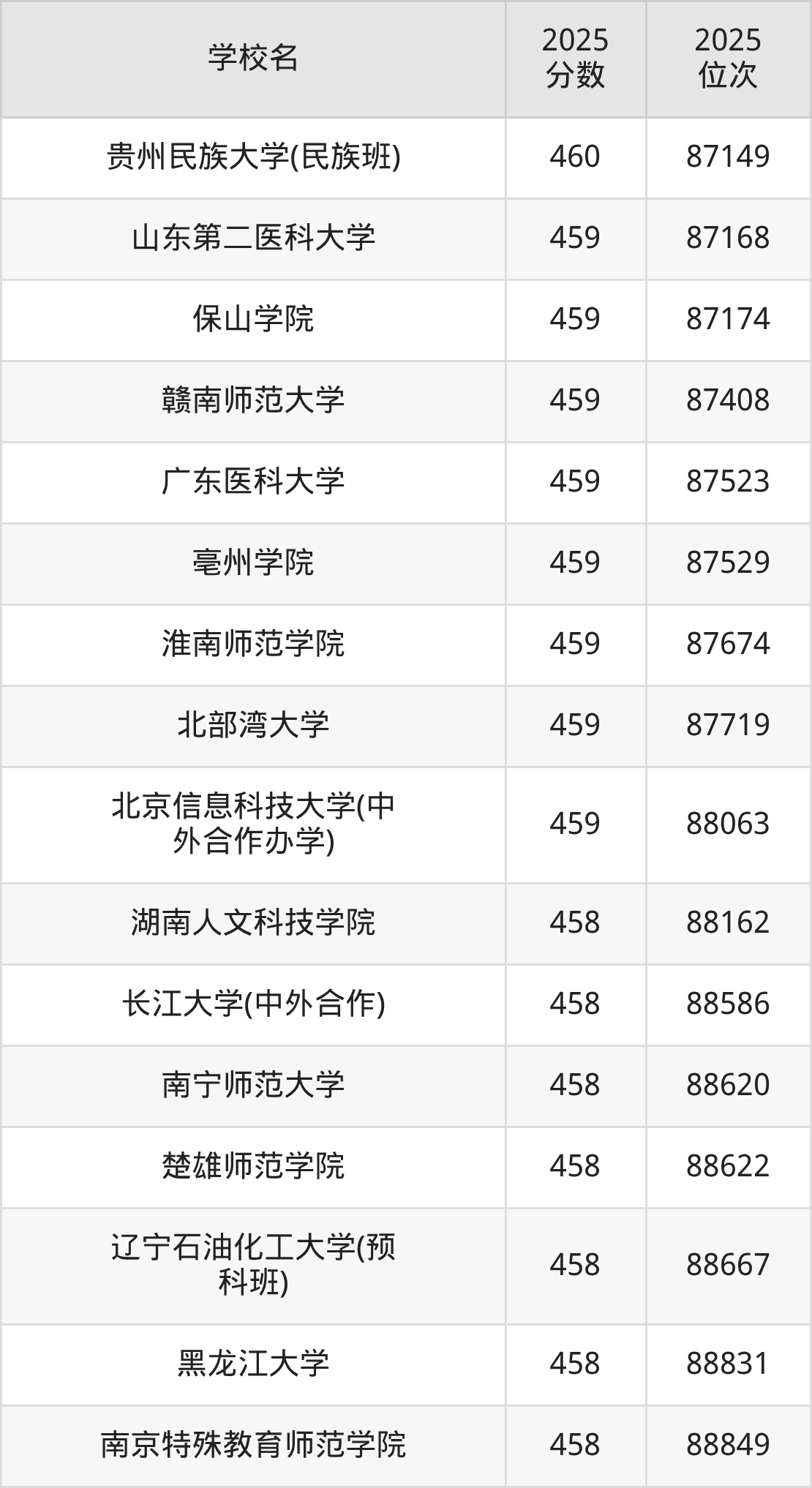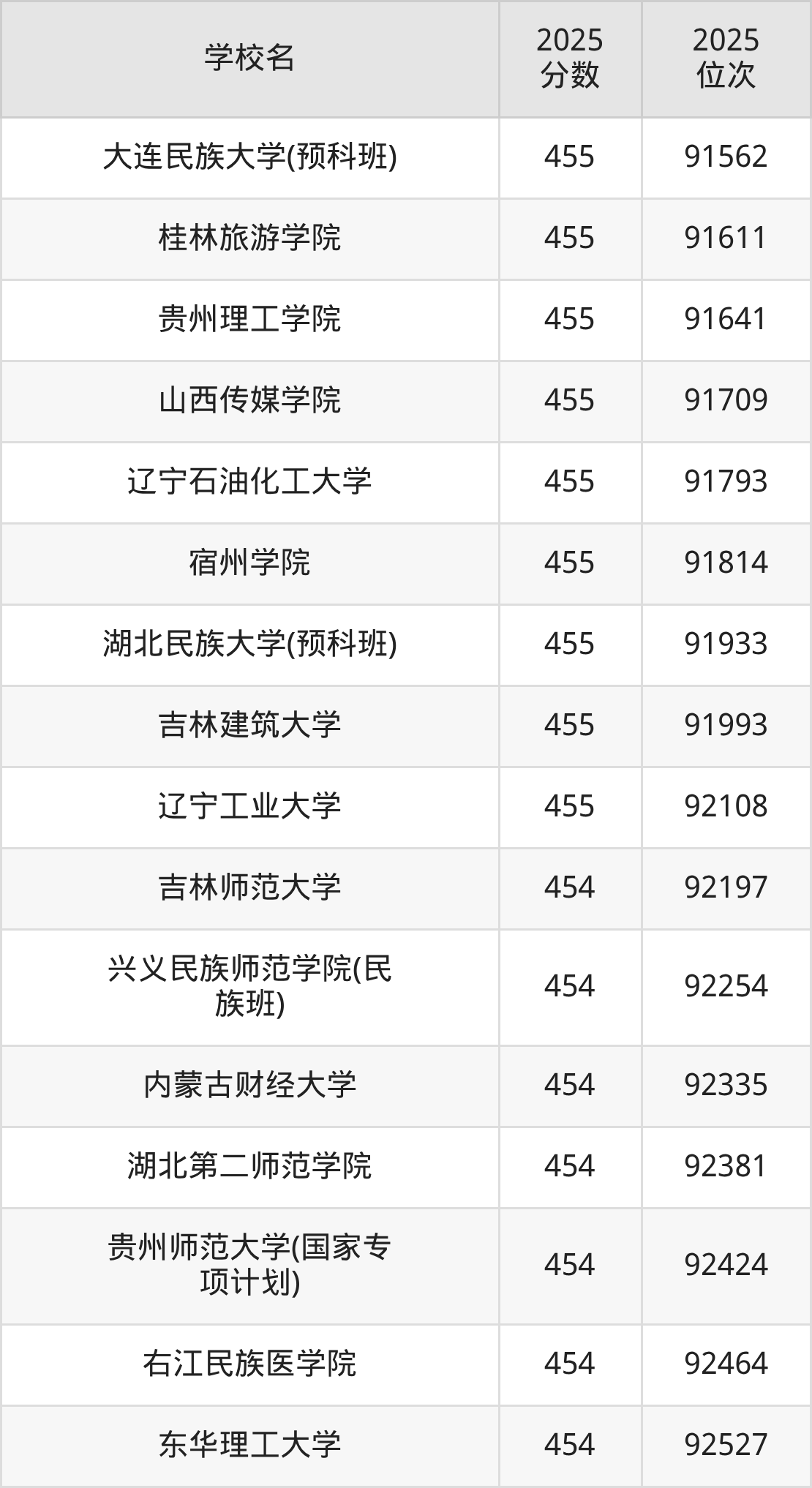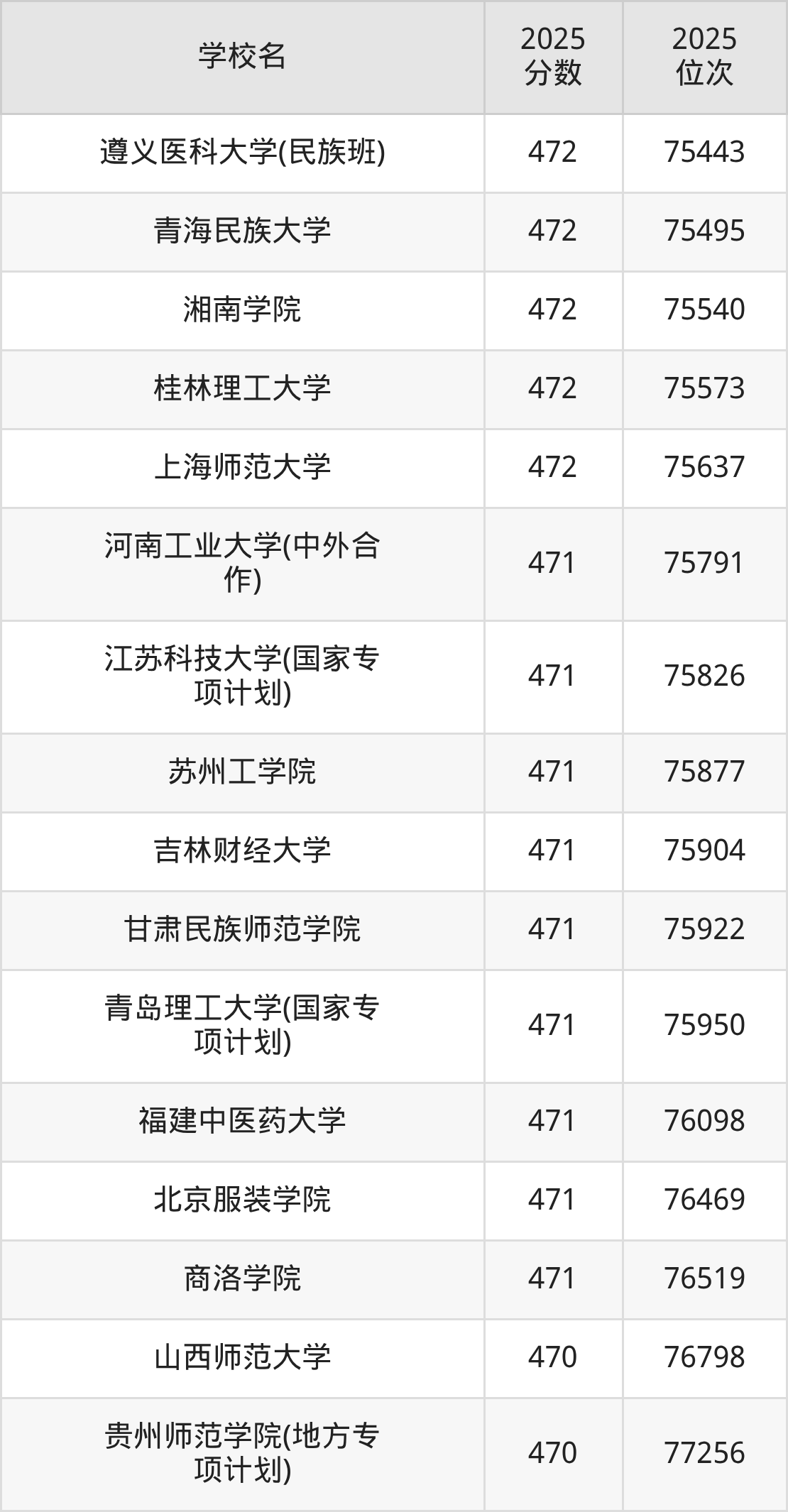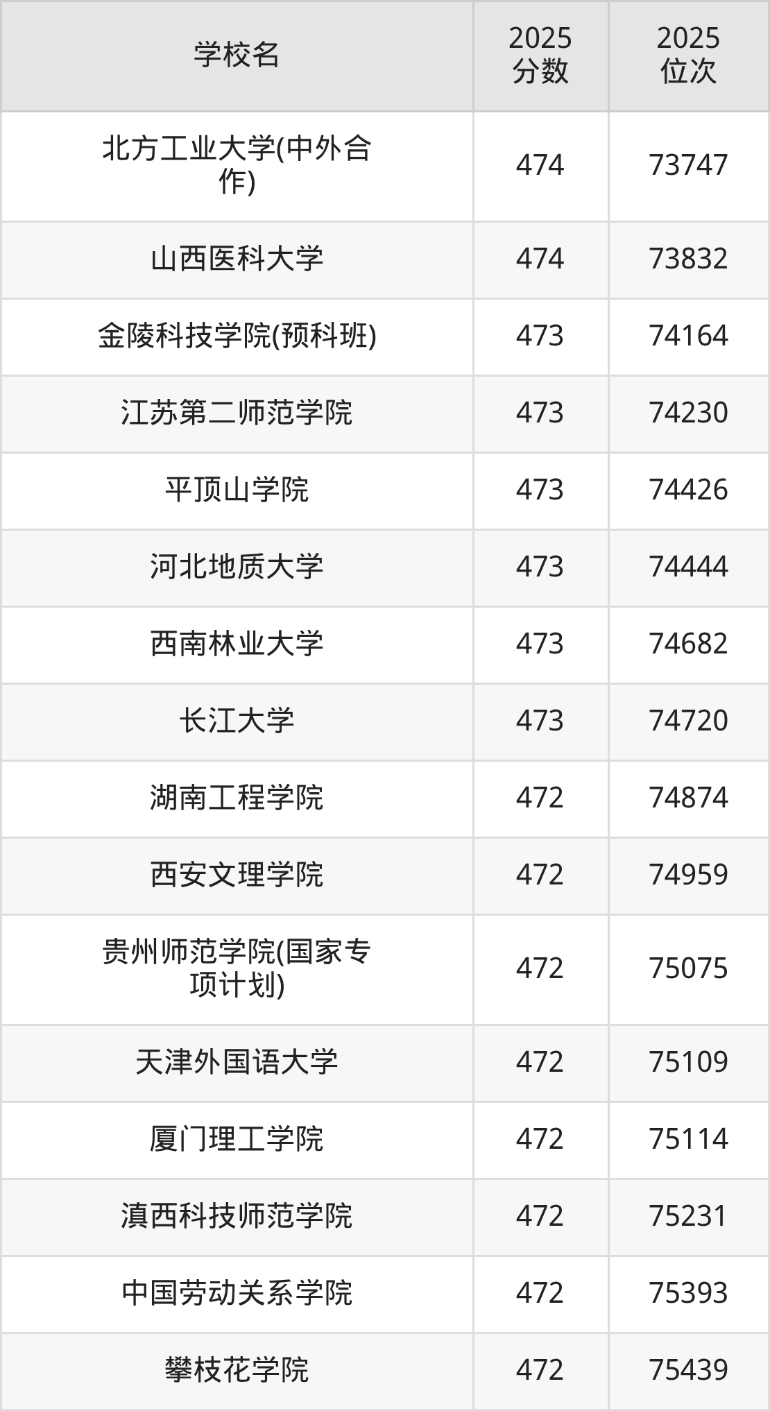 鉴于录取分数线存在一定波动,本文特此整理2025年高考400到500分数段所对应的位次排名区间,供2026年高考成绩处于该位次范围内的考生参考上文所列院校信息。需说明的是,本文内容仅适用于贵州省高考。