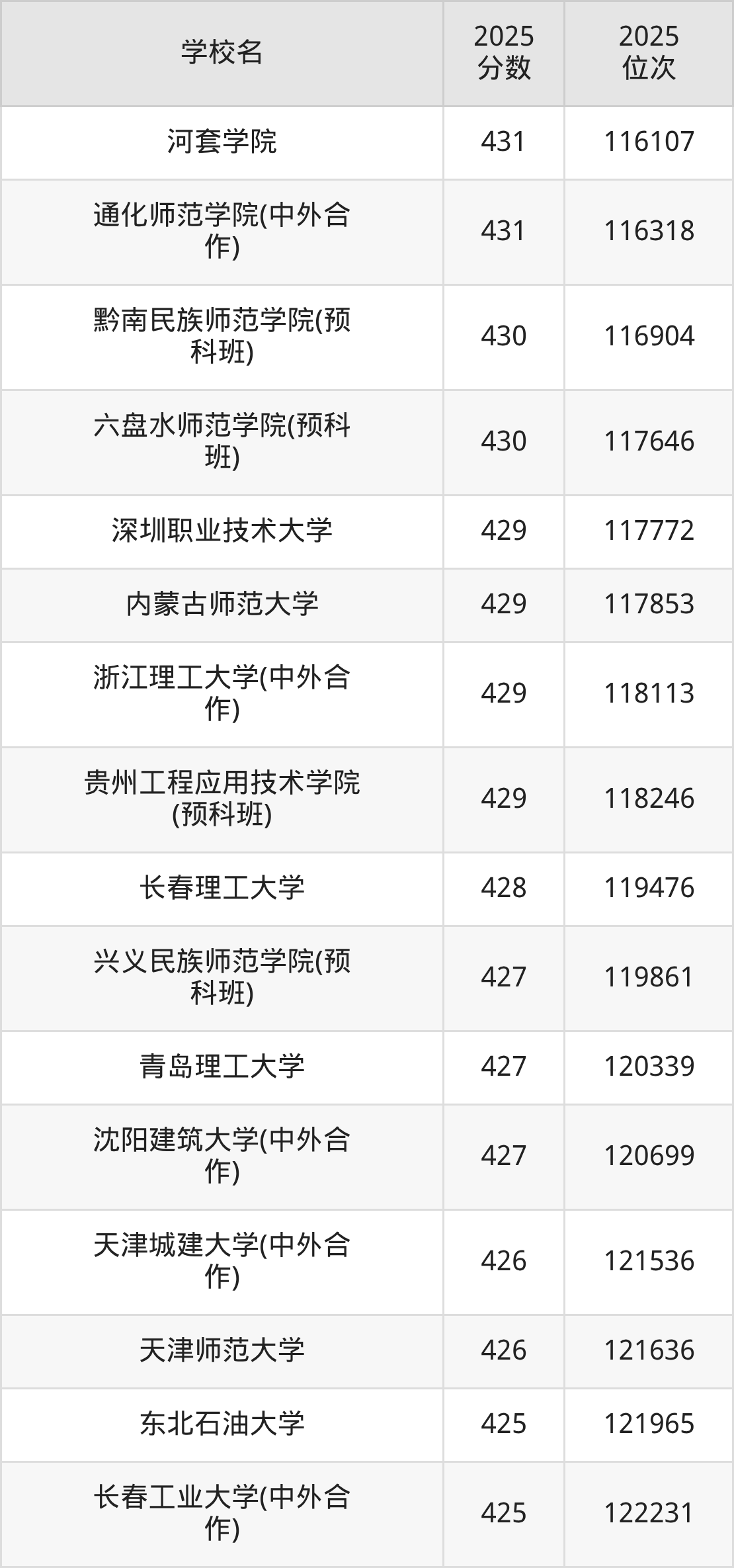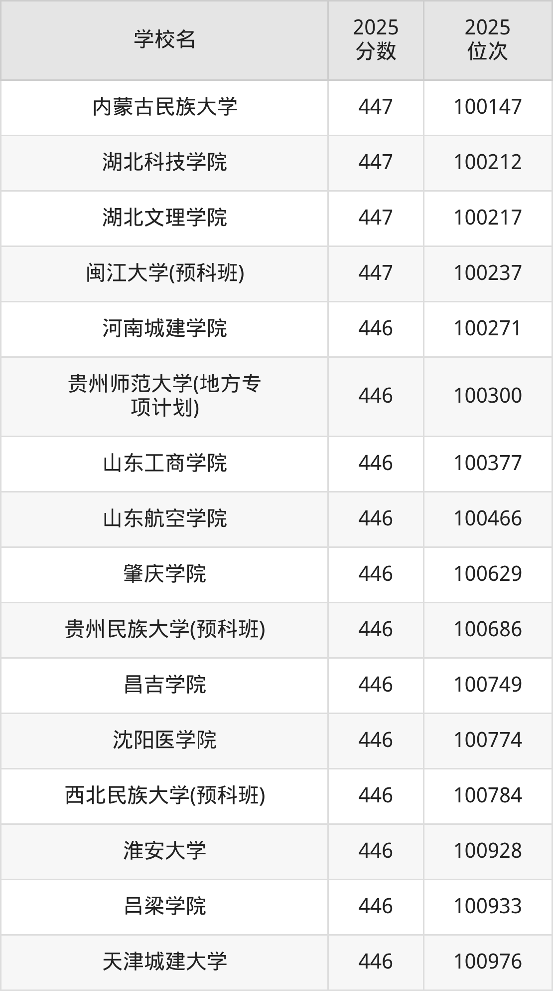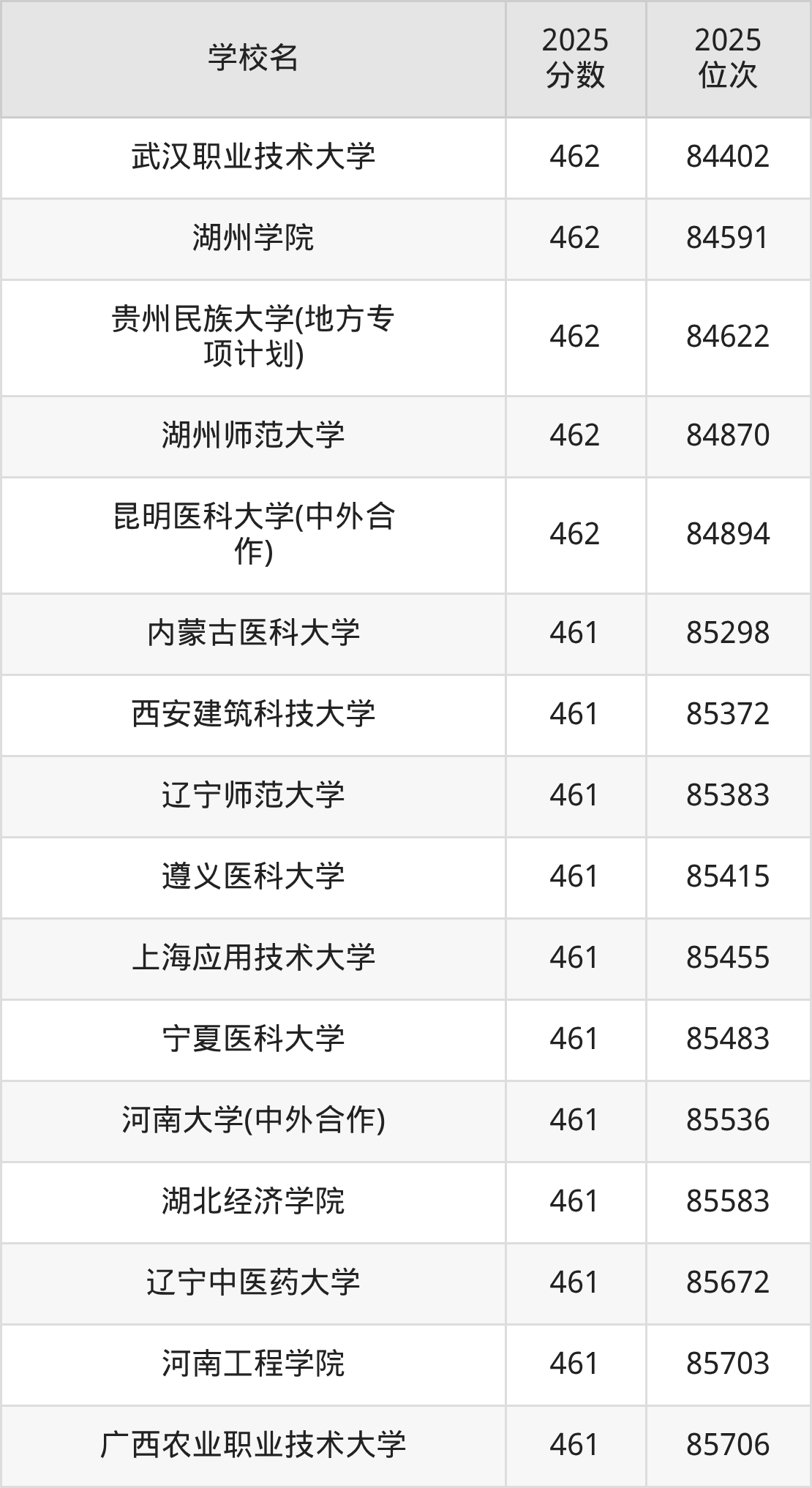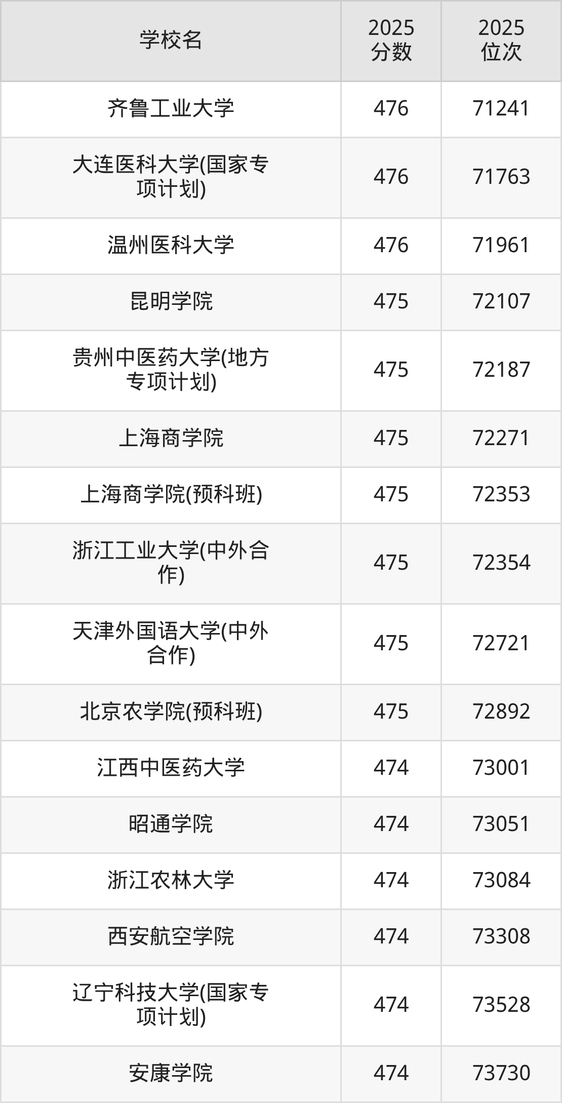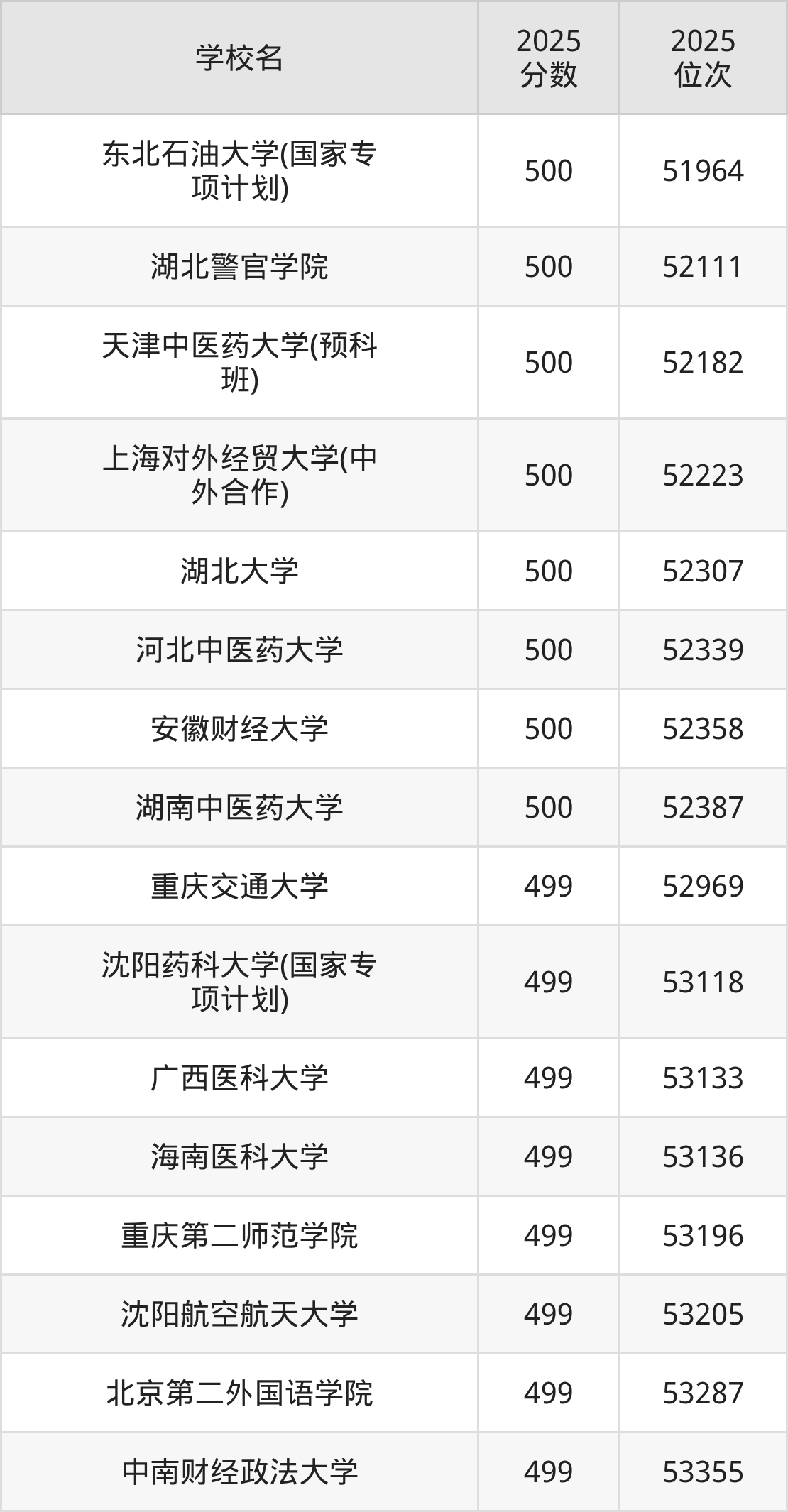 鉴于录取分数线存在一定波动,本文特此整理2025年高考400到500分数段所对应的位次排名区间,供2026年高考成绩处于该位次范围内的考生参考上文所列院校信息。需说明的是,本文内容仅适用于贵州省高考。