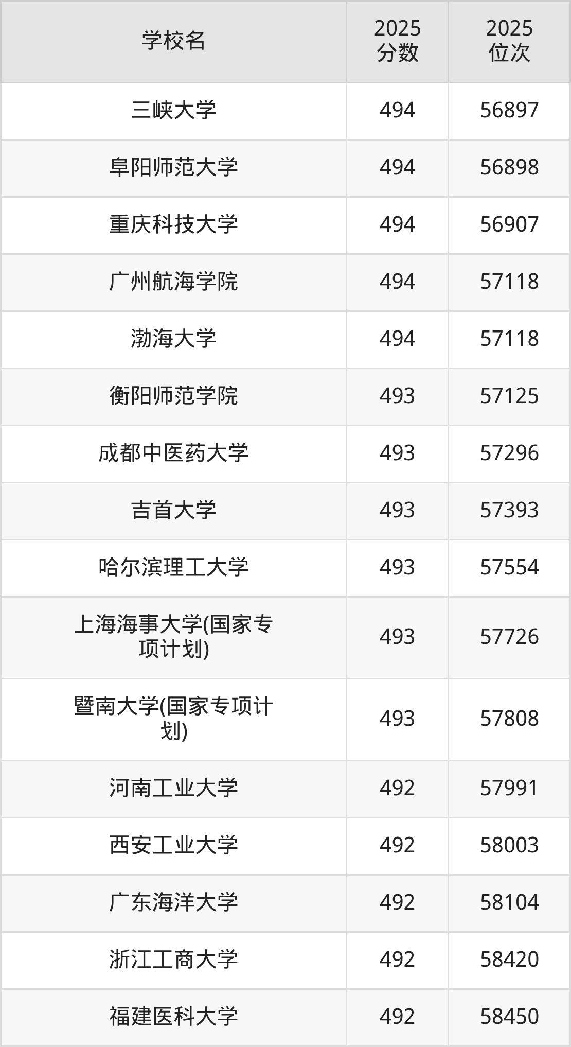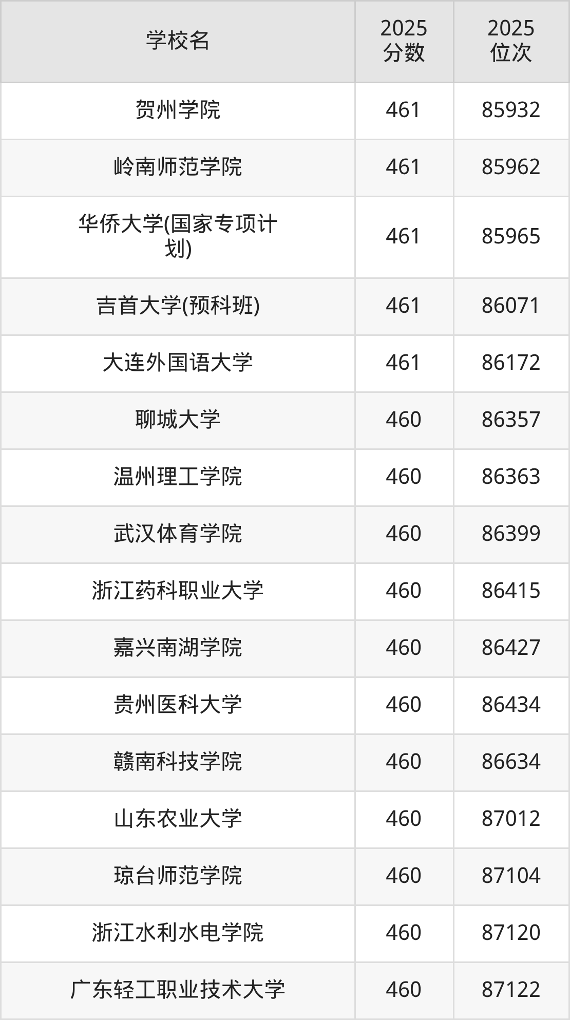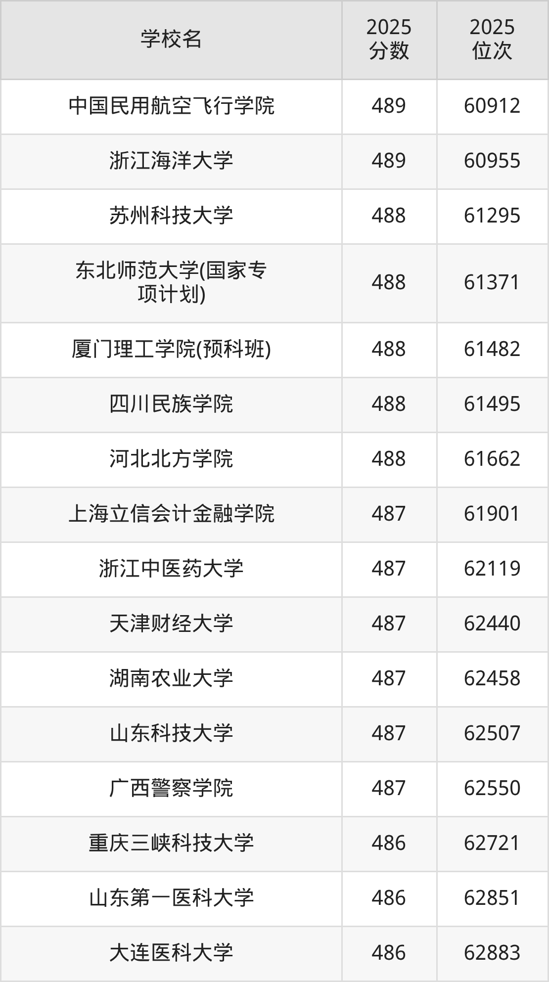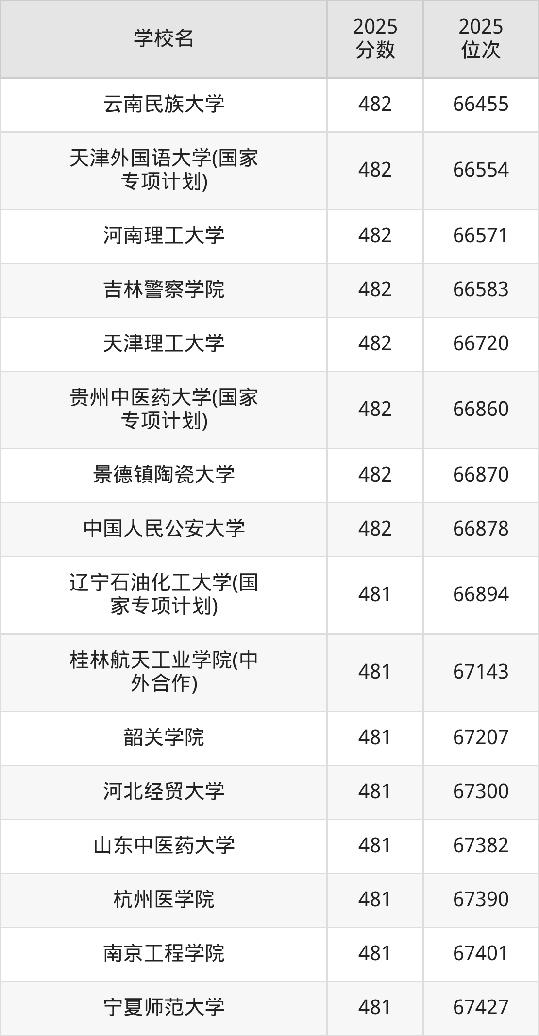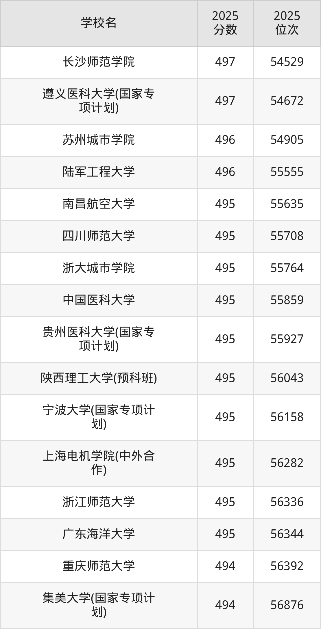 鉴于录取分数线存在一定波动,本文特此整理2025年高考400到500分数段所对应的位次排名区间,供2026年高考成绩处于该位次范围内的考生参考上文所列院校信息。需说明的是,本文内容仅适用于贵州省高考。