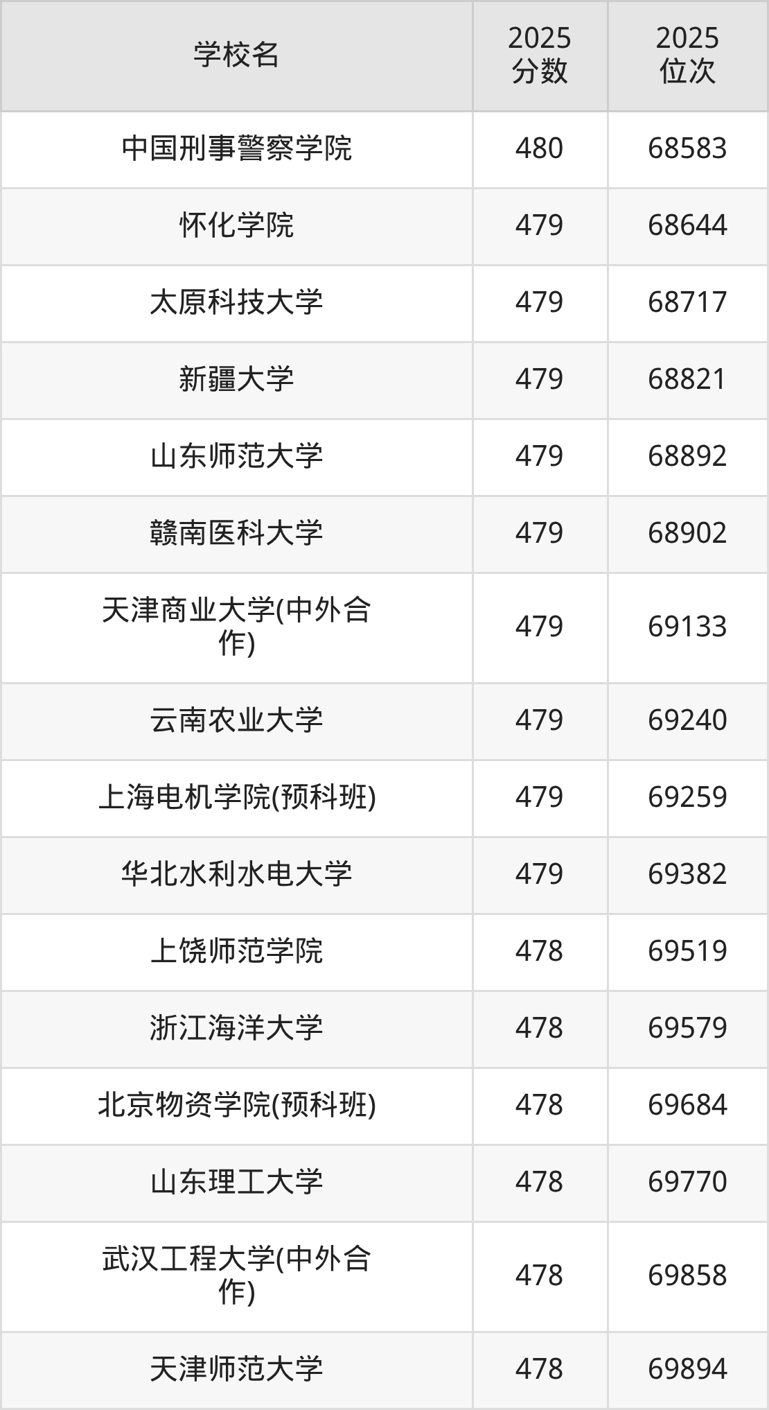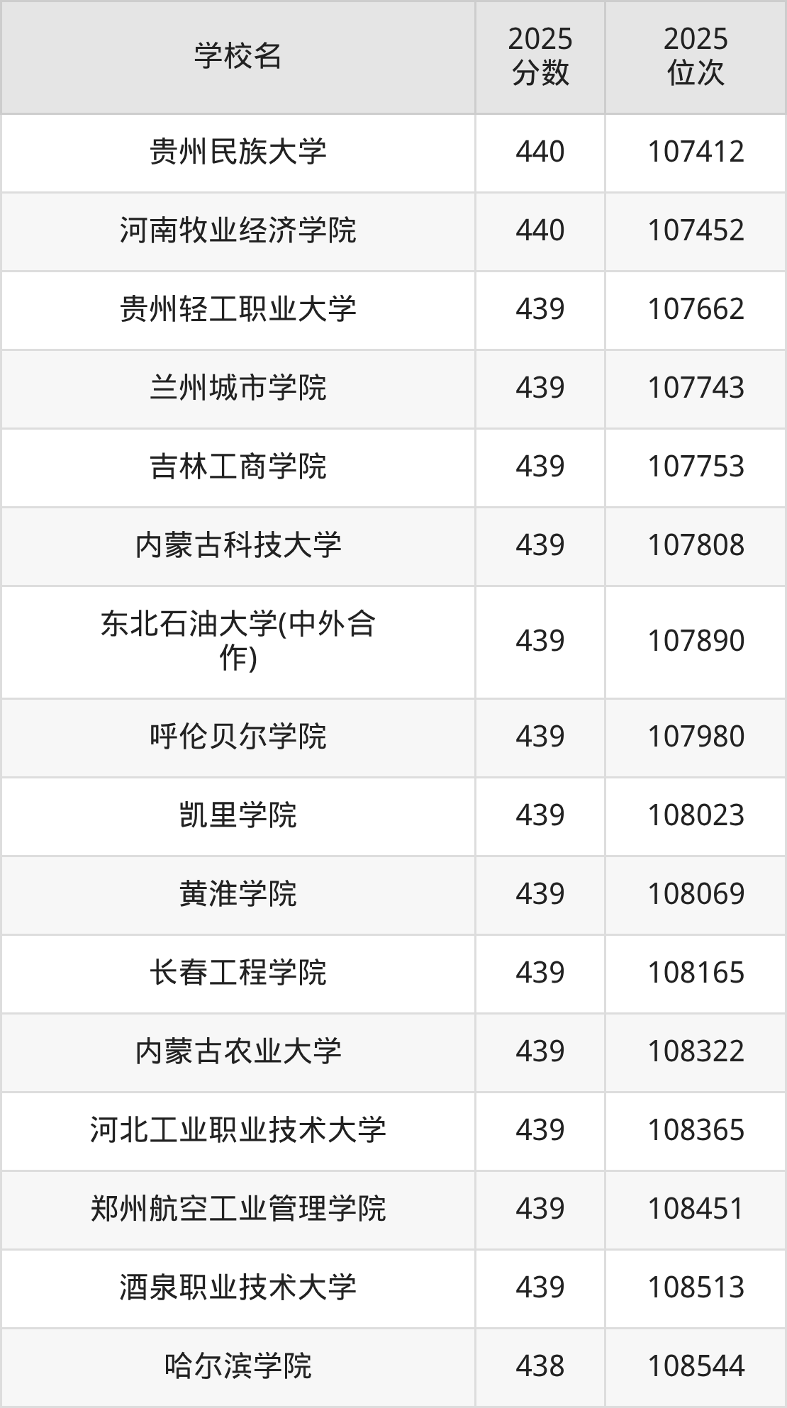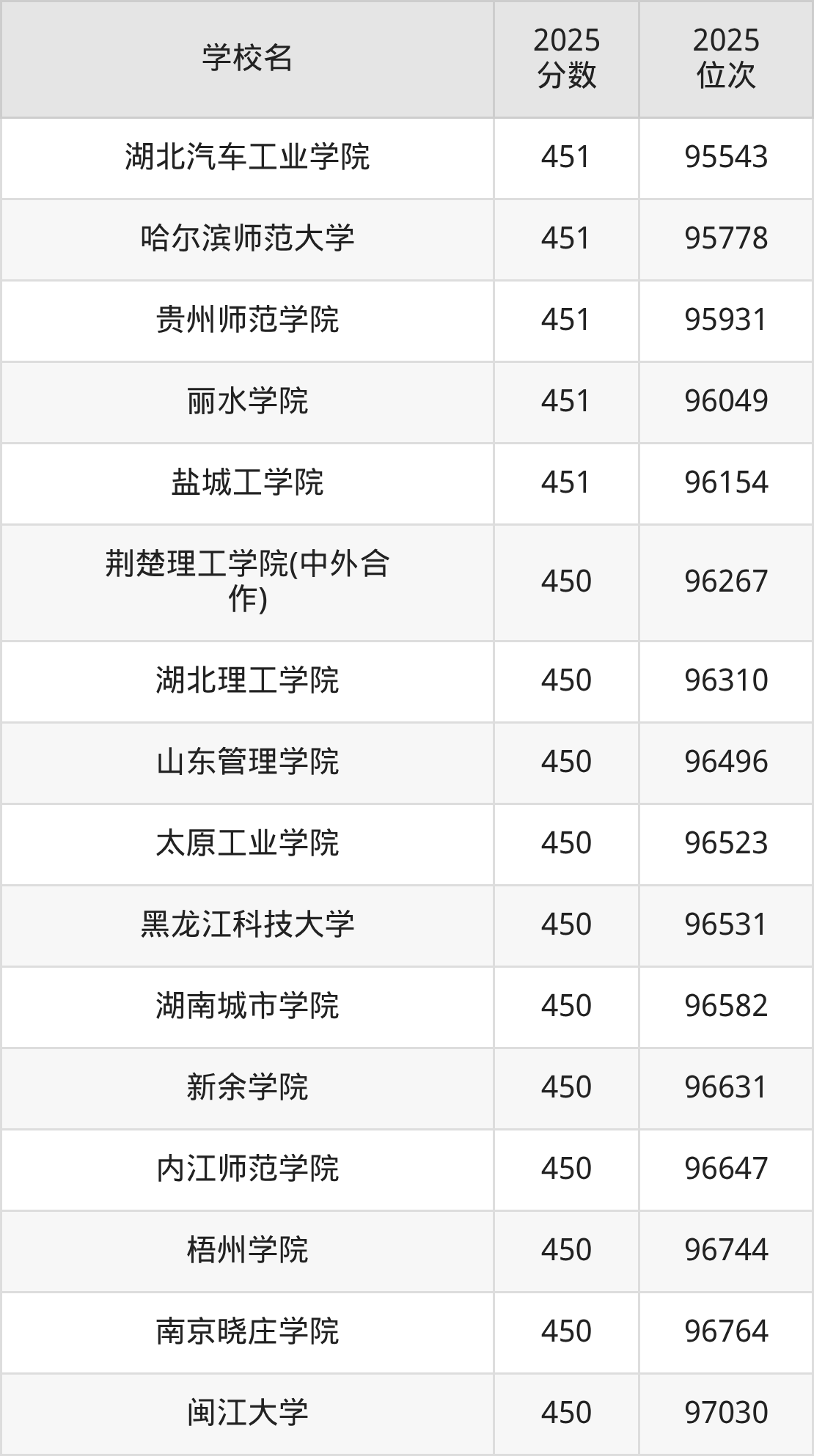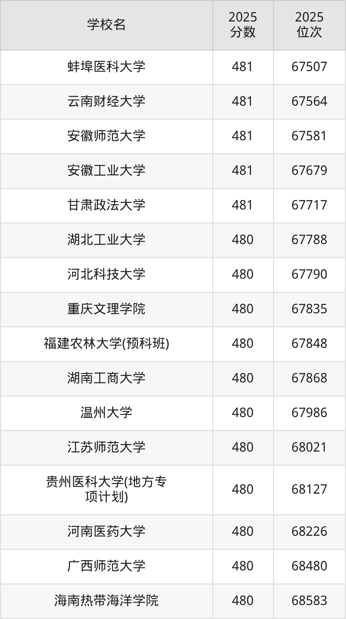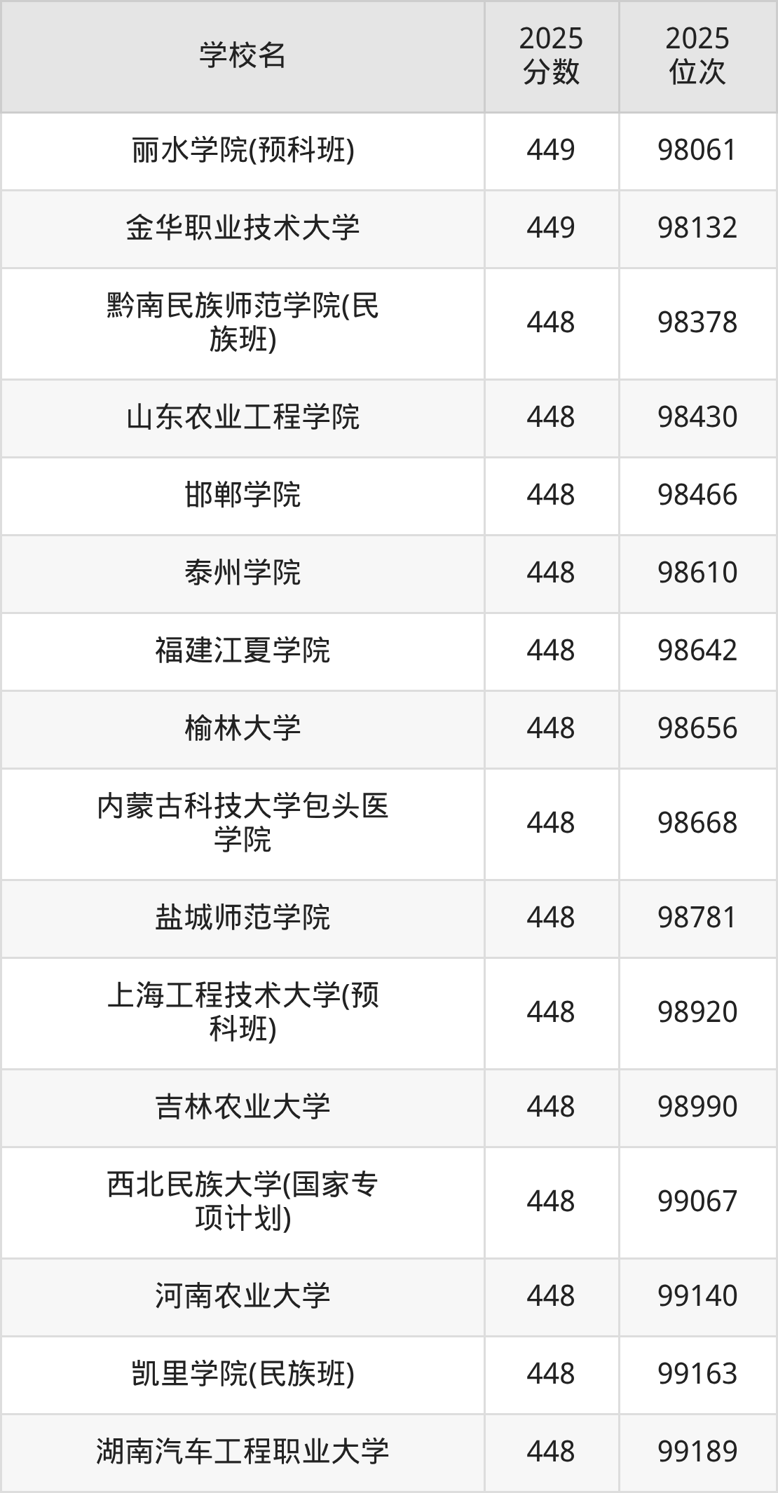 鉴于录取分数线存在一定波动,本文特此整理2025年高考400到500分数段所对应的位次排名区间,供2026年高考成绩处于该位次范围内的考生参考上文所列院校信息。需说明的是,本文内容仅适用于贵州省高考。