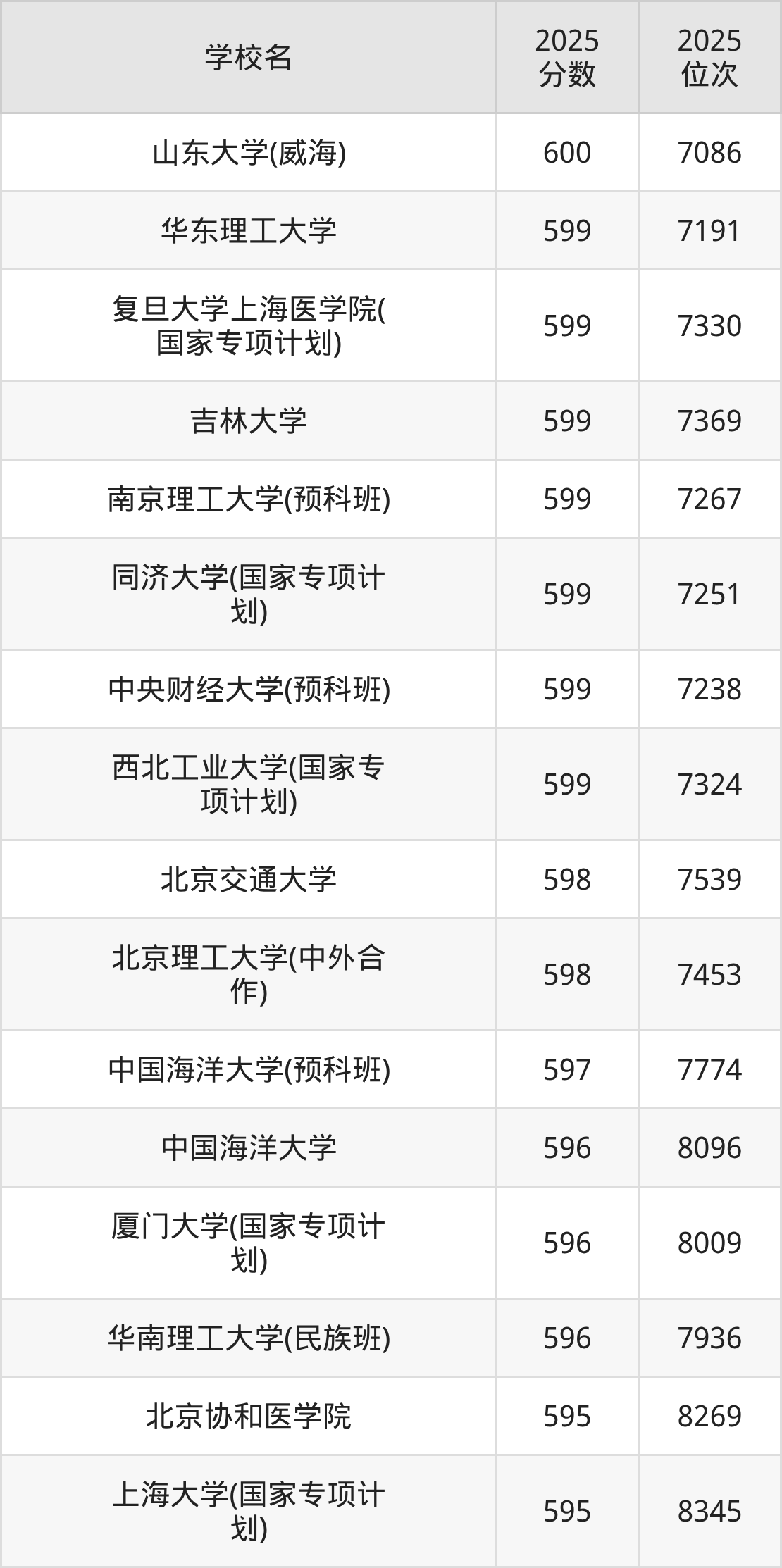 | 学校名 | 2025 分数 | 2025 位次 |