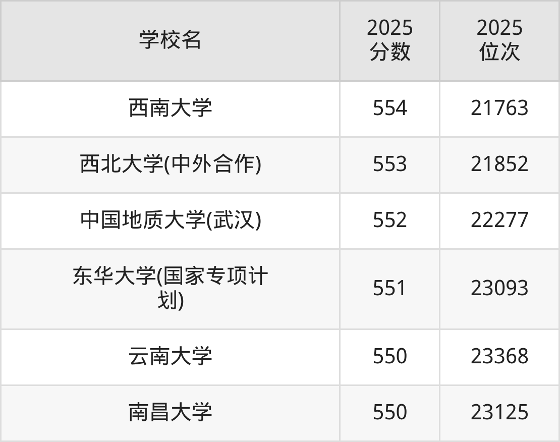| 学校名 | 2025 分数 | 2025 位次 |