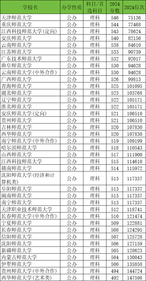 下面是录取分数线最低的理科二本师范大学名单一览表: