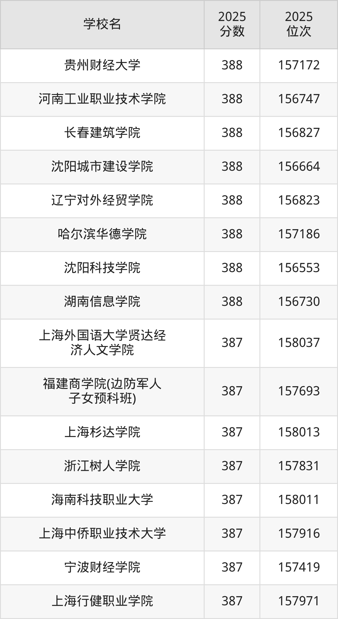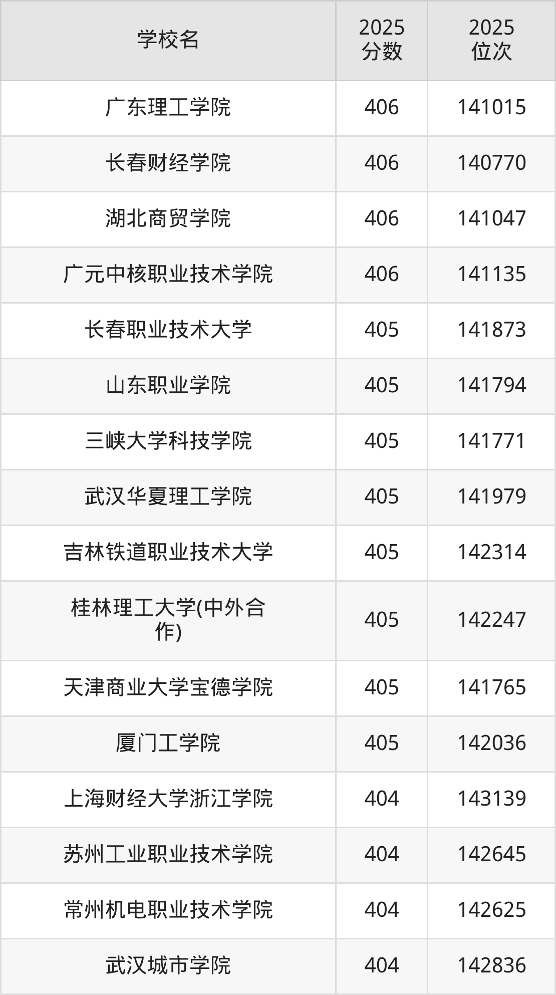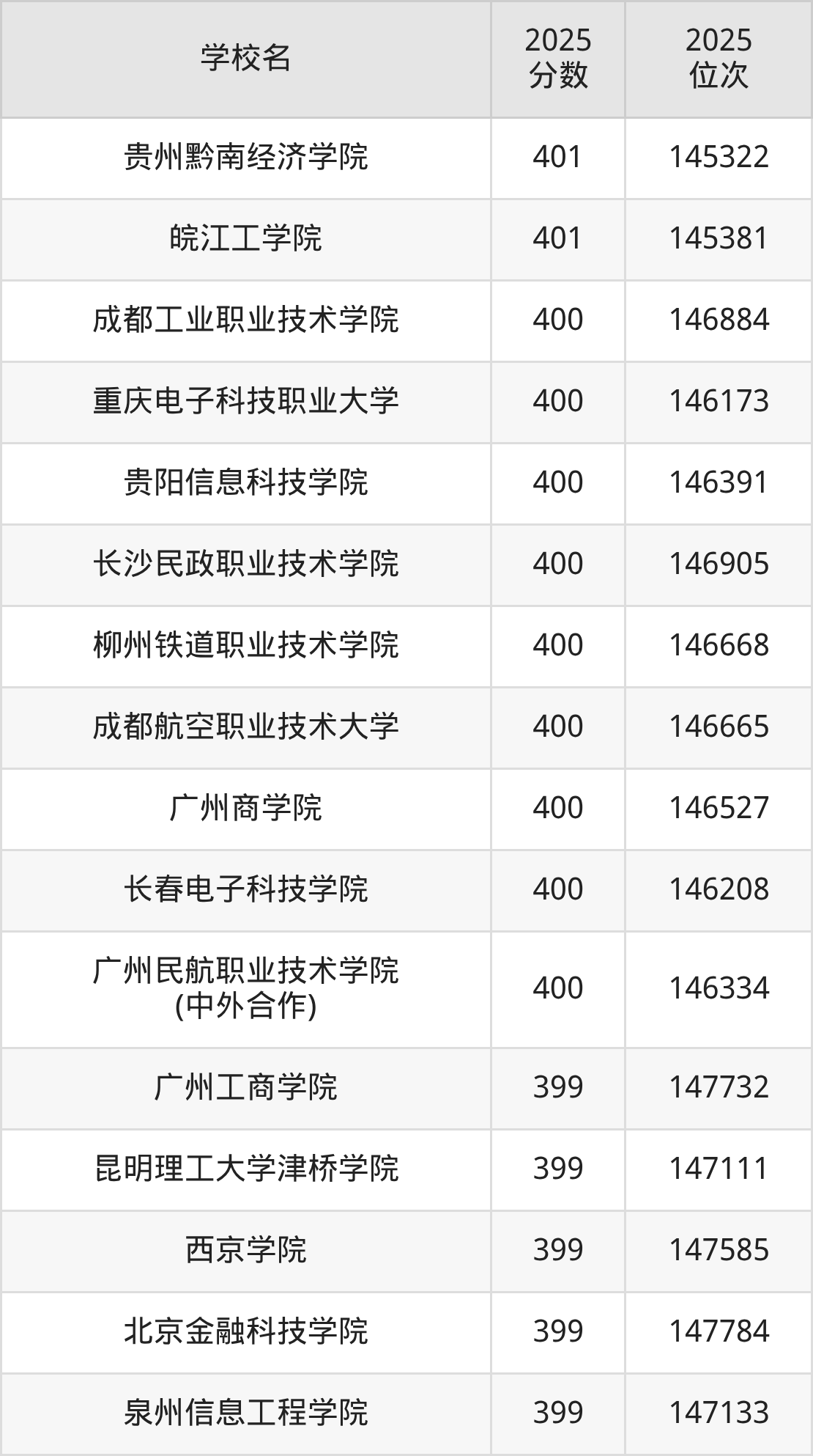 录取分数线的波动较大,下面圆梦小编为大家带来了2025年350到420分对应的位次排名区间,建议2026年位于该位次范围内的考生参考上文所整理的学校(本文仅针对贵州省)。