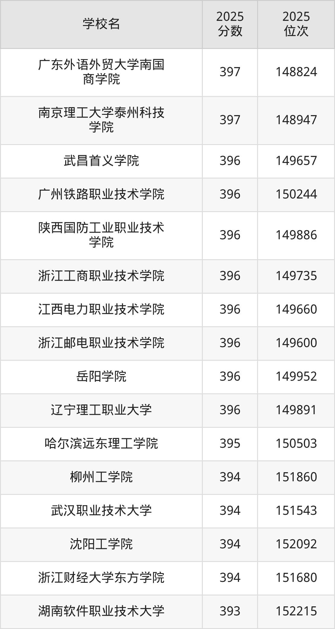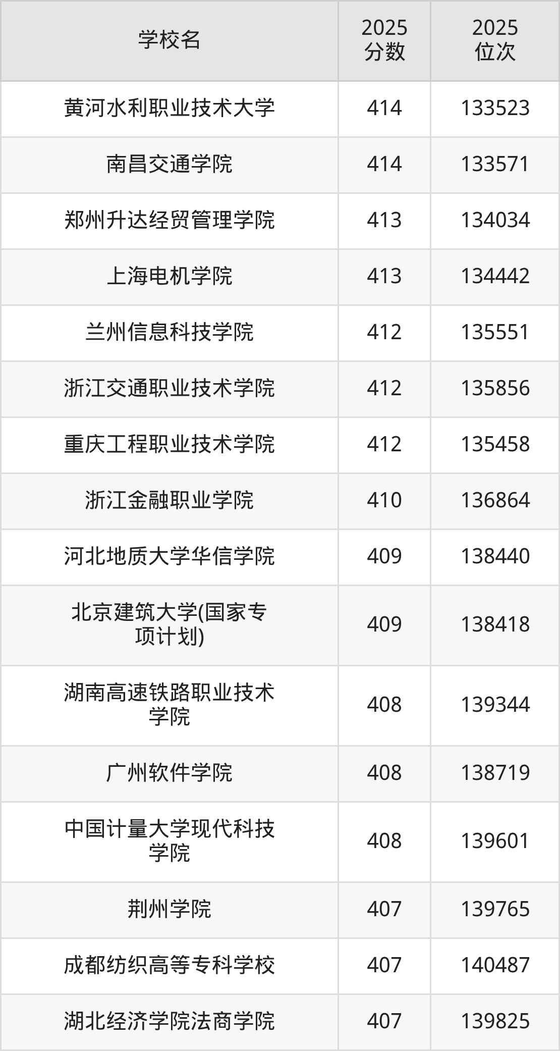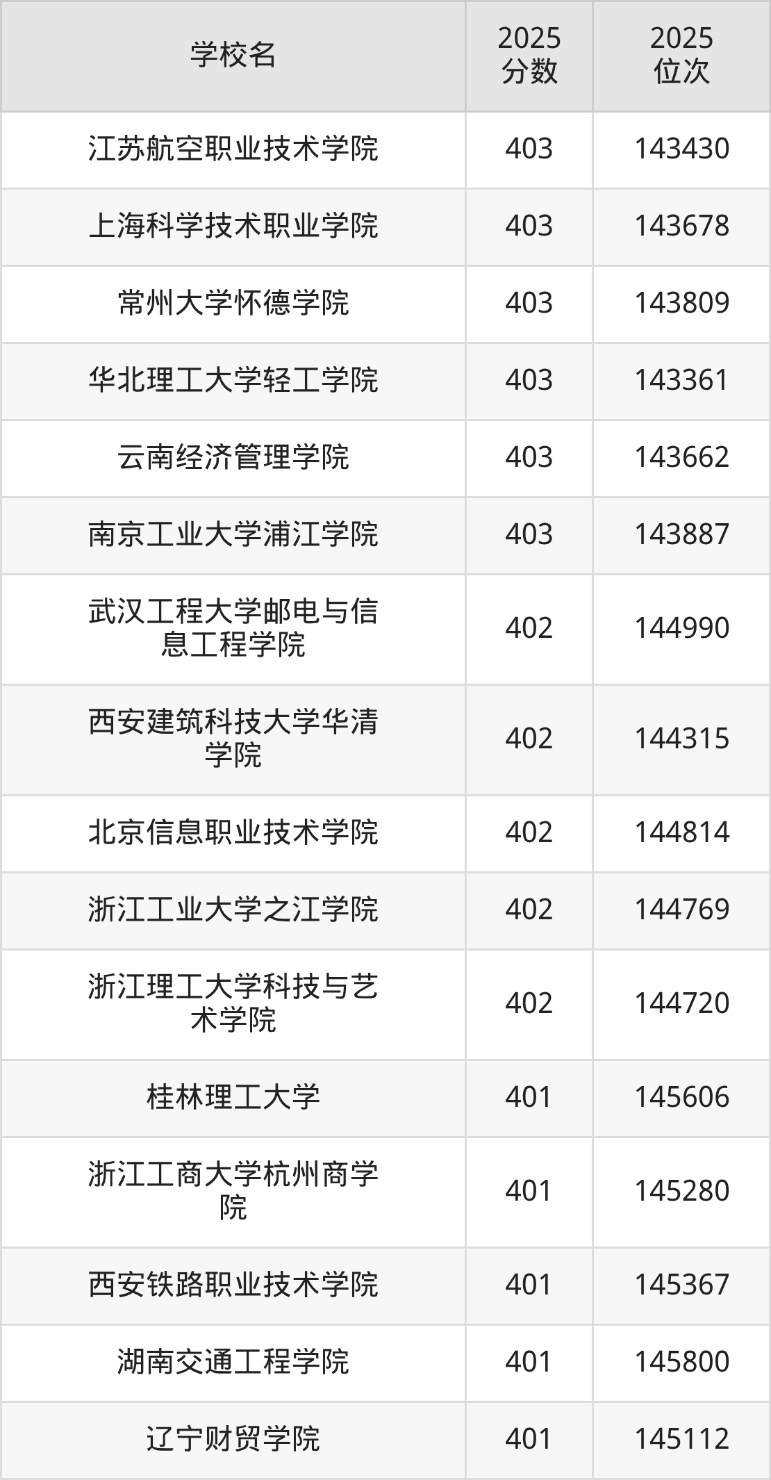 录取分数线的波动较大,下面圆梦小编为大家带来了2025年350到420分对应的位次排名区间,建议2026年位于该位次范围内的考生参考上文所整理的学校(本文仅针对贵州省)。