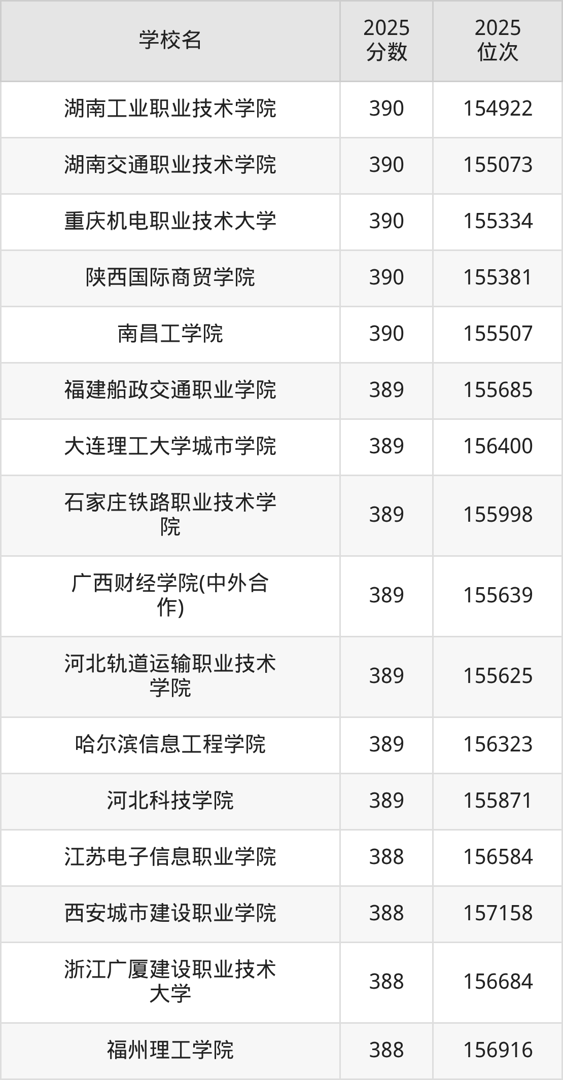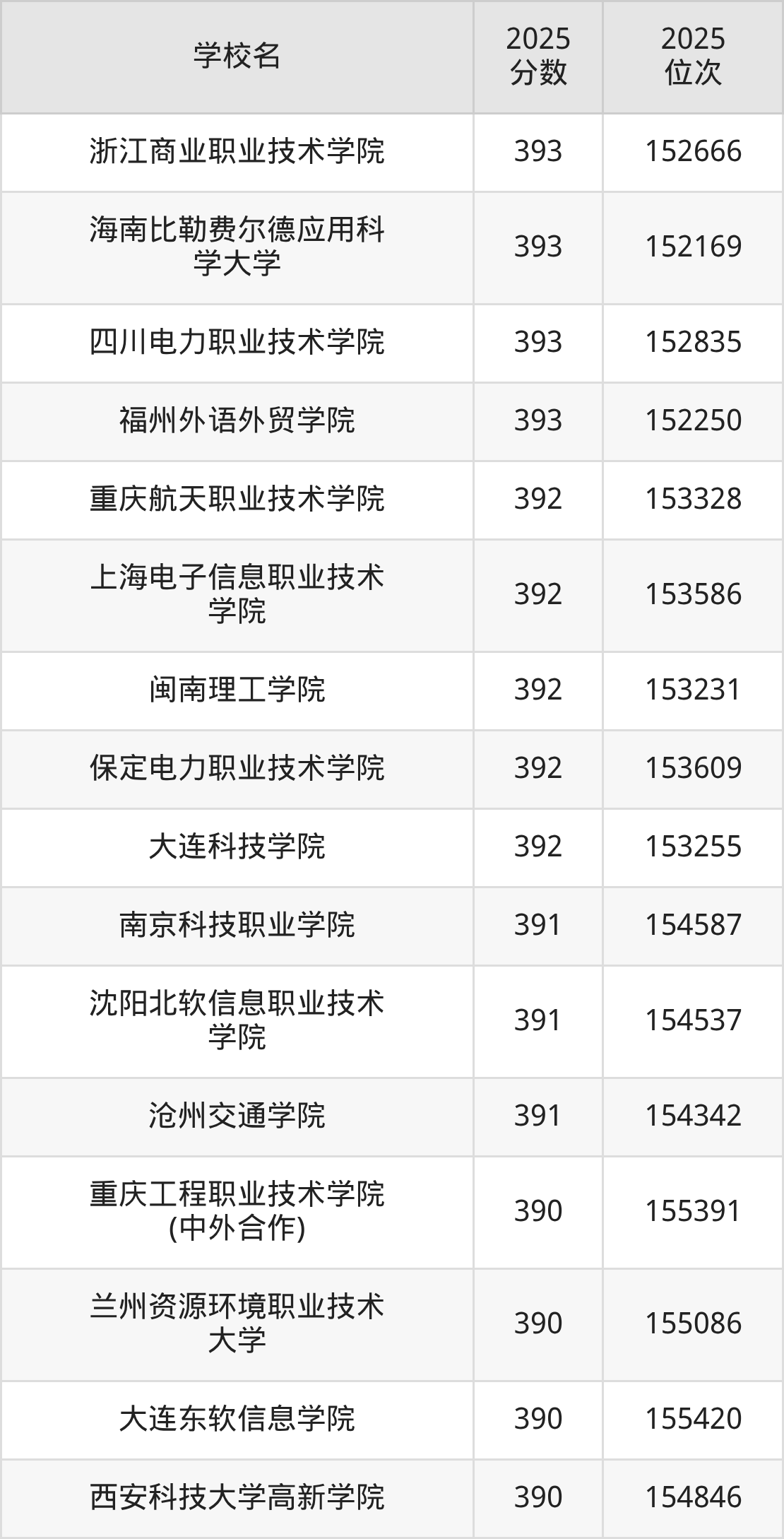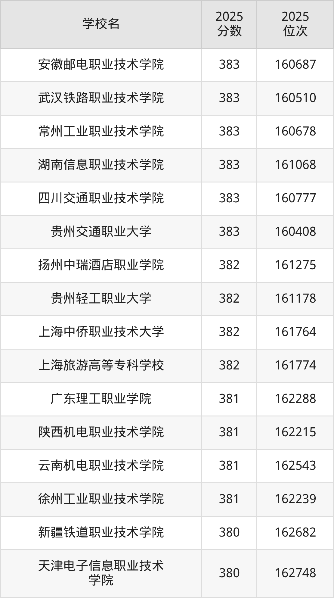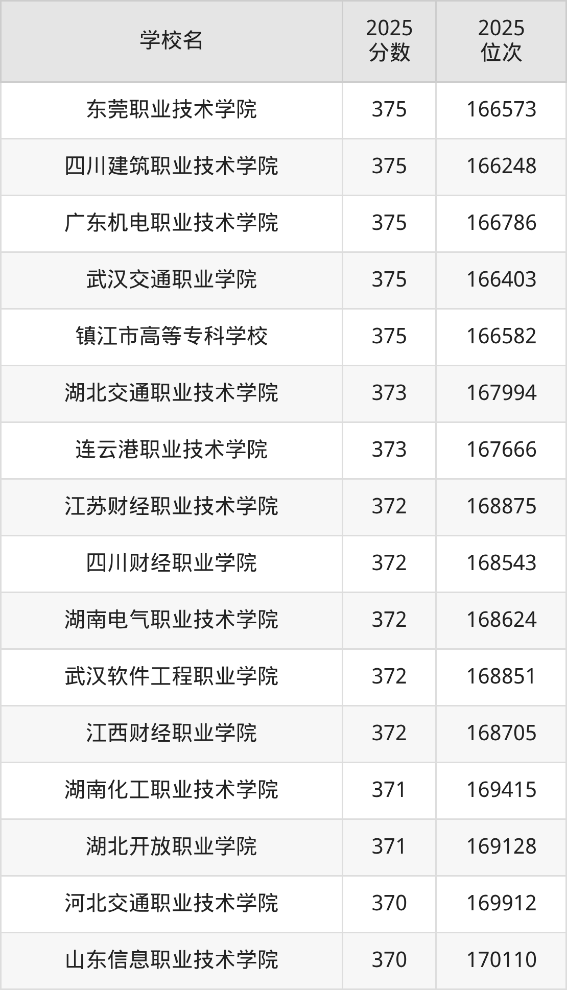 | 广东环境保护工程职业 学院 | 381 | 70205 |