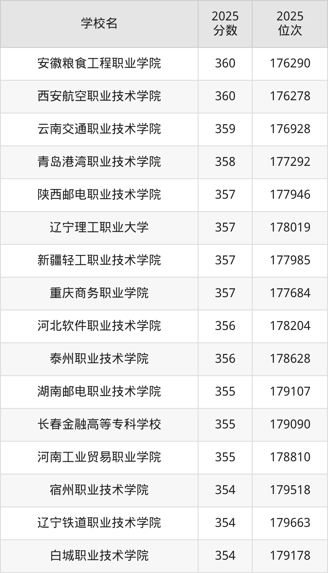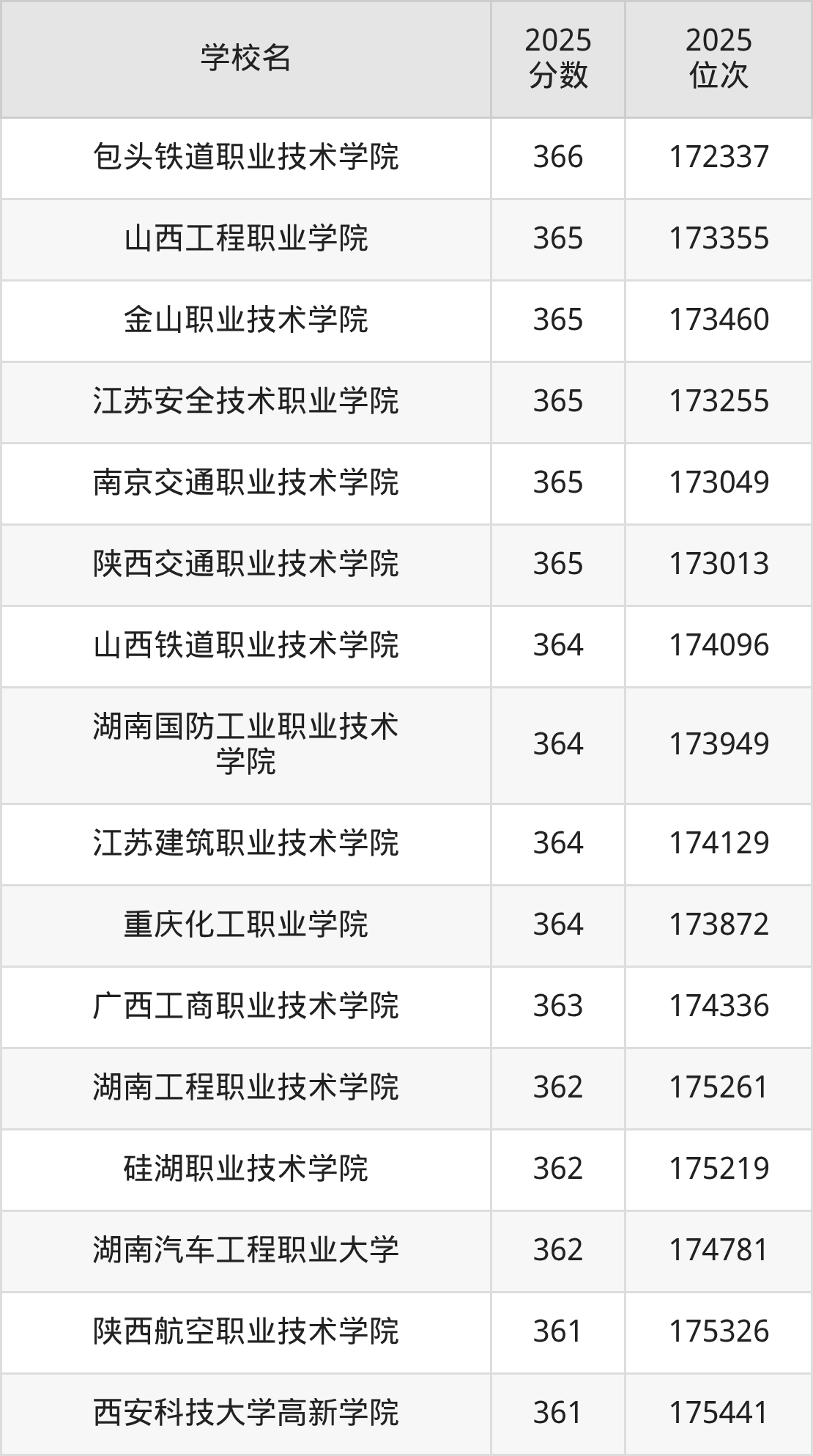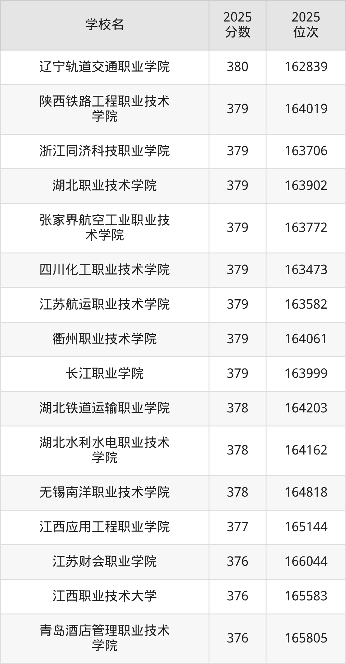 | 陕西航空职业技术学院 | 375 | 71955 |