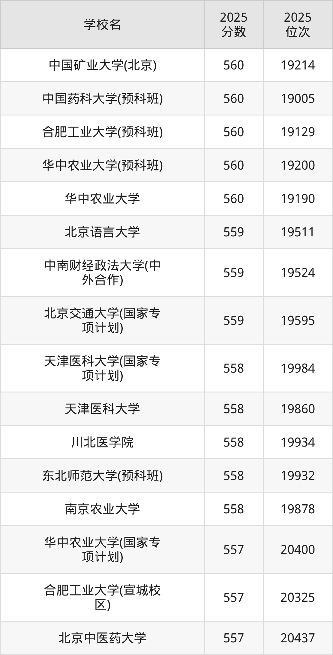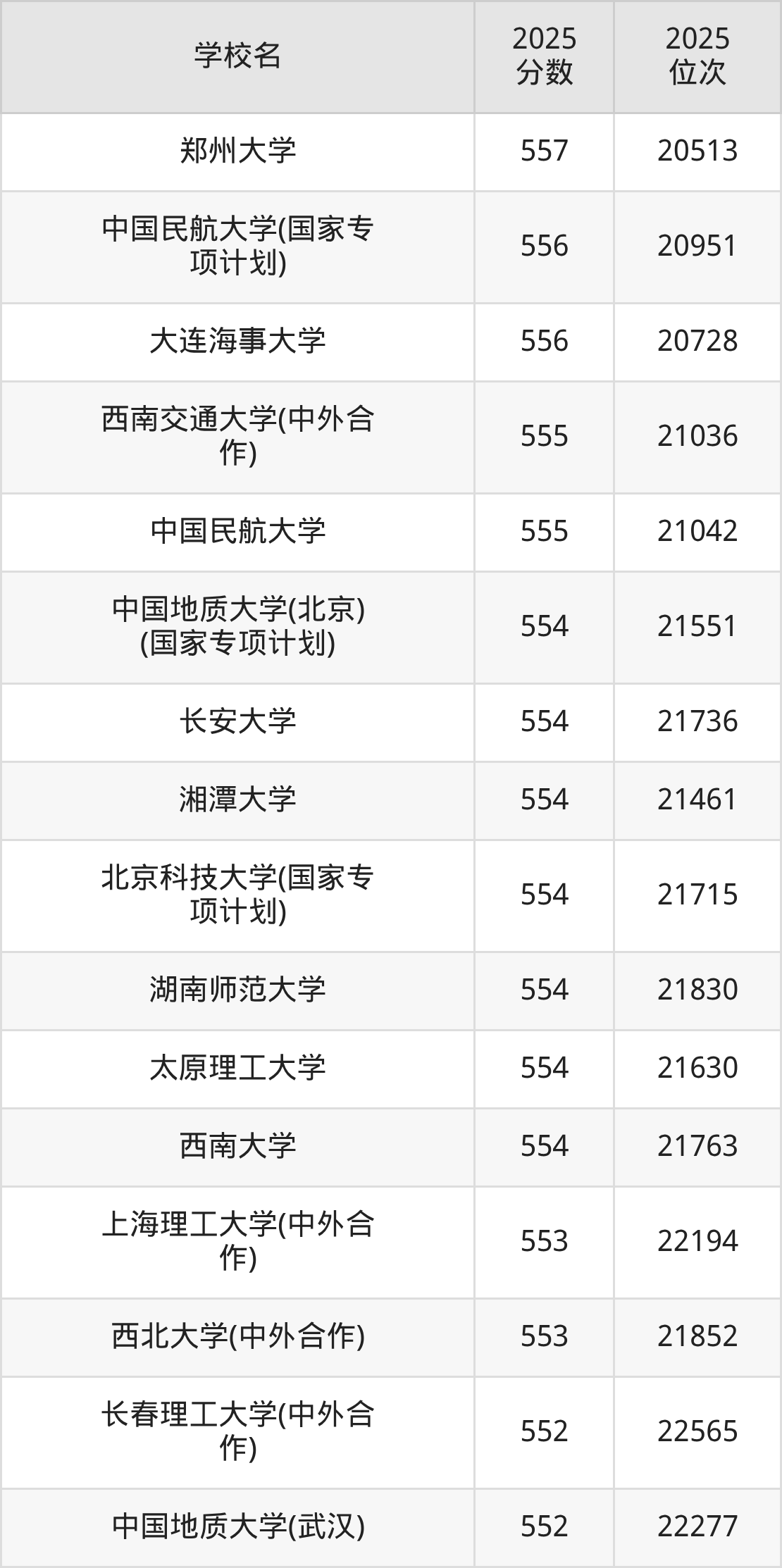 录取分数线的波动较大,下面圆梦小编为大家带来了2025年550到560分对应的位次排名区间,建议2026年位于该位次范围内的考生参考上文所整理的学校(本文仅针对贵州省)。