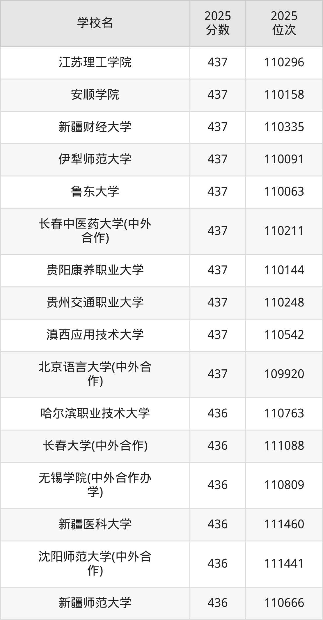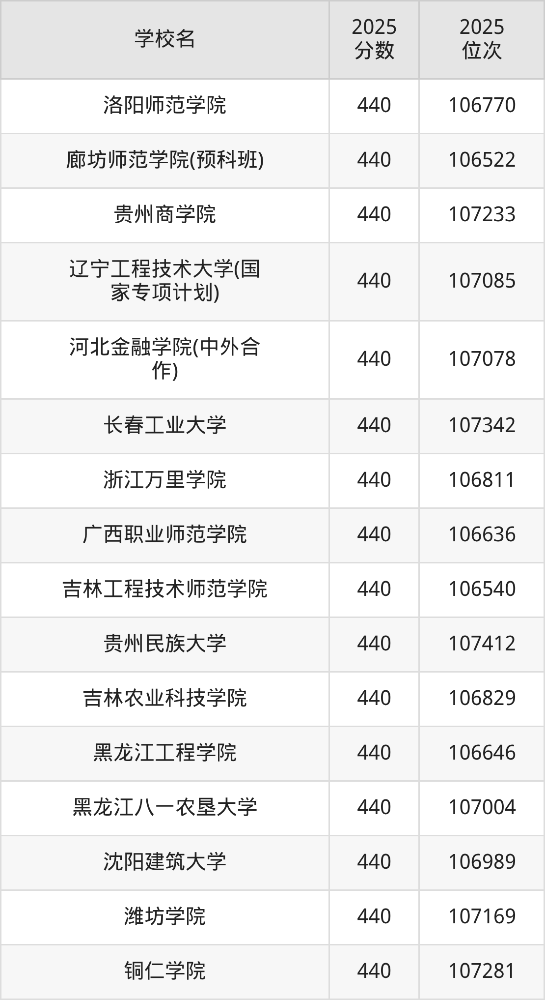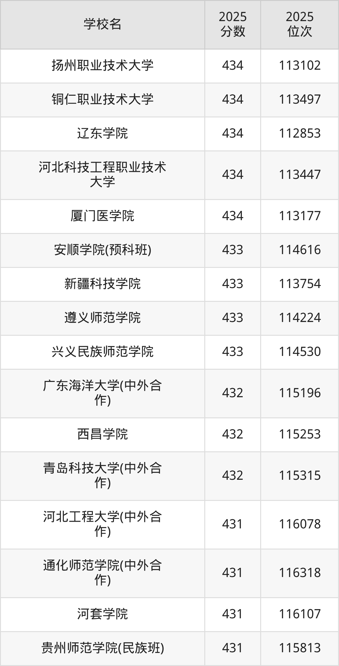 录取分数线的波动较大,下面圆梦小编为大家带来了2025年430到470分对应的位次排名区间,建议2026年位于该位次范围内的考生参考上文所整理的学校(本文仅针对贵州省)。