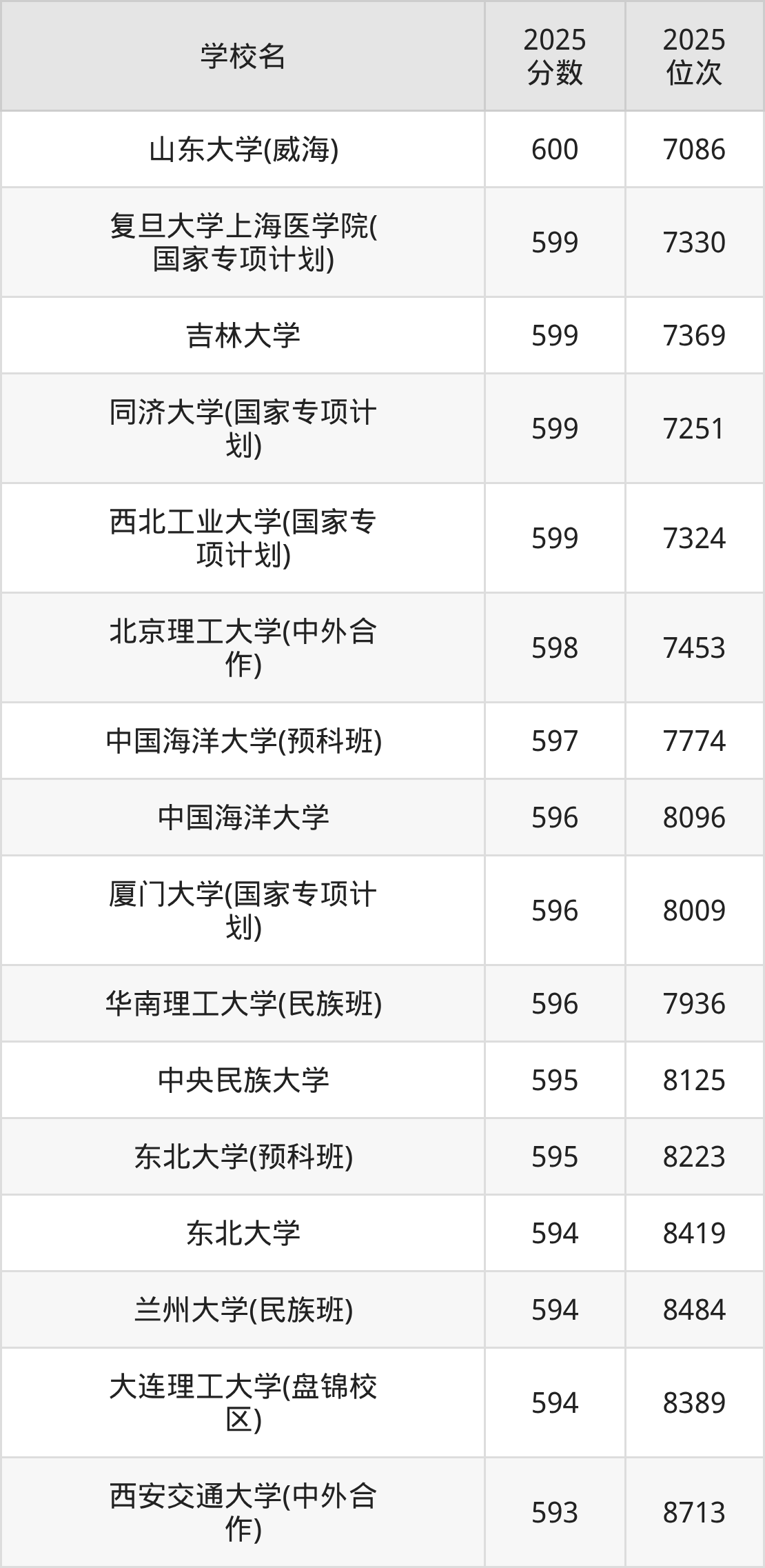 录取分数线的波动较大,下面圆梦小编为大家带来了2025年570到600分对应的位次排名区间,建议2026年位于该位次范围内的考生参考上文所整理的学校(本文仅针对贵州省)。