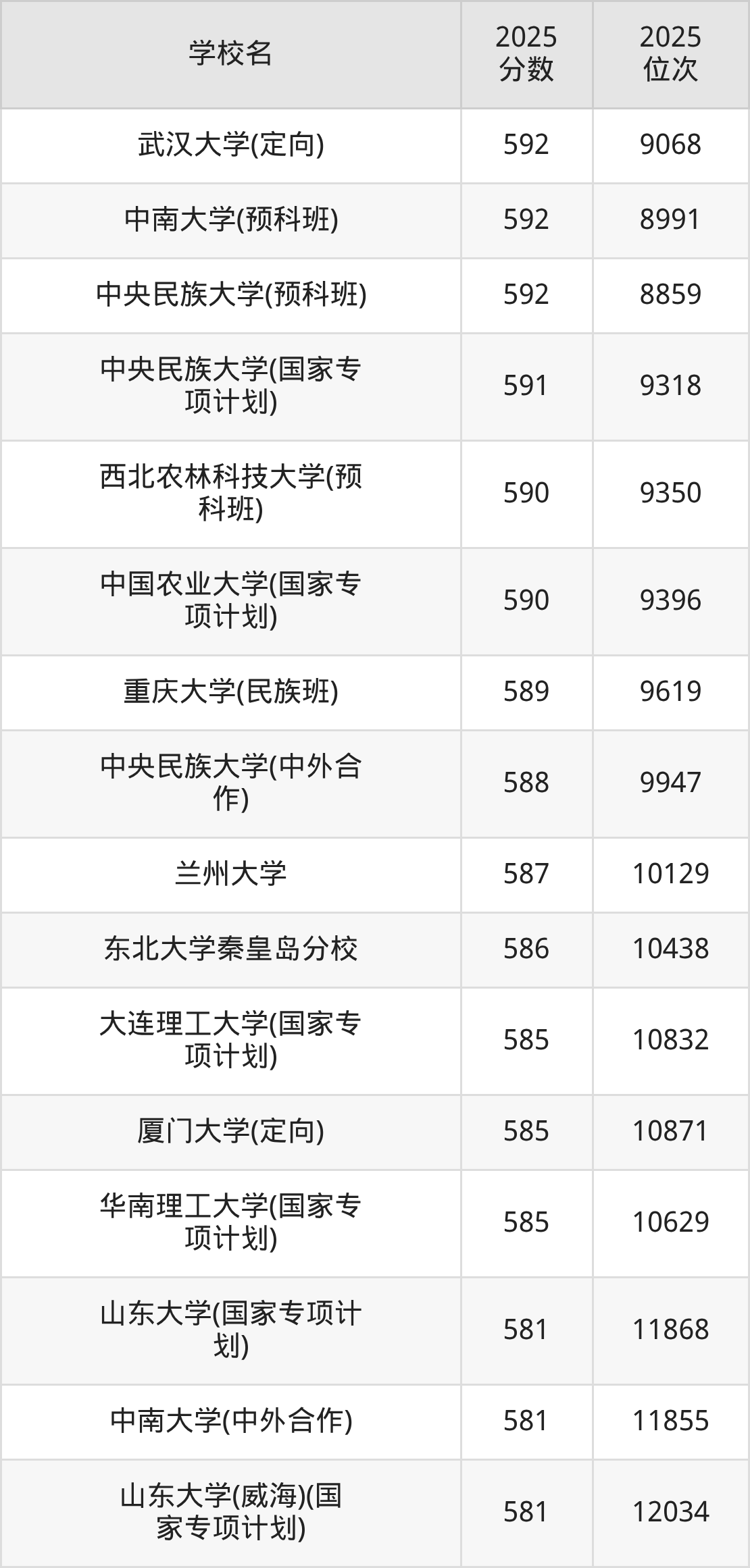 温馨提示:全国各省录取分数线不相同,本文以贵州省为例,为大家带来2025年录取分数线位于570到600分的985大学名单汇总,并附上该分数段对应的位次排名区间,供查阅。