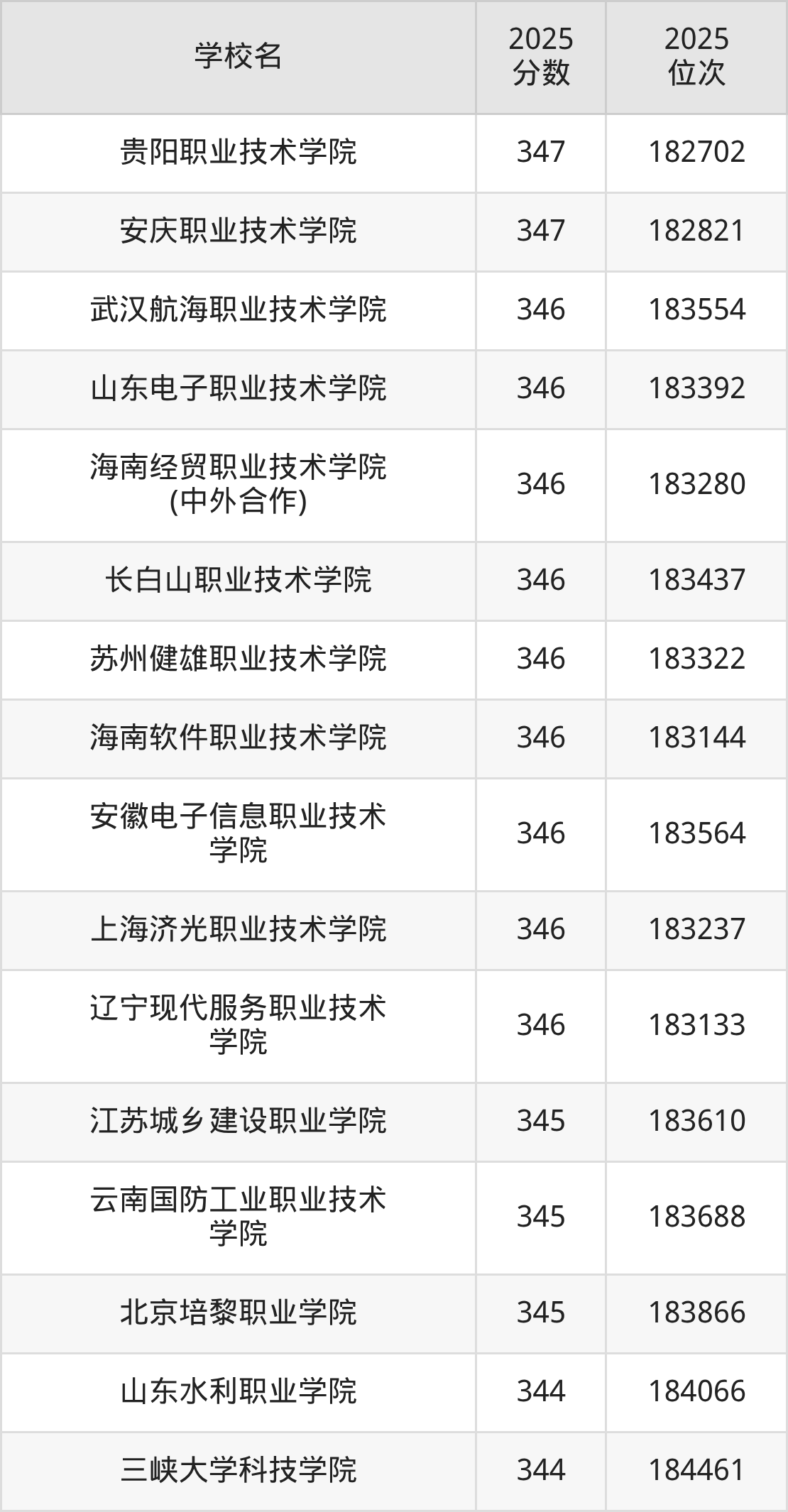 | 吉林电子信息职业技术 学院 | 347 | 79201 |