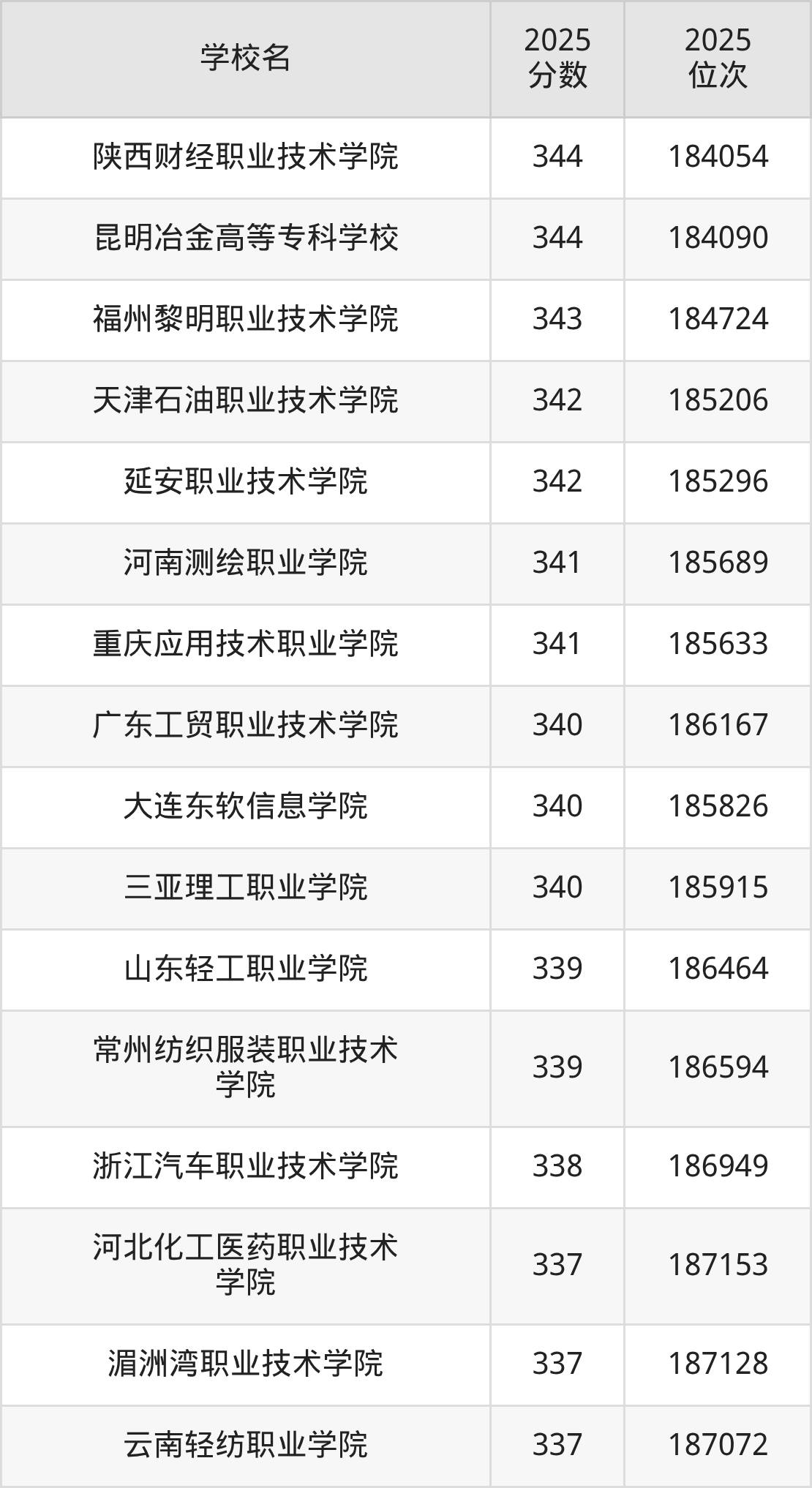 | 陕西邮电职业技术学院 | 335 | 81567 |