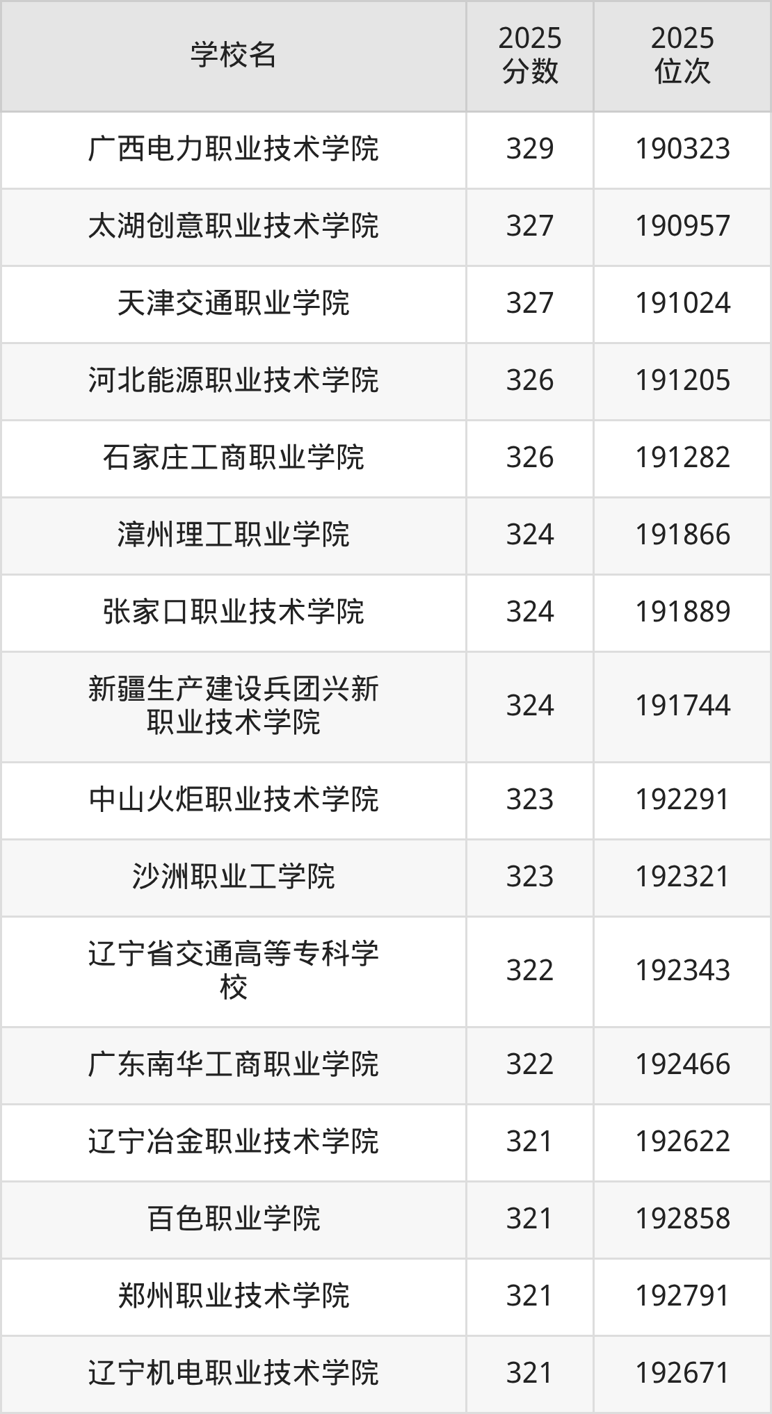 | 广西交通职业技术学院 | 376 | 71855 |