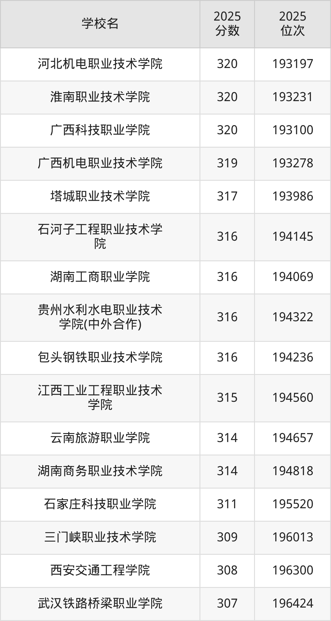 | 湖南水利水电职业技术 学院 | 301 | 85573 |