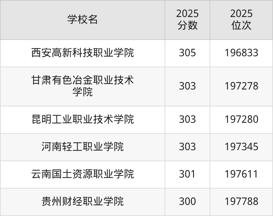 | 学校名 | 2025 分数 | 2025 位次 |