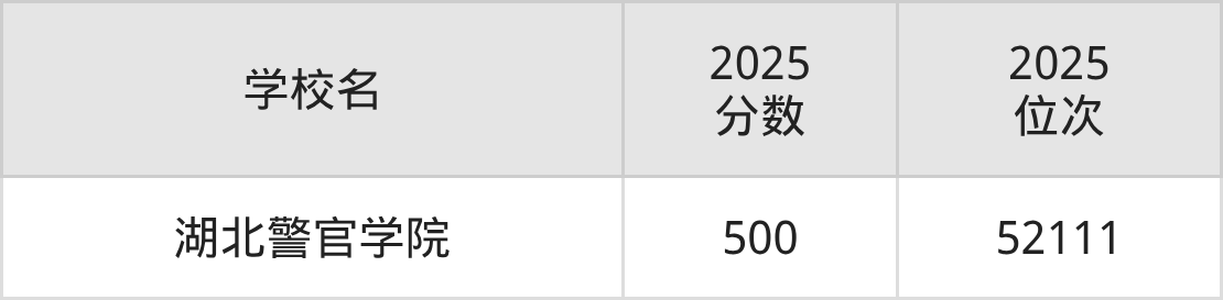 物理类490到500分的大学中分数对应位次最低的是湖北警官学院,2025年最低分500分,对应最低位次是52111名。