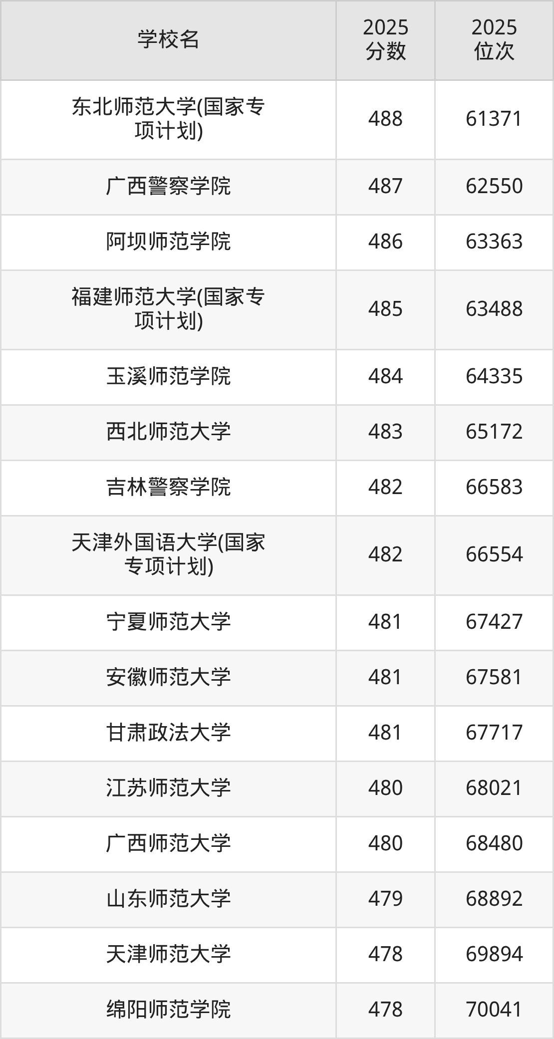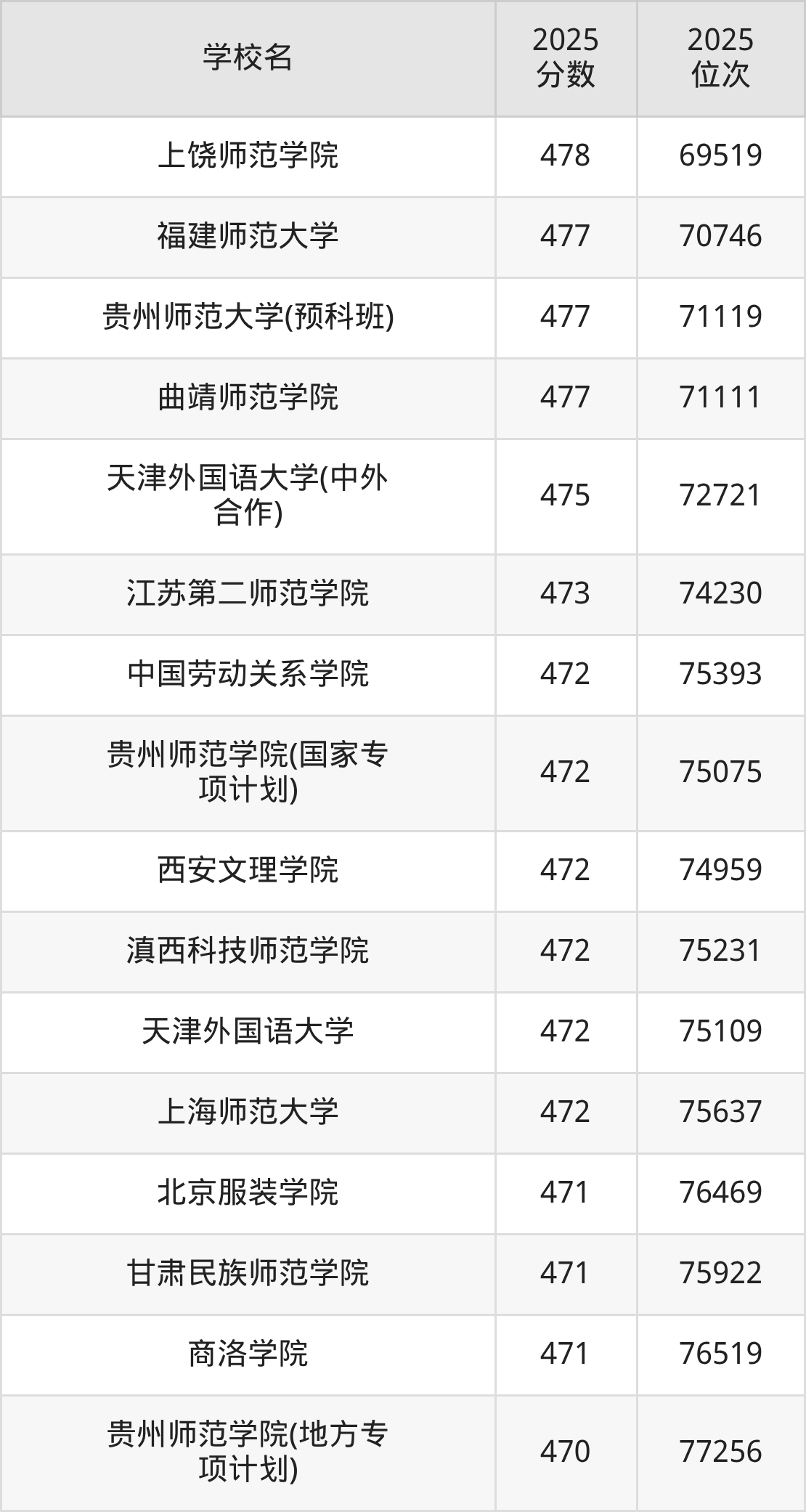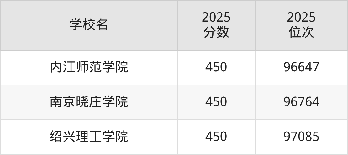 | 学校名 | 2025 分数 | 2025 位次 |