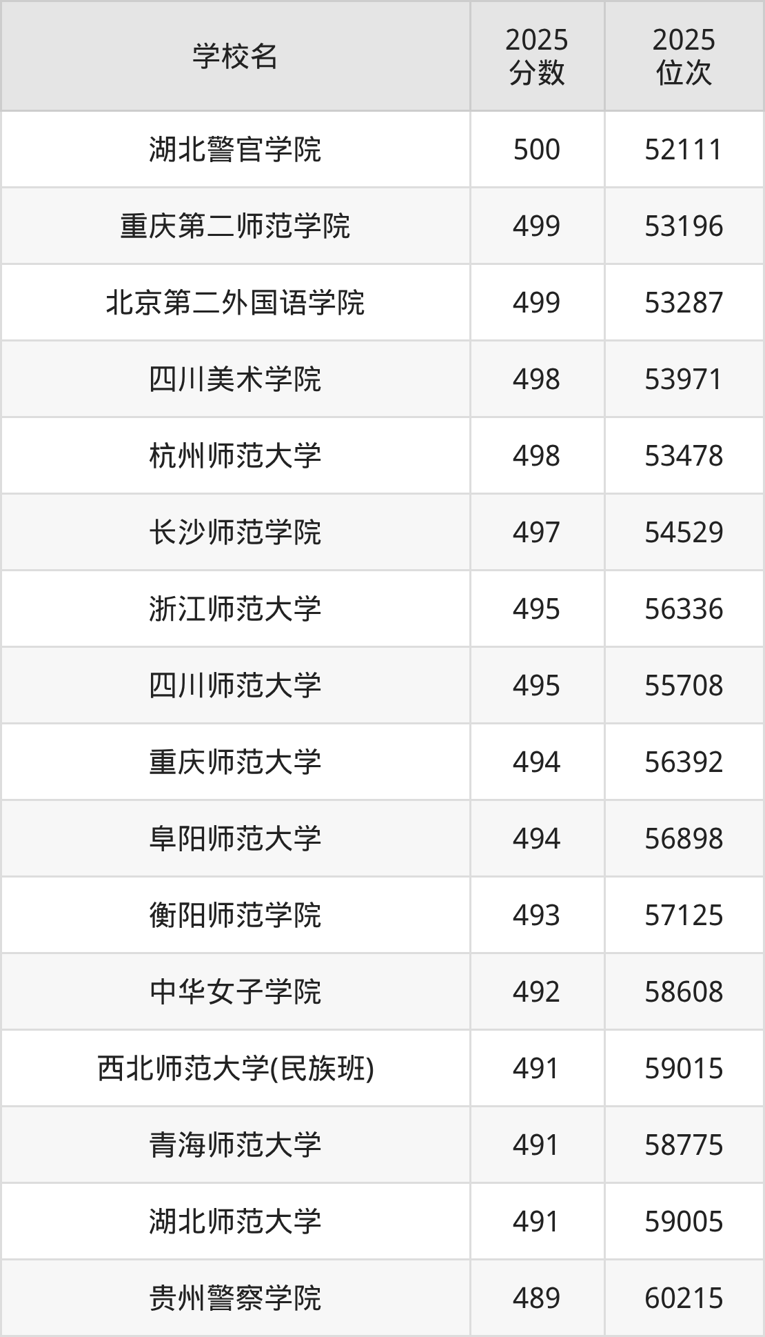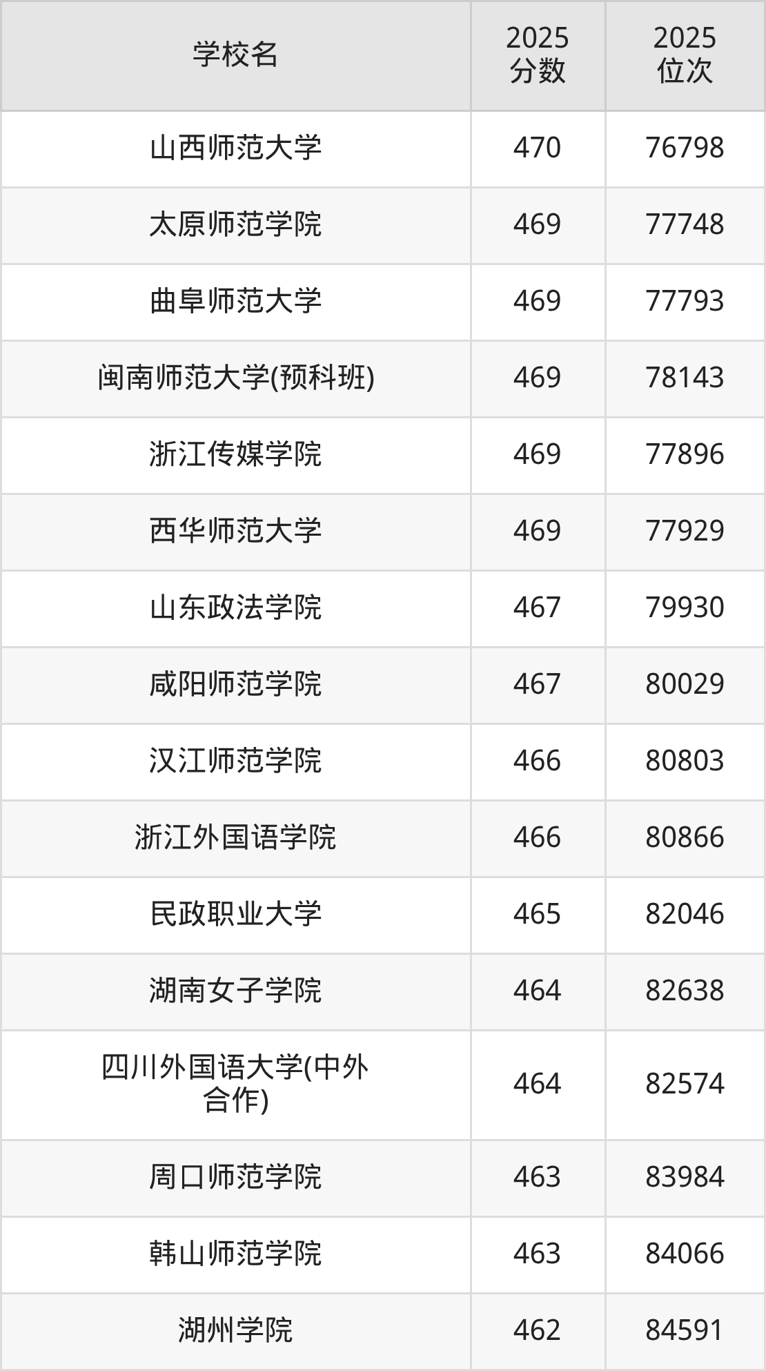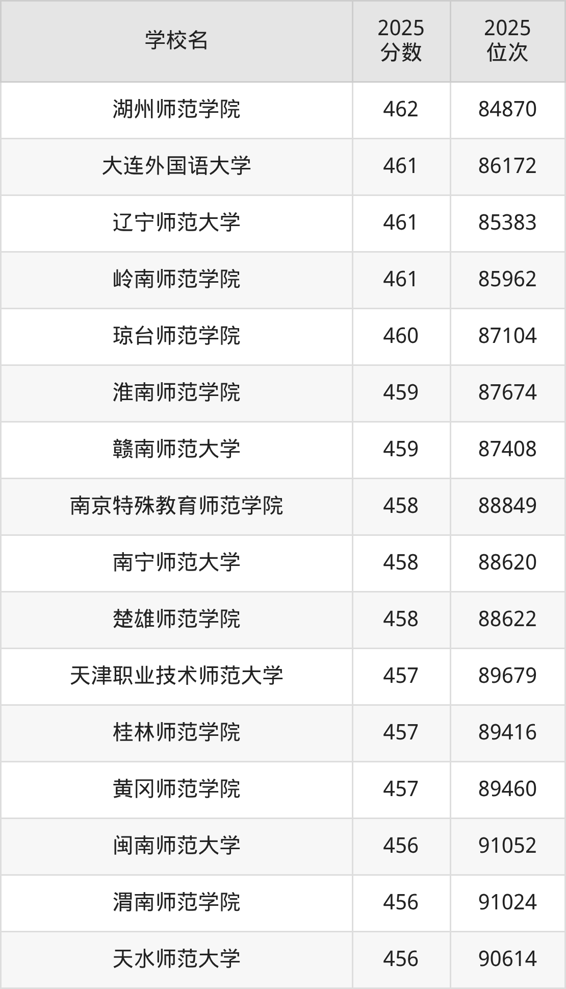 | 学校名 | 2025 分数 | 2025 位次 |