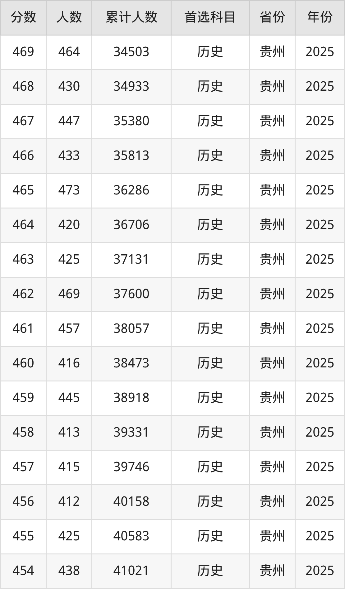 历史类450到500分的位次排名:21525名~42769名