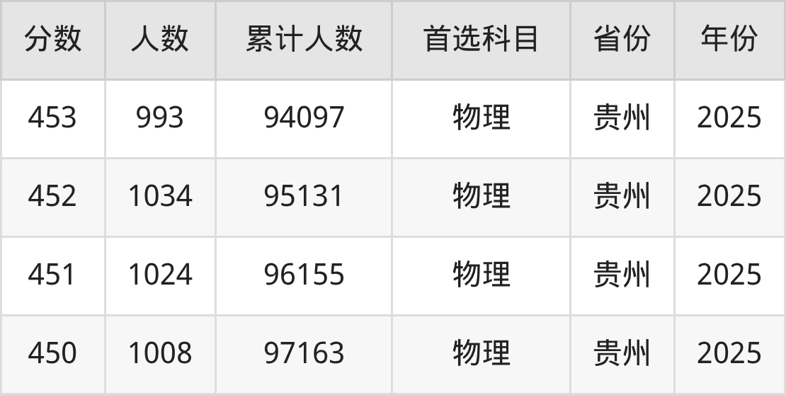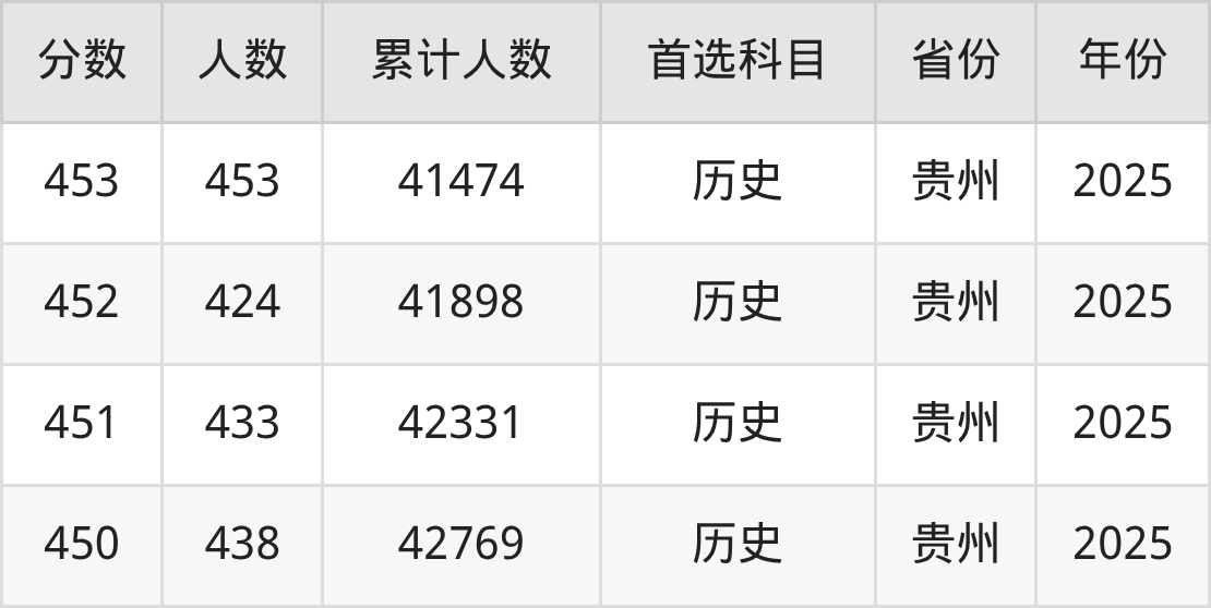 温馨提示:全国各省录取分数线不相同,本文以贵州省为例,为大家带来2025年录取分数线位于450到500分的文科大学名单汇总,并附上该分数段对应的位次排名区间,供查阅。
