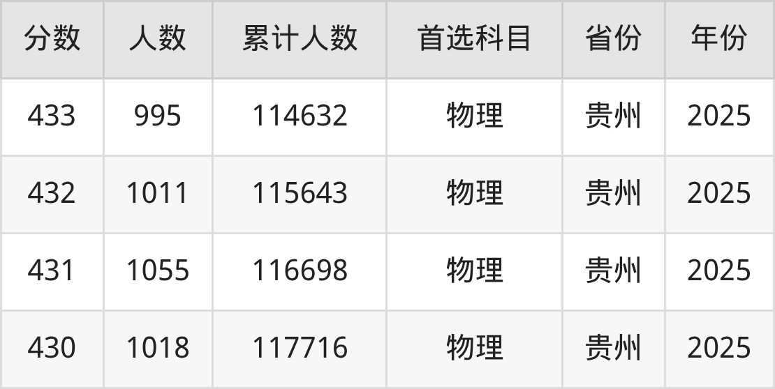 温馨提示:全国各省录取分数线不相同,本文以贵州省为例,为大家带来2025年录取分数线位于430到480分的铁路学校名单汇总,并附上该分数段对应的位次排名区间,供查阅。