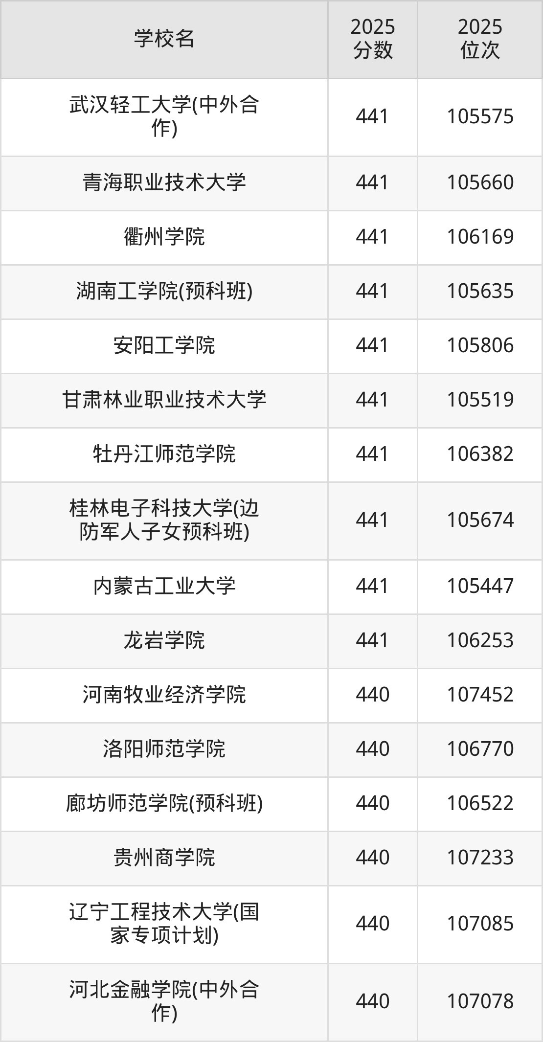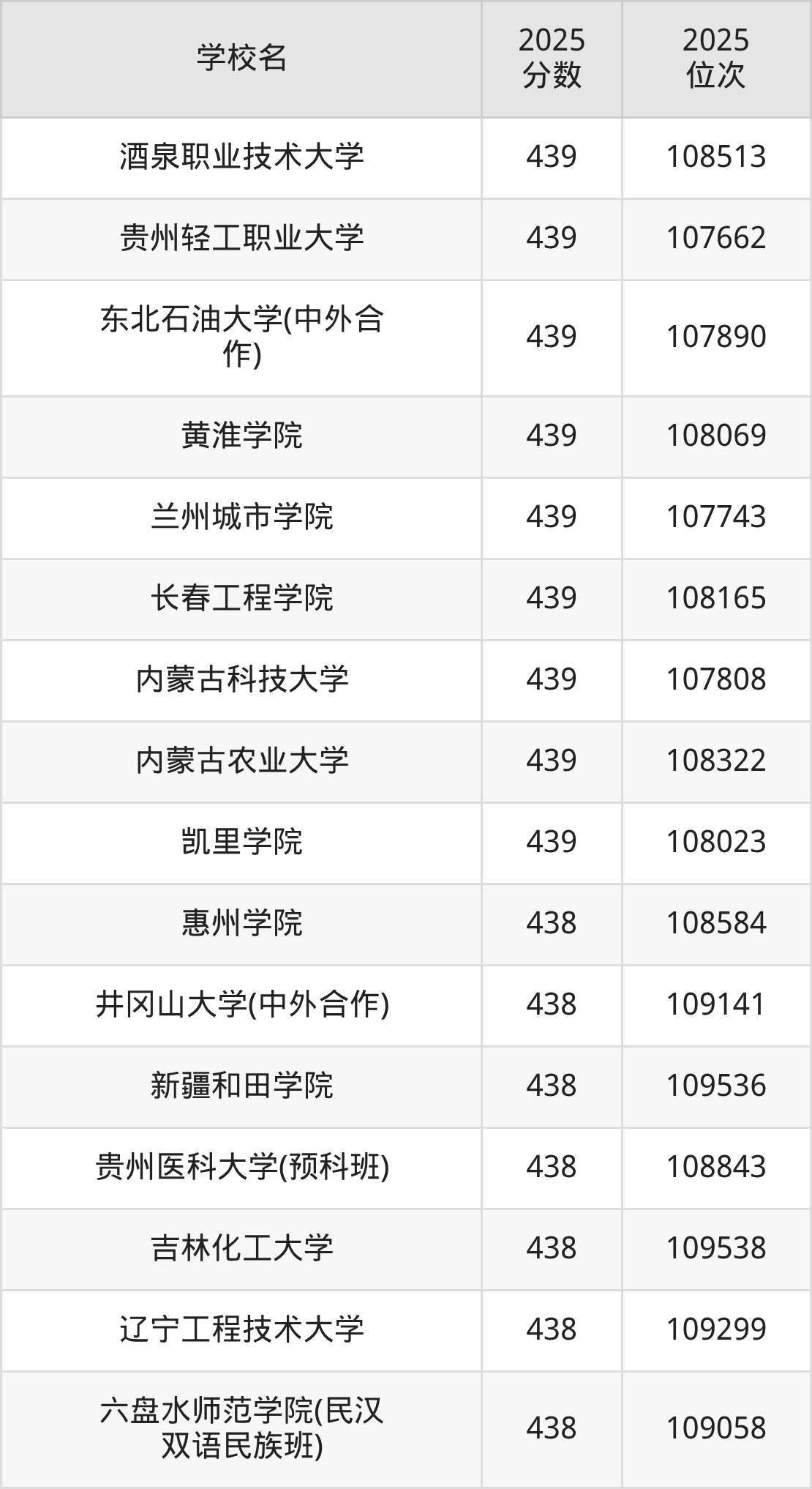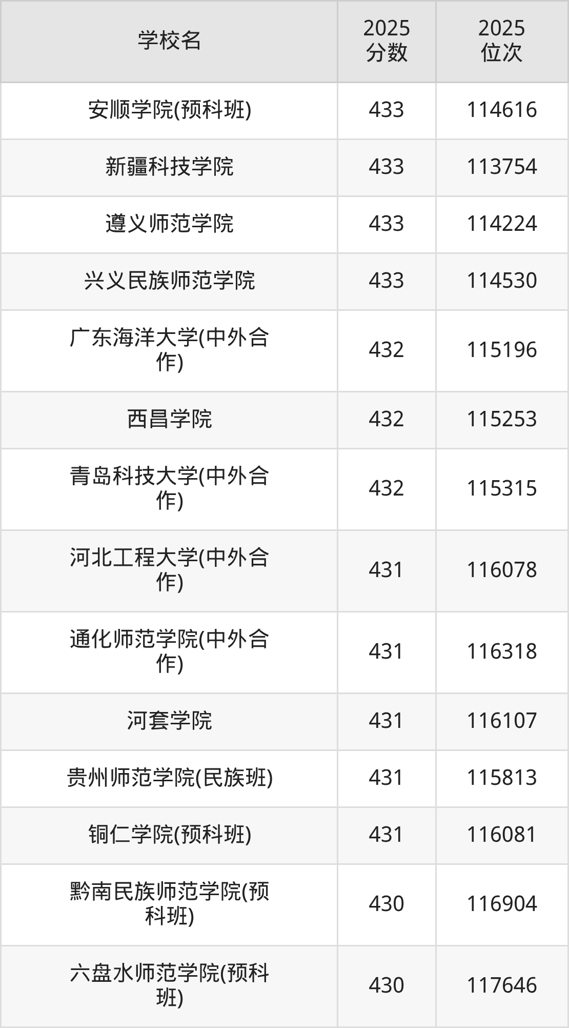 录取分数线的波动较大,下面圆梦小编为大家带来了2025年430到450分对应的位次排名区间,建议2026年位于该位次范围内的考生参考上文所整理的学校(本文仅针对贵州省)。