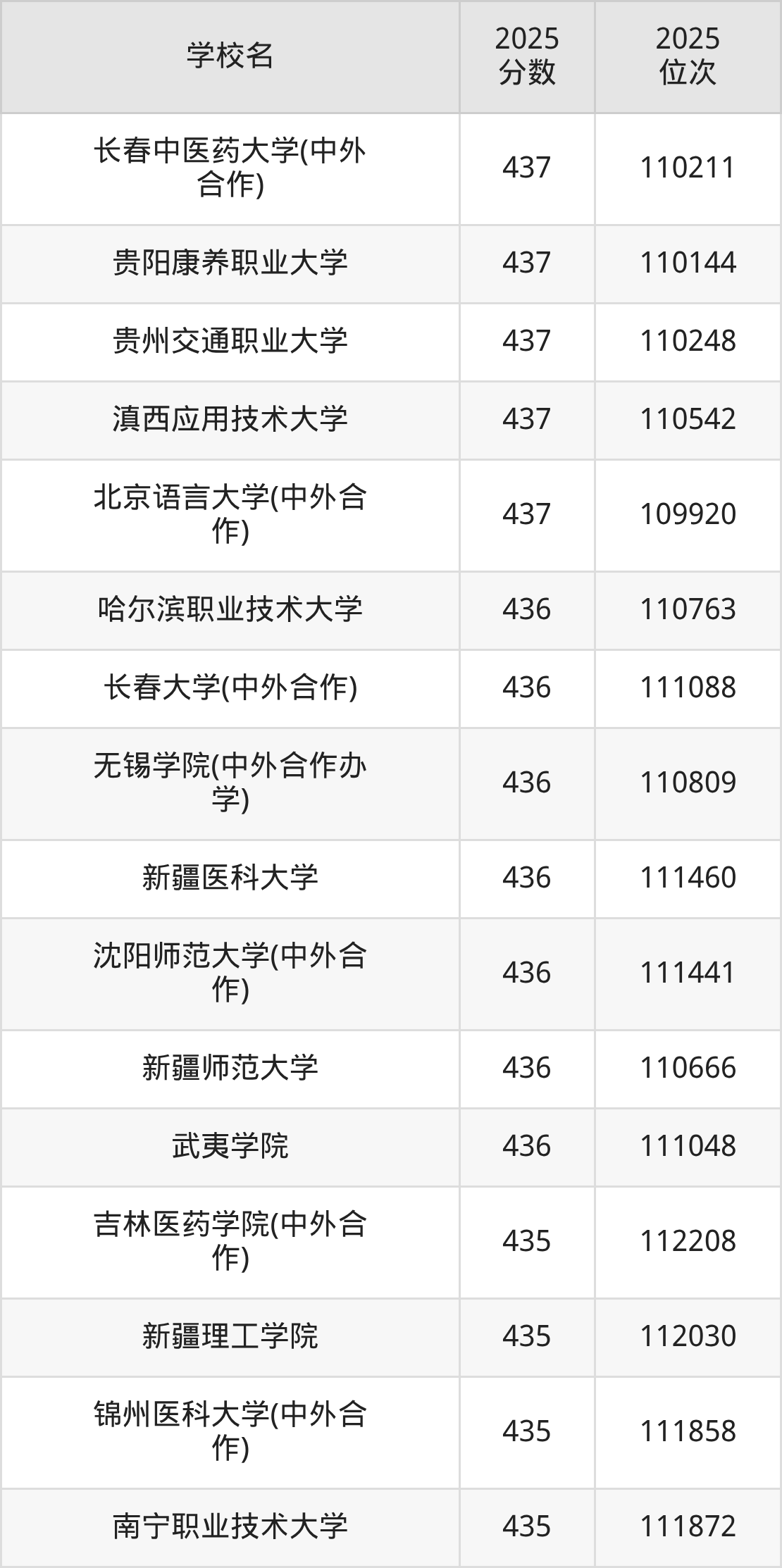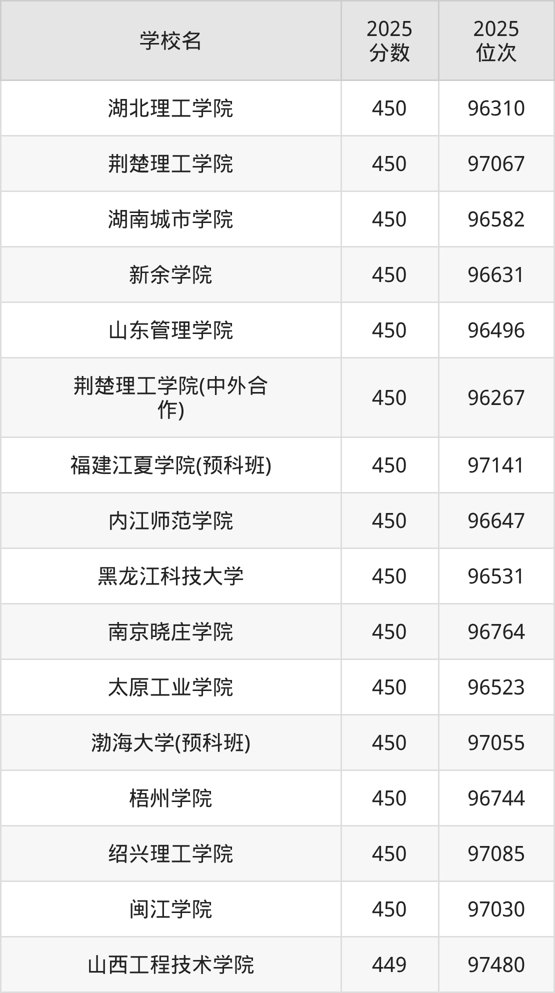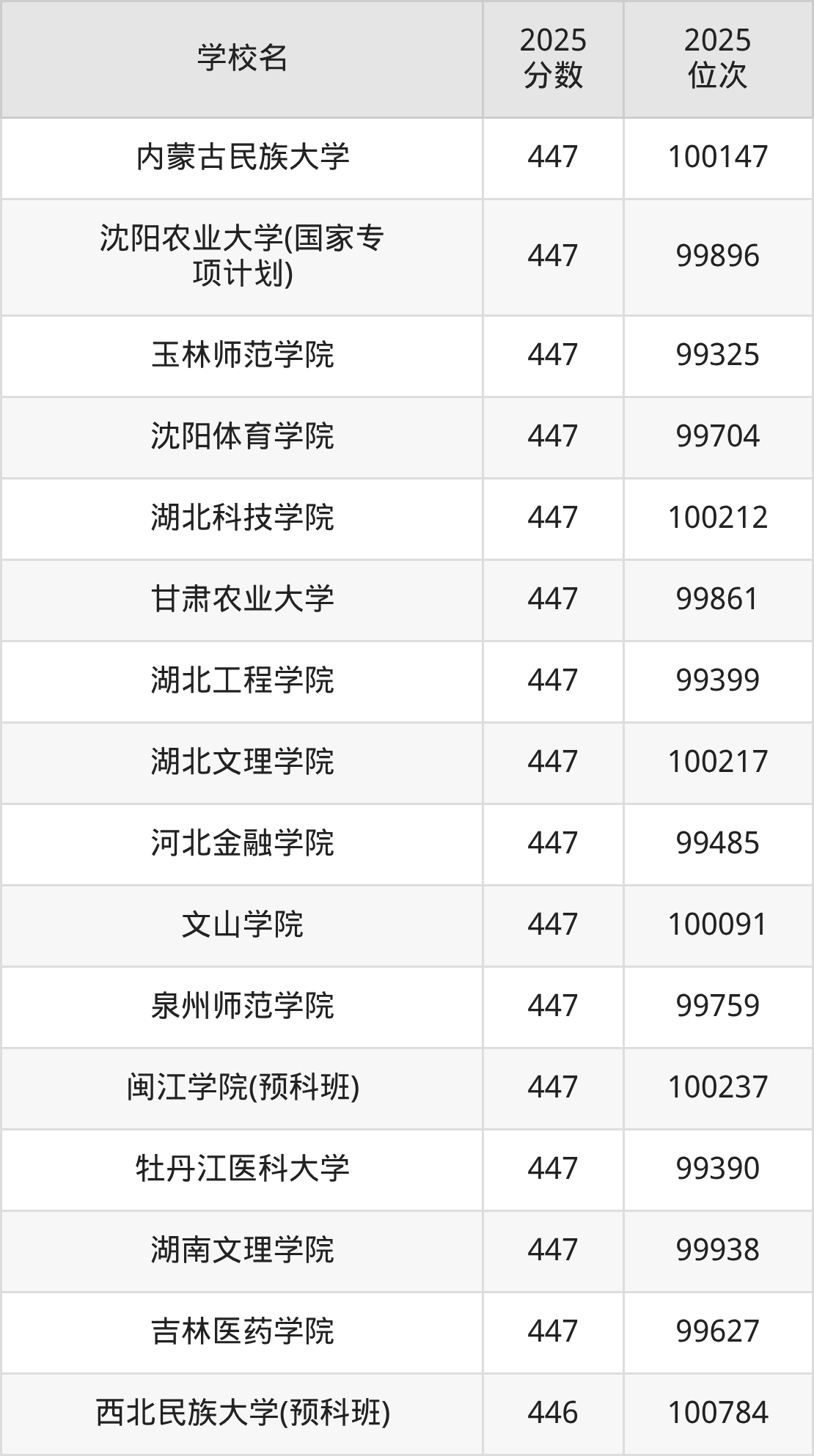 | 学校名 | 2025 分数 | 2025 位次 |