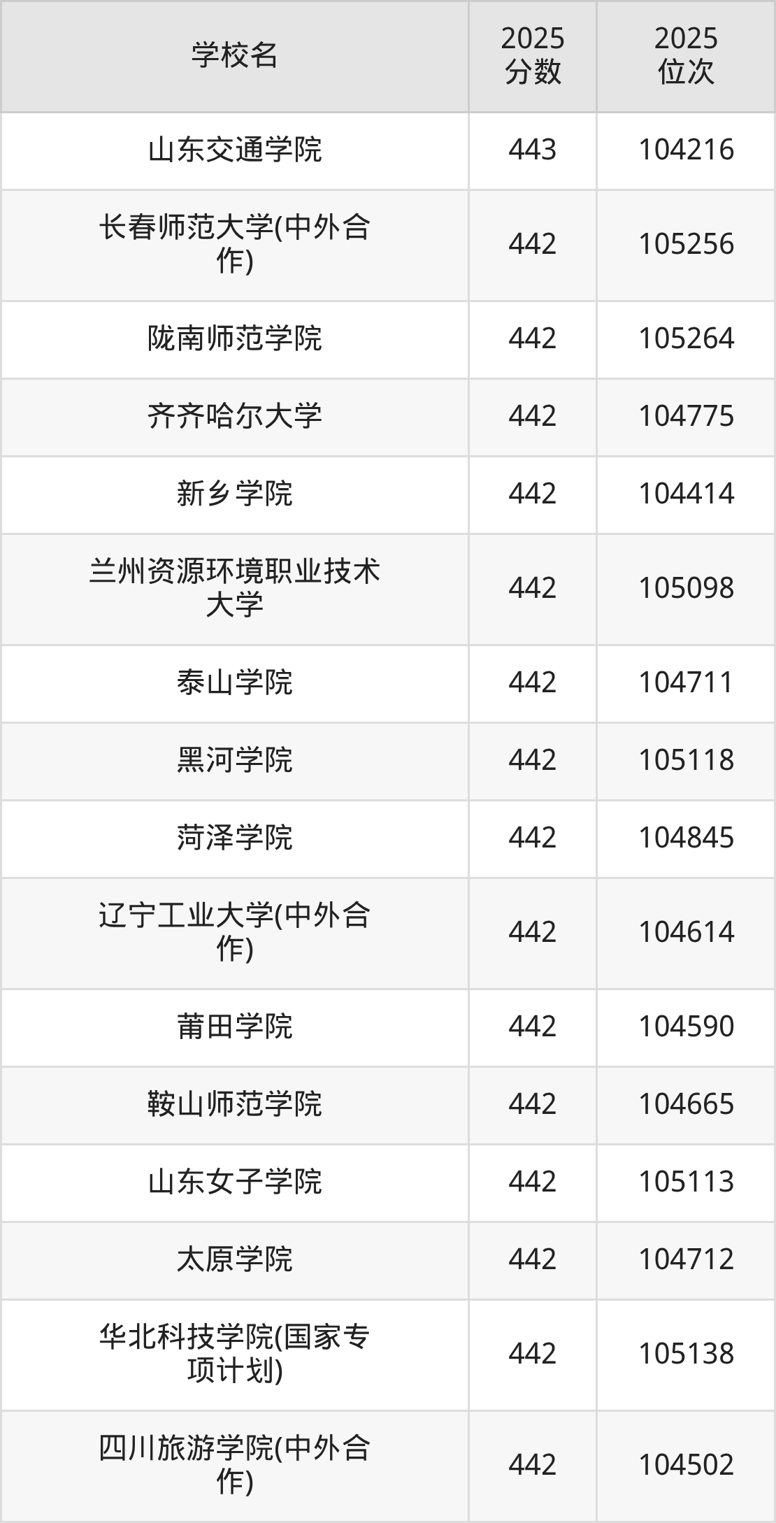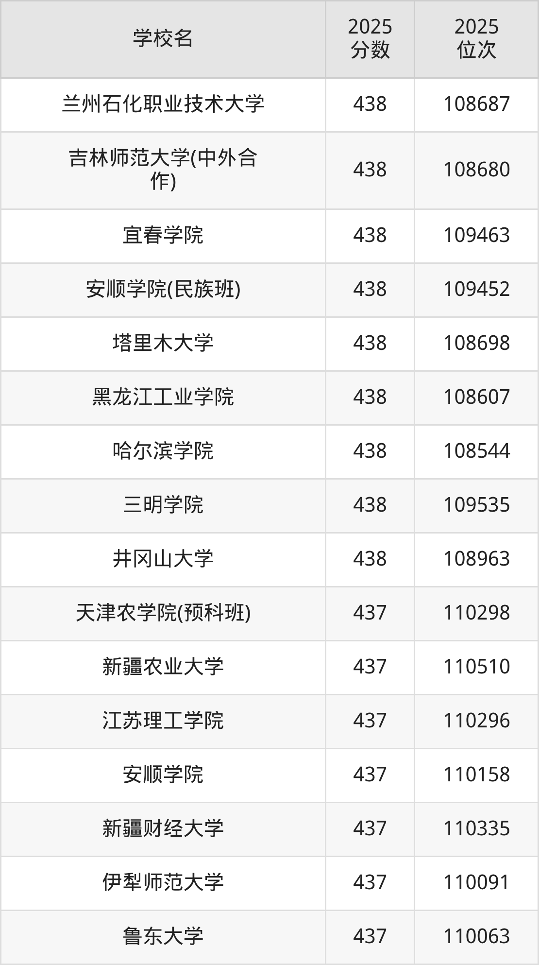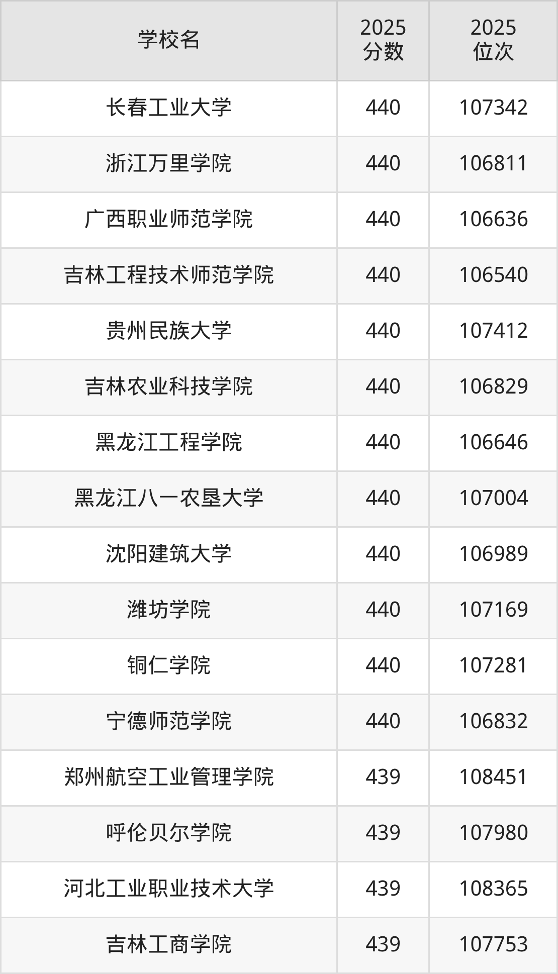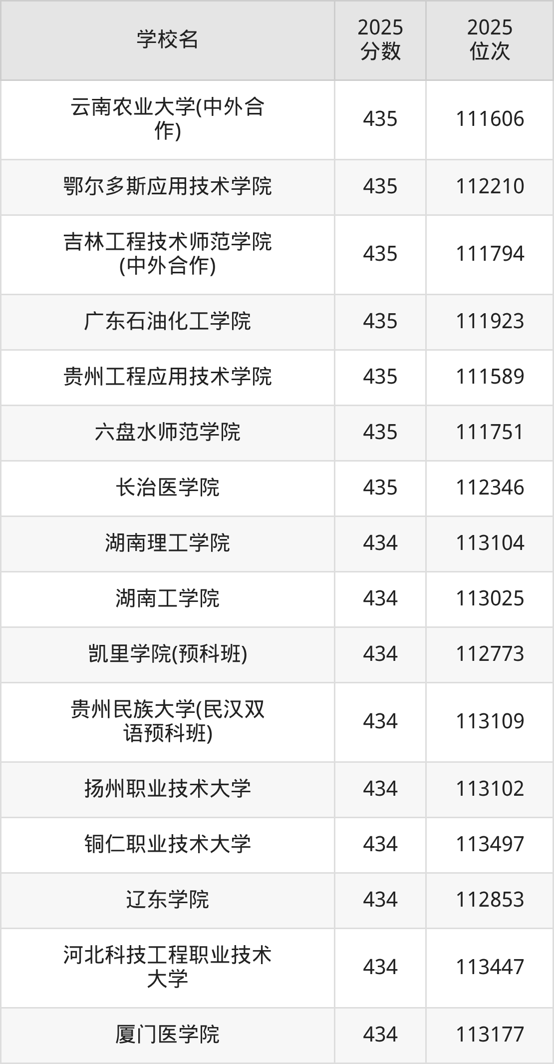 | 学校名 | 2025 分数 | 2025 位次 |