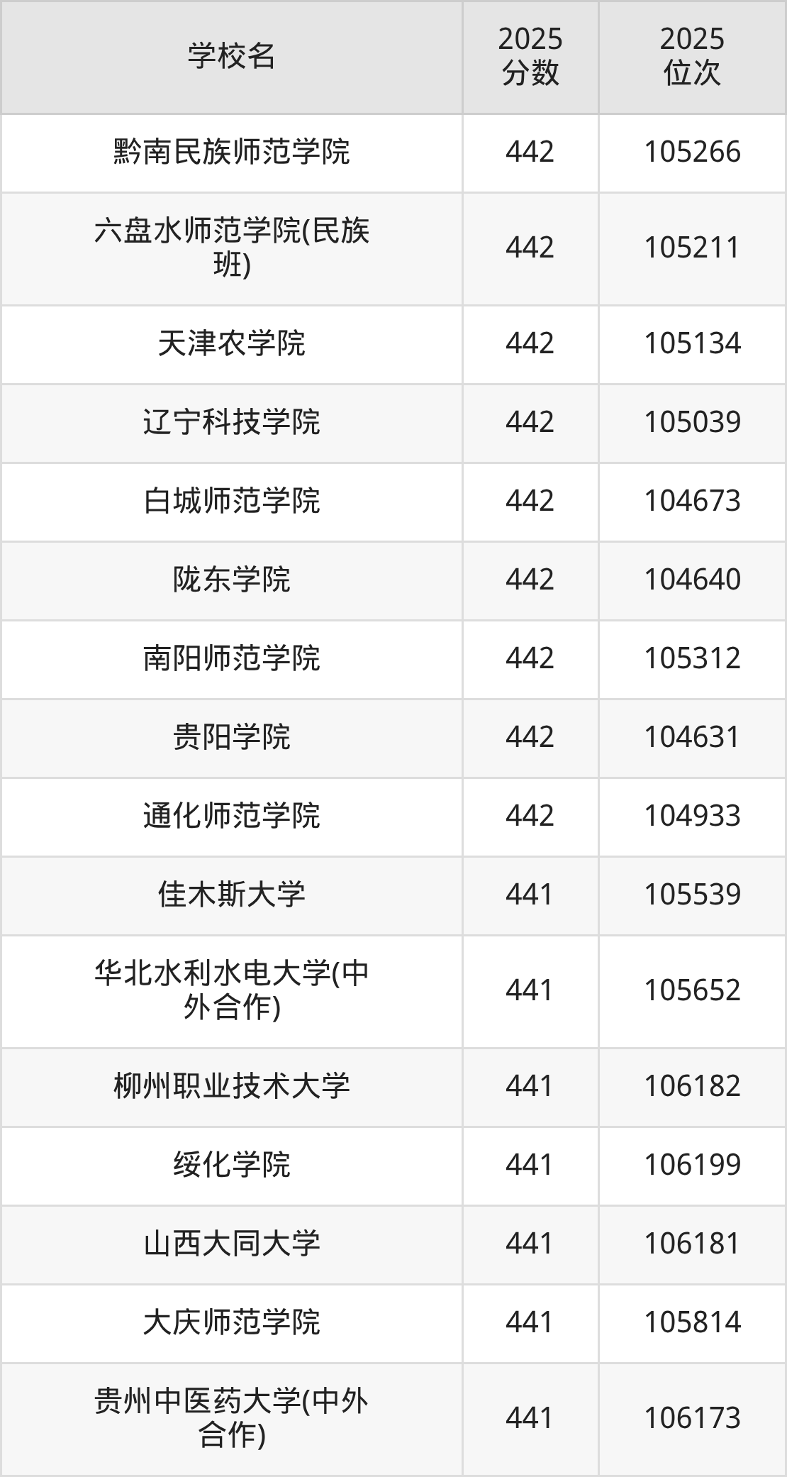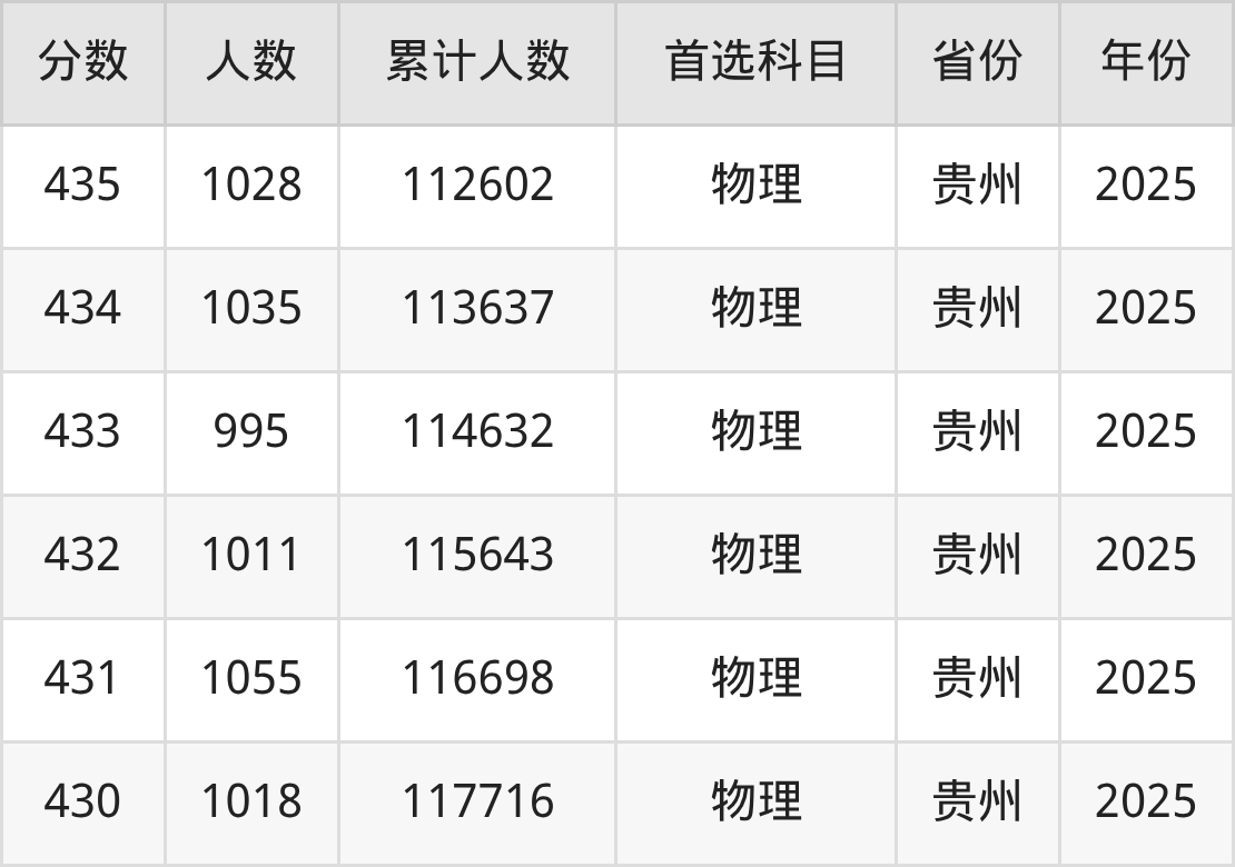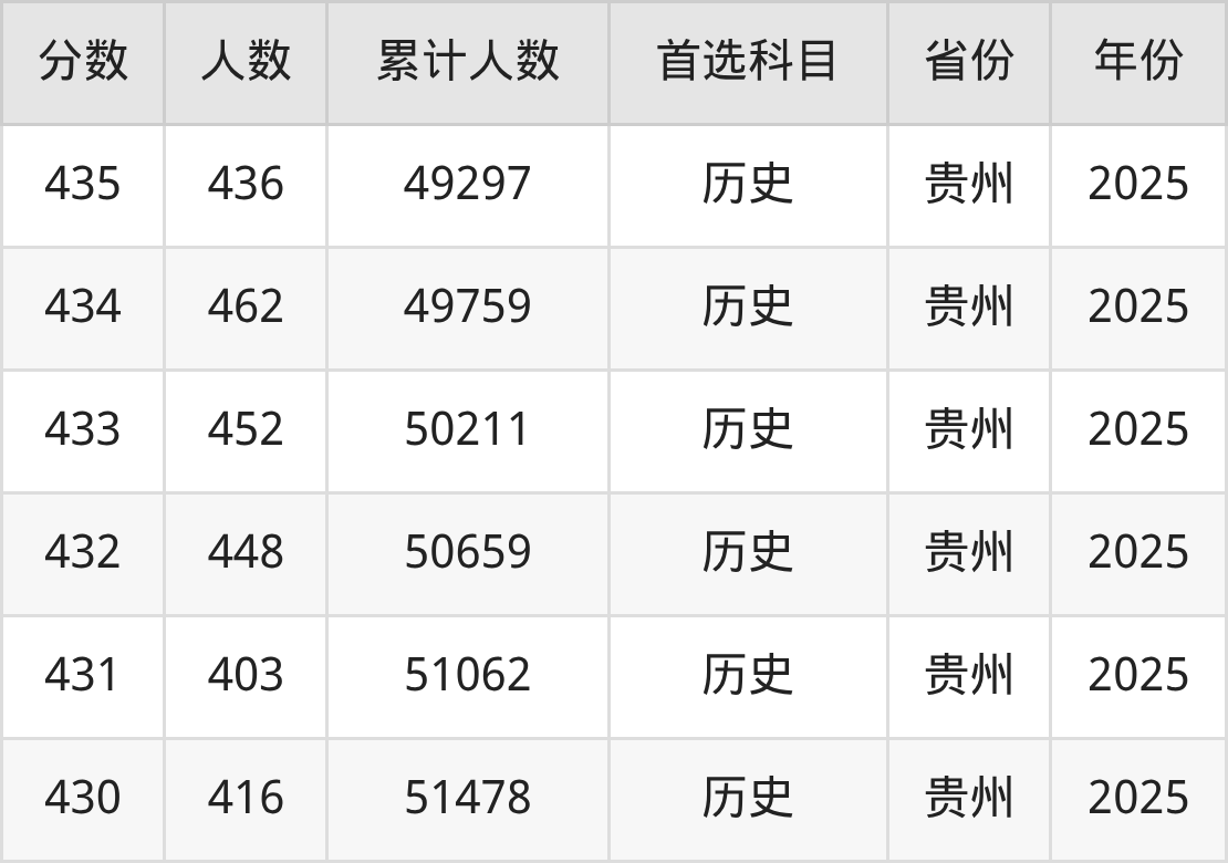 温馨提示:全国各省录取分数线不相同,本文以贵州省为例,为大家带来2025年录取分数线位于430到450分的公办本科大学名单汇总,并附上该分数段对应的位次排名区间,供查阅。