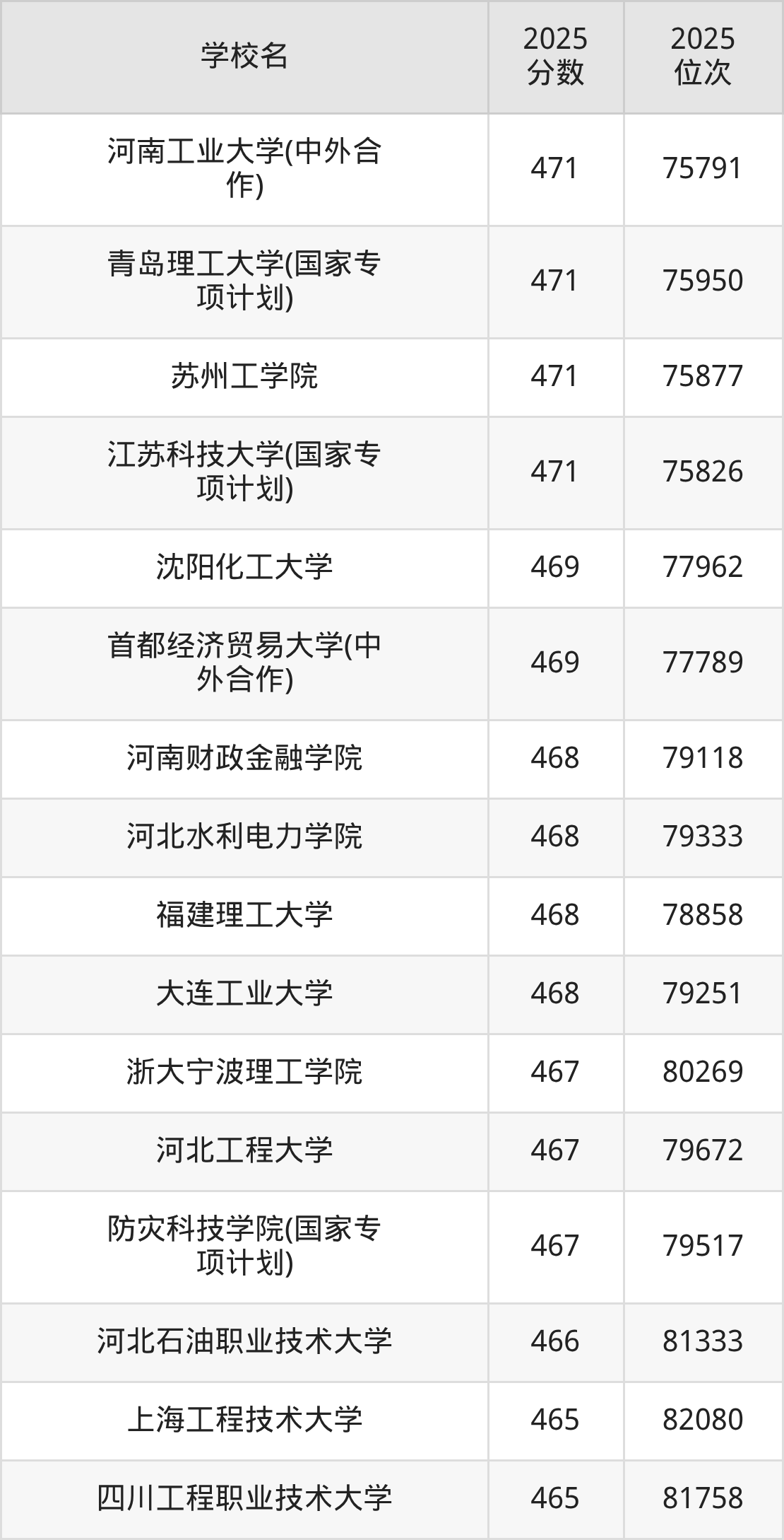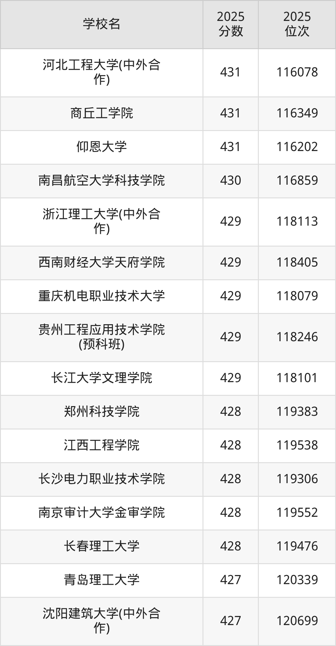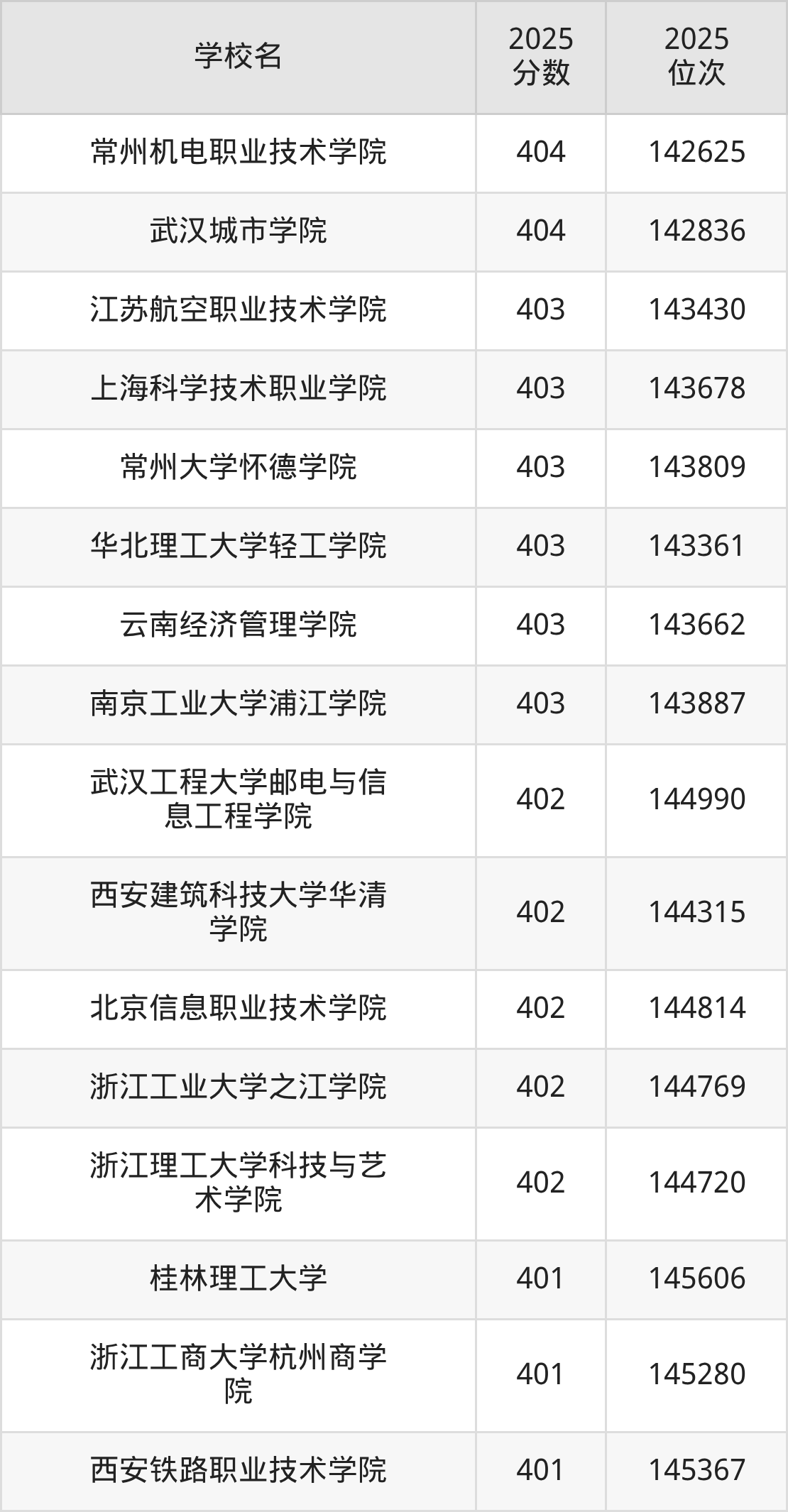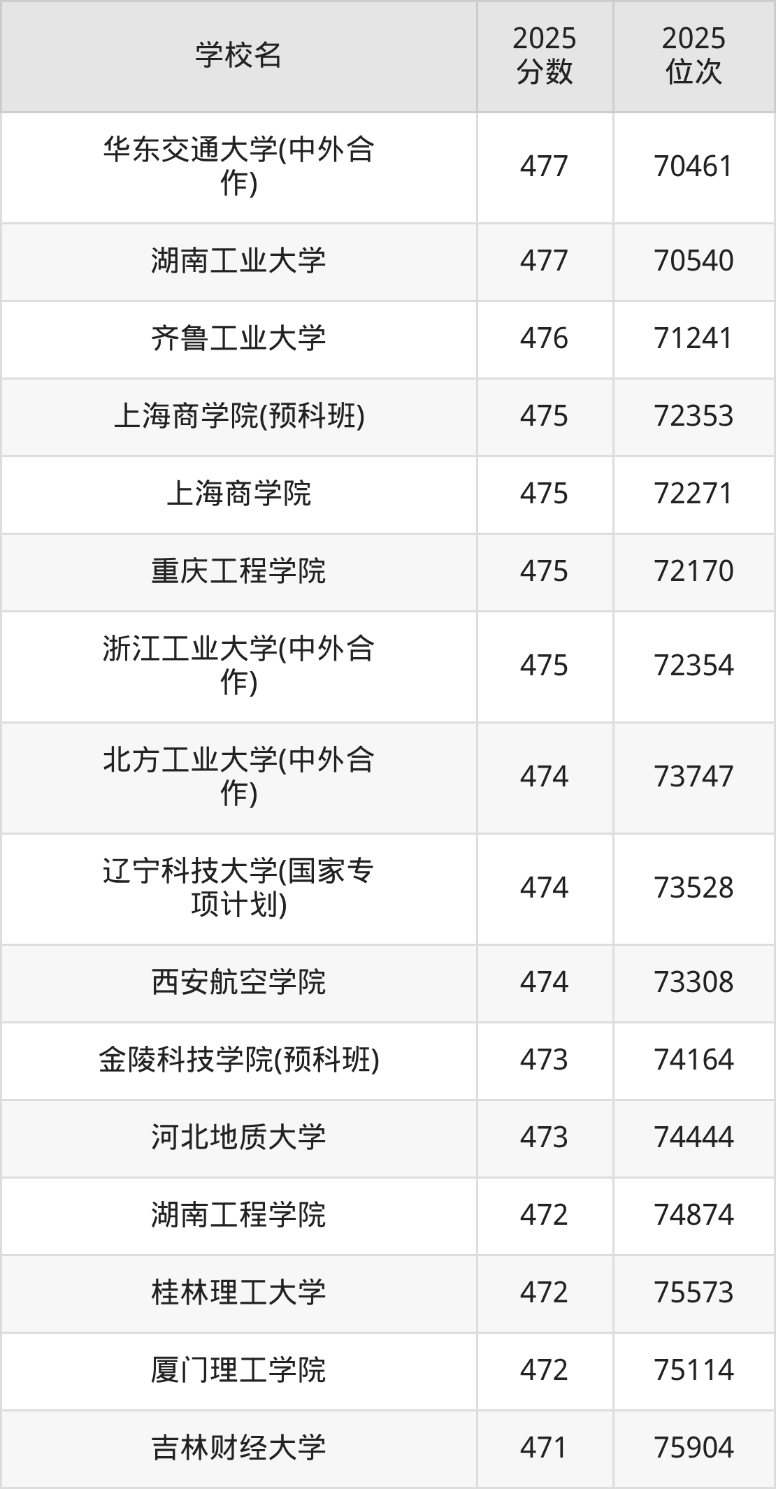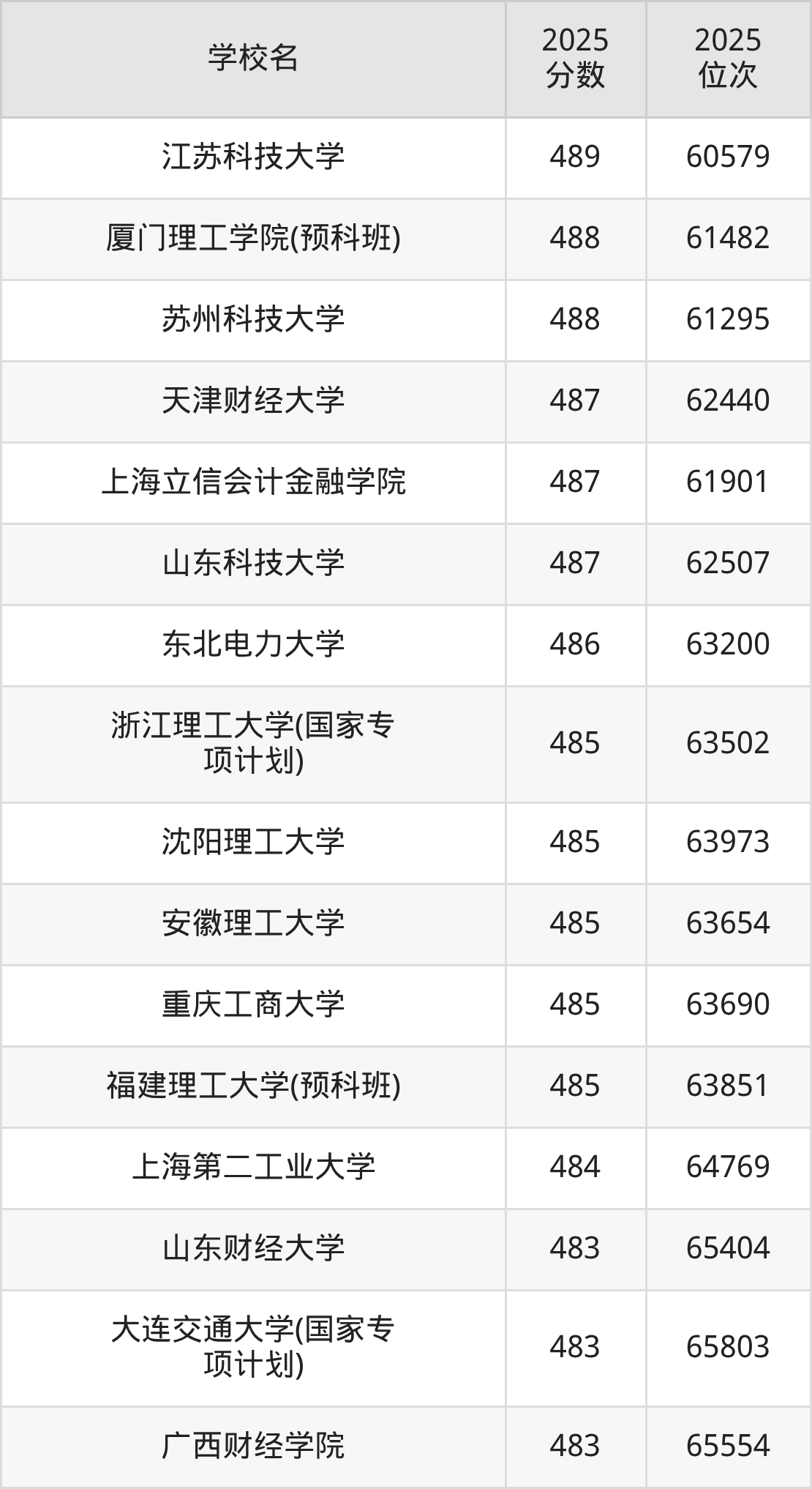| 学校名 | 2025 分数 | 2025 位次 |
