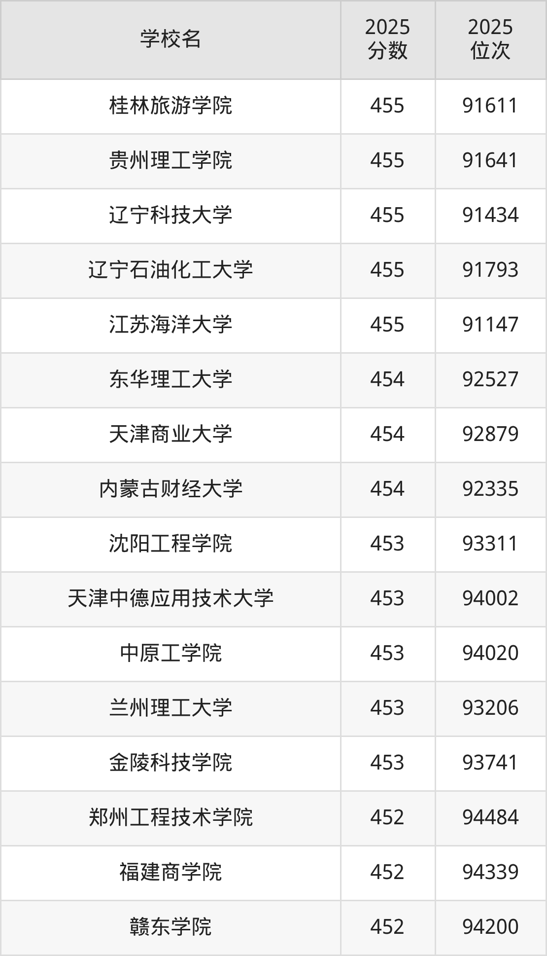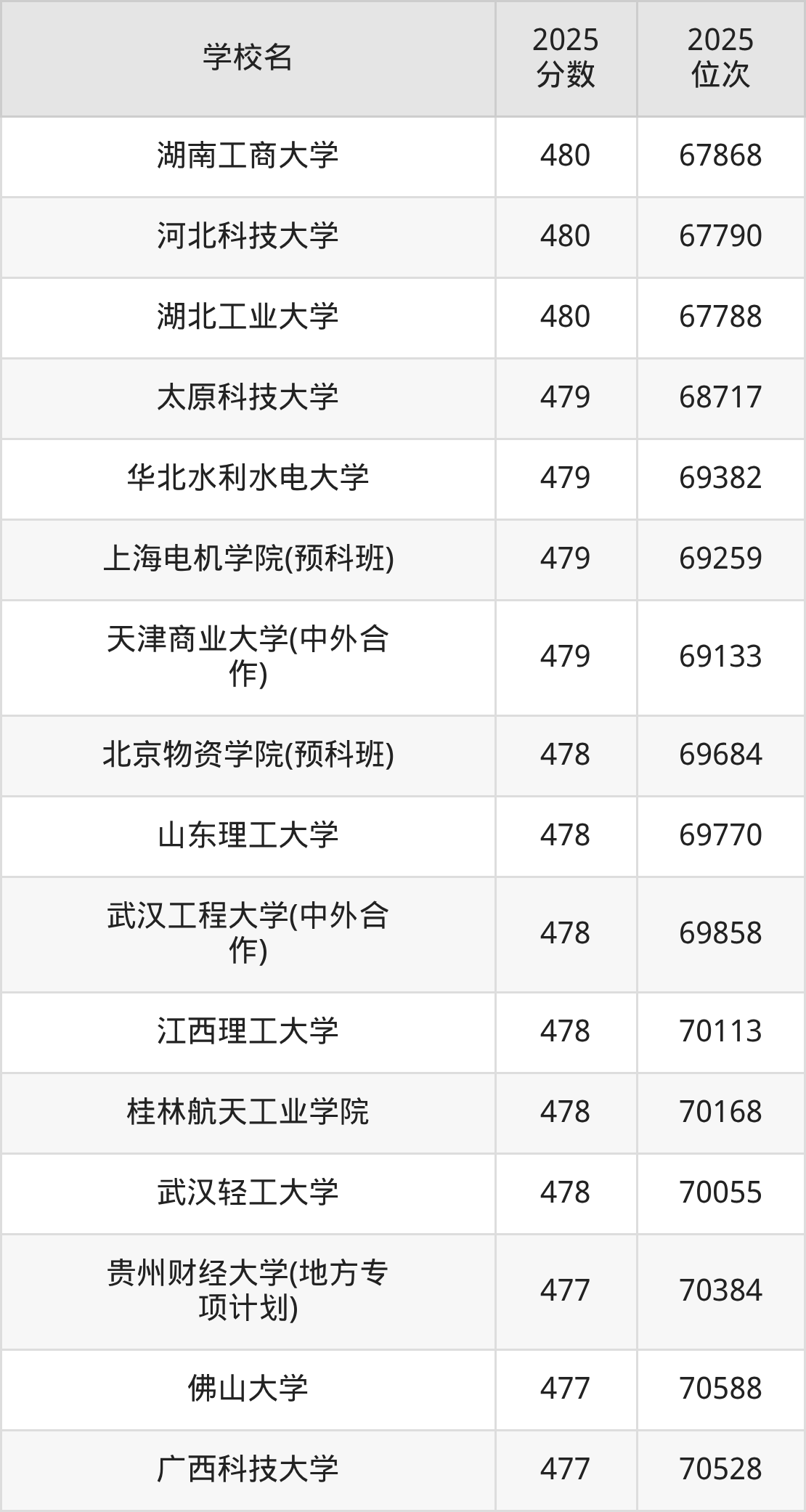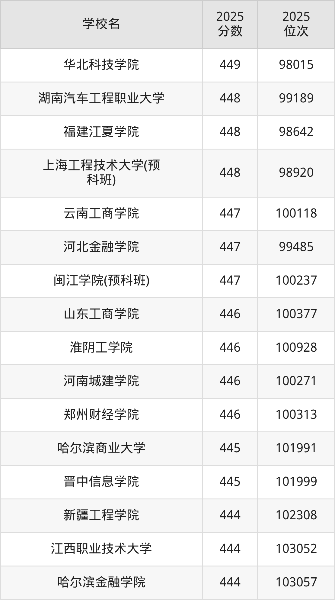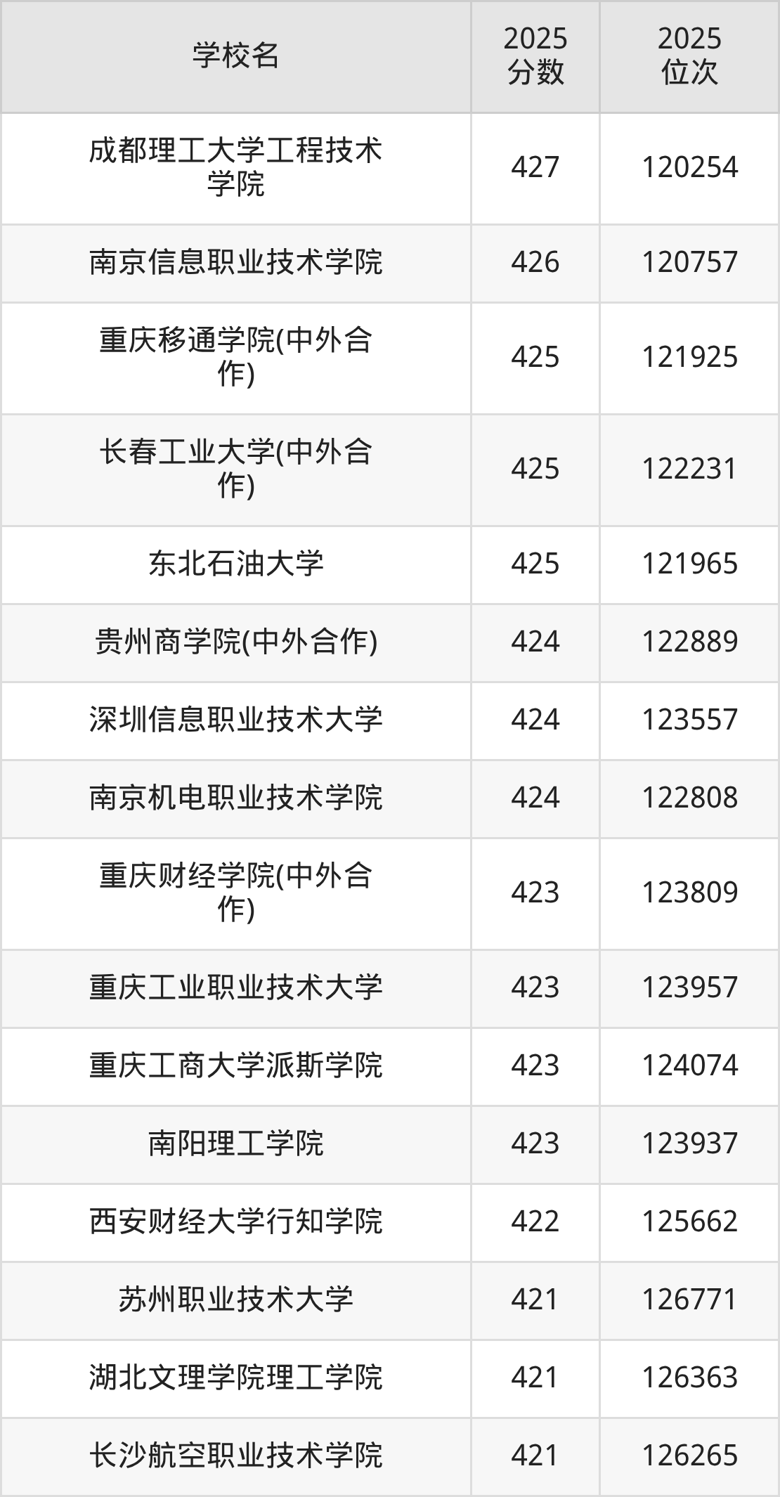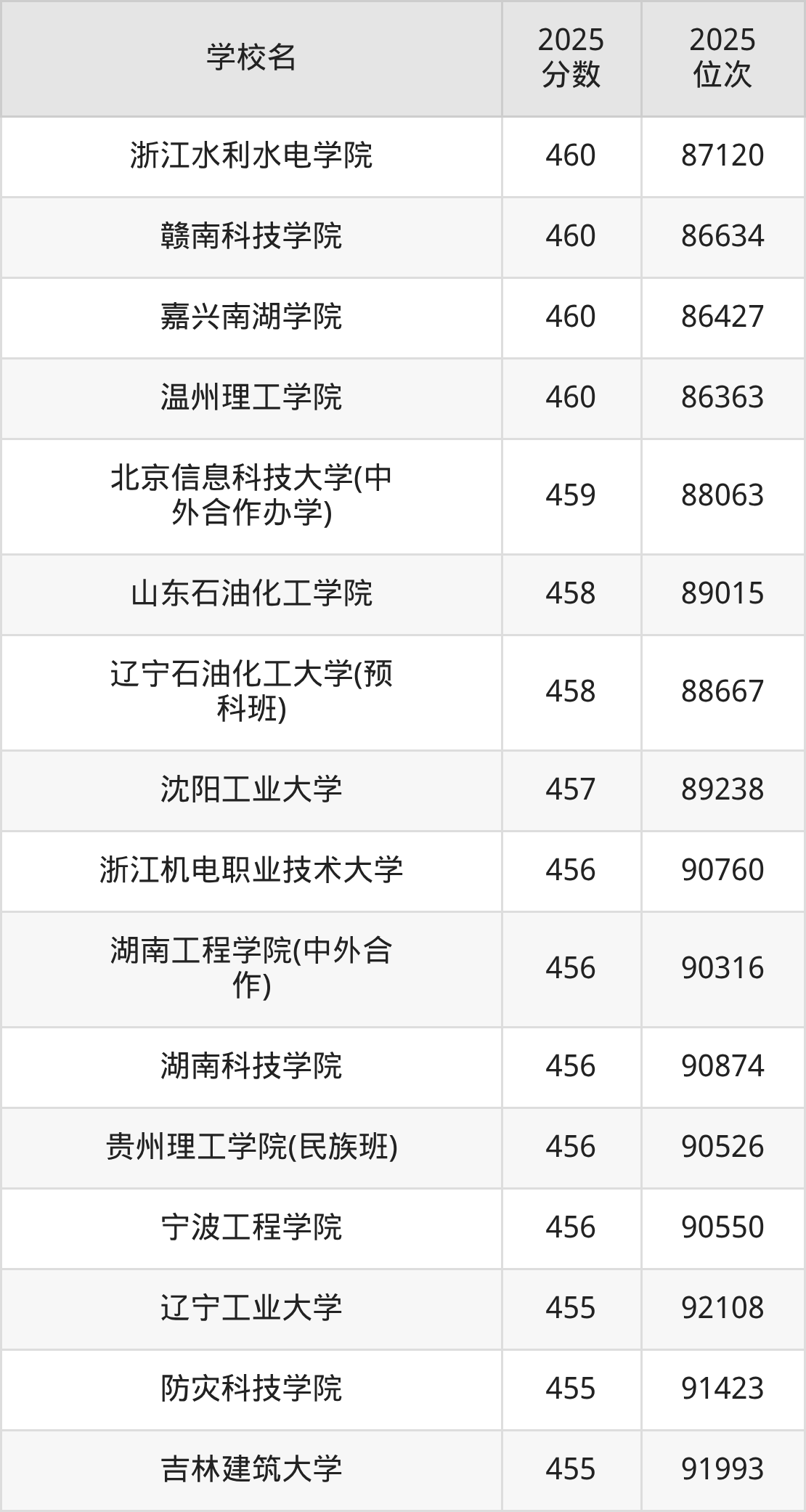 | 学校名 | 2025 分数 | 2025 位次 |