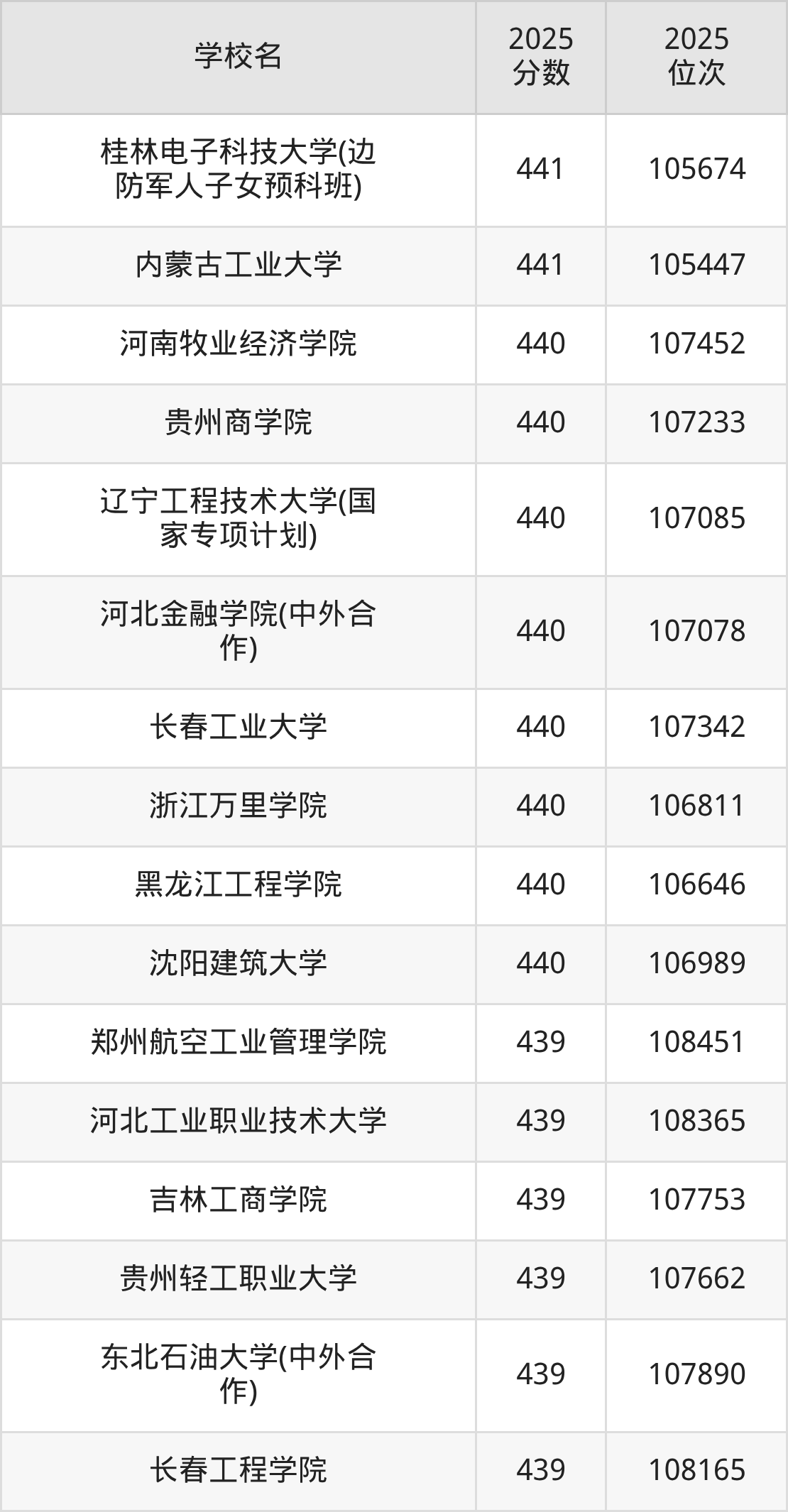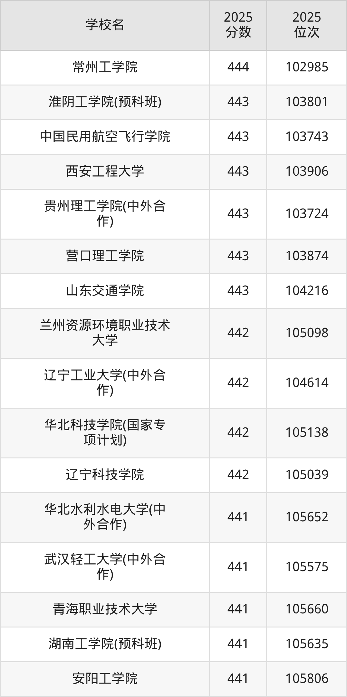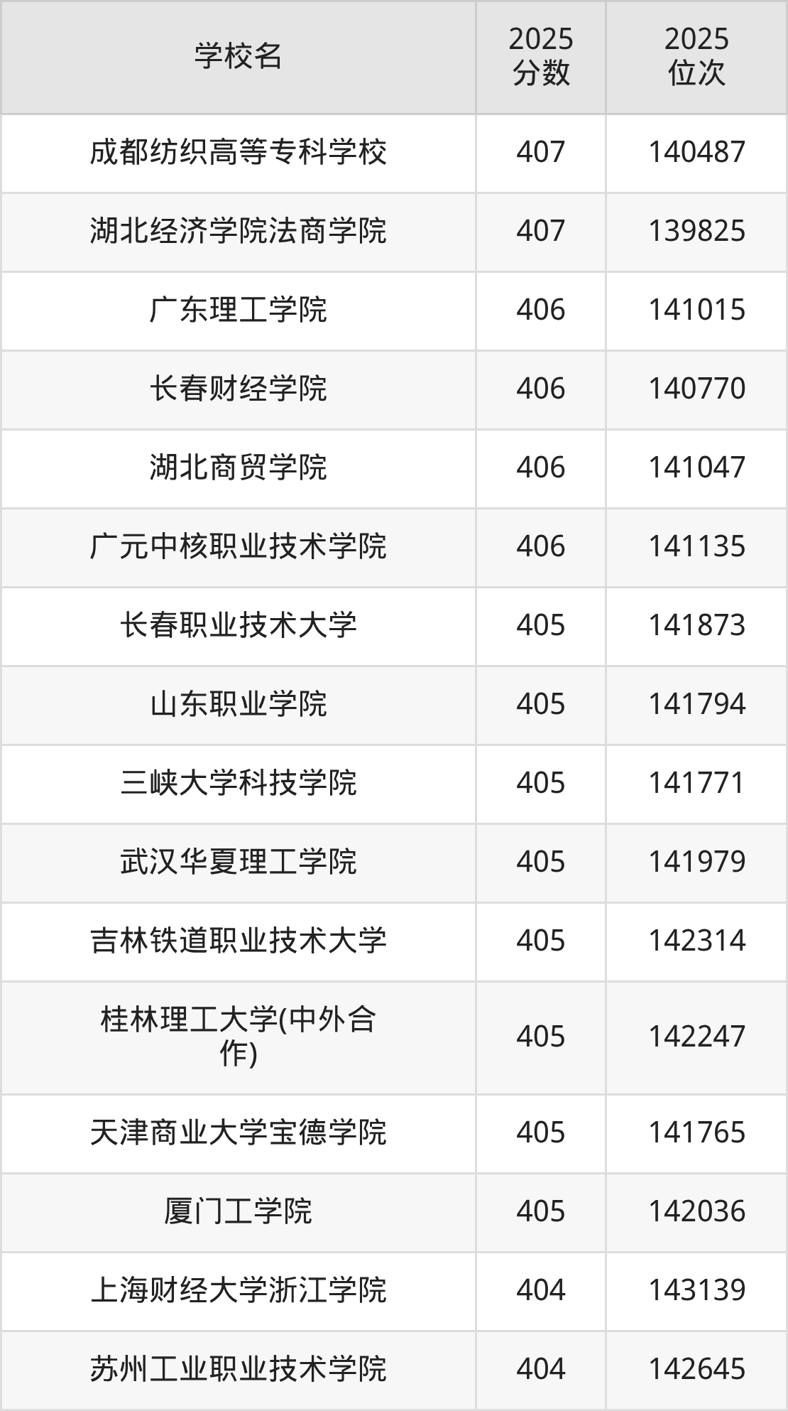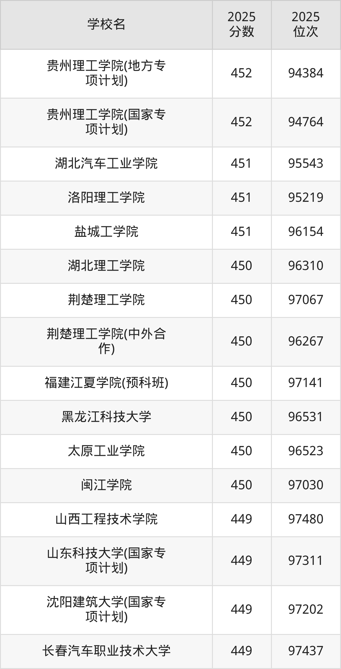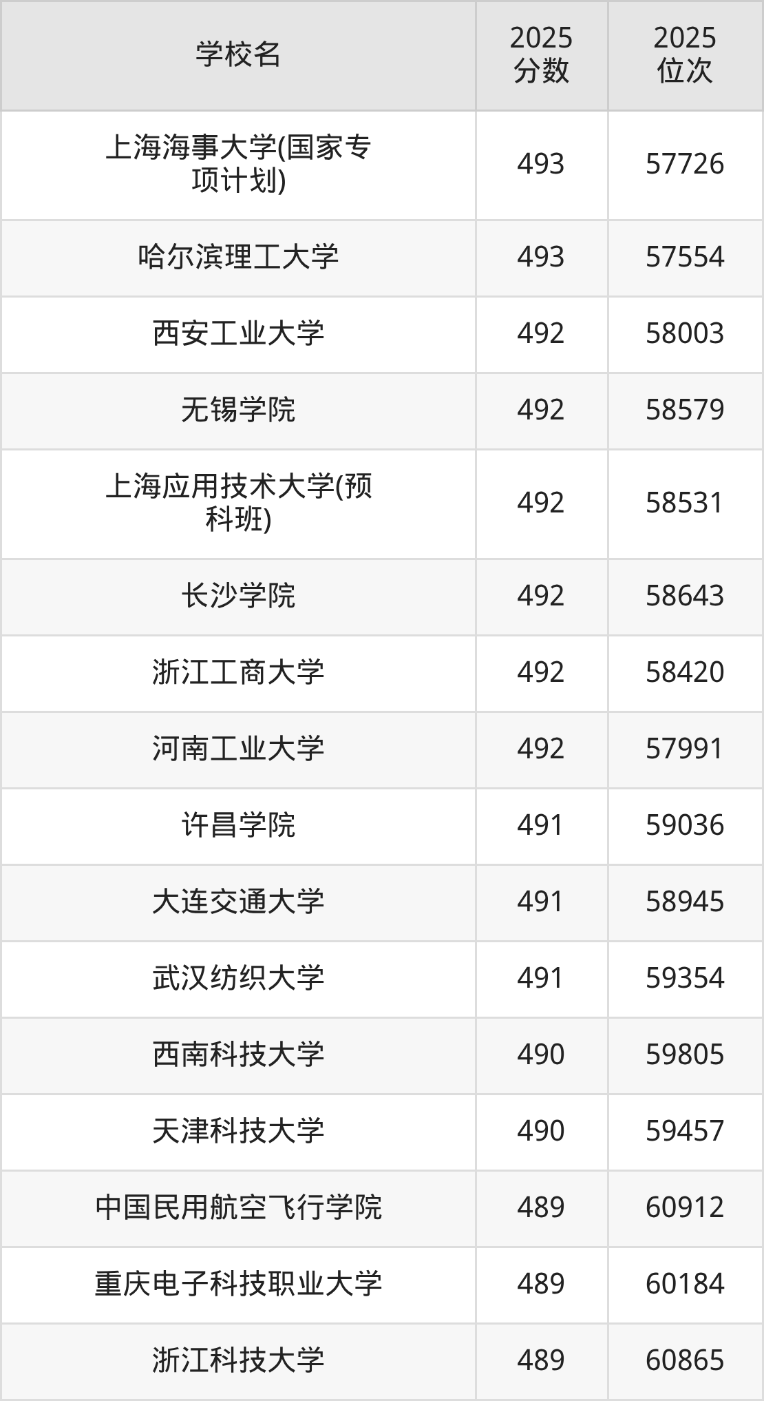 | 学校名 | 2025 分数 | 2025 位次 |