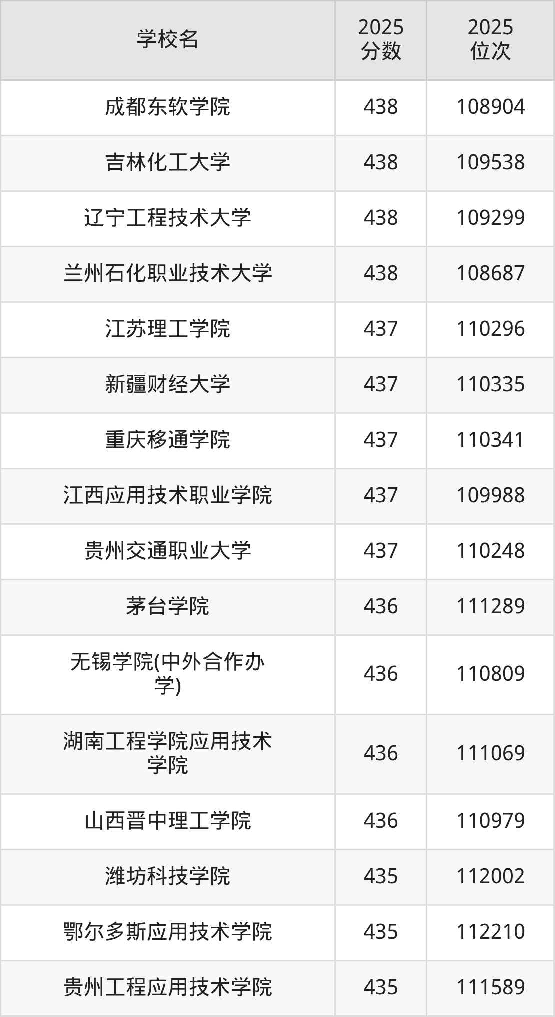 | 四川工程职业技术大学 | 438 | 47980 |