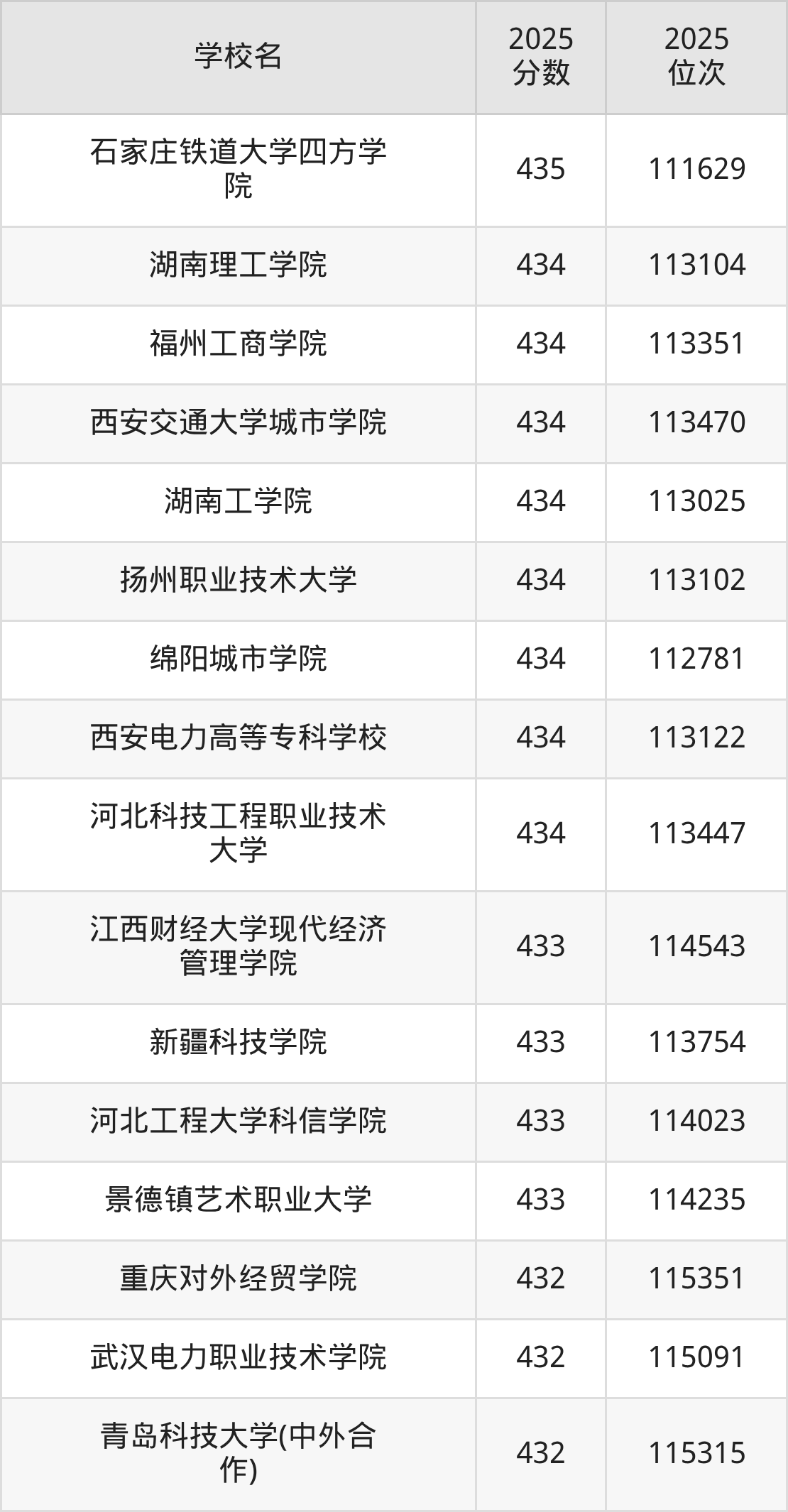 | 包头铁道职业技术学院 | 433 | 50059 |