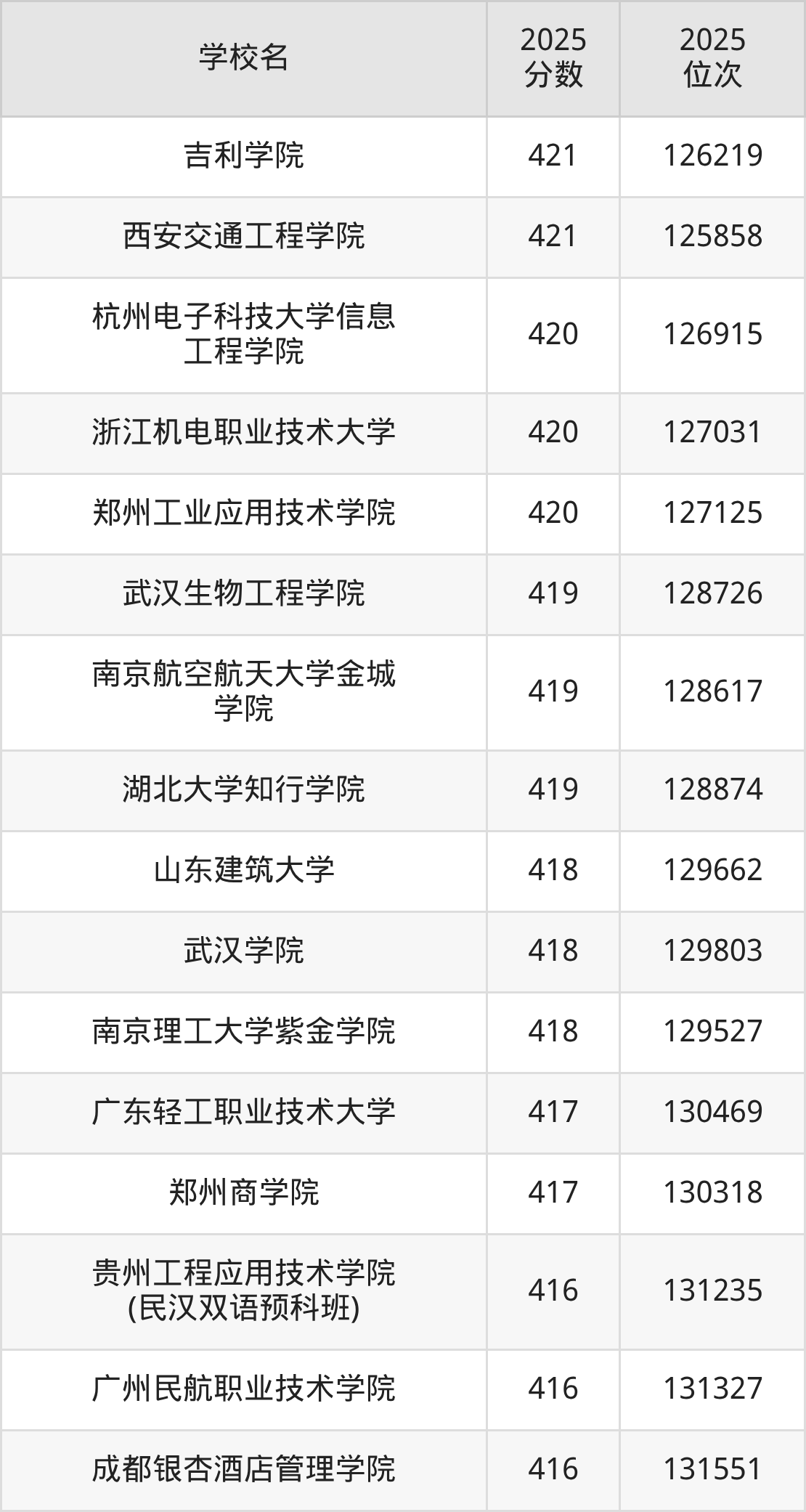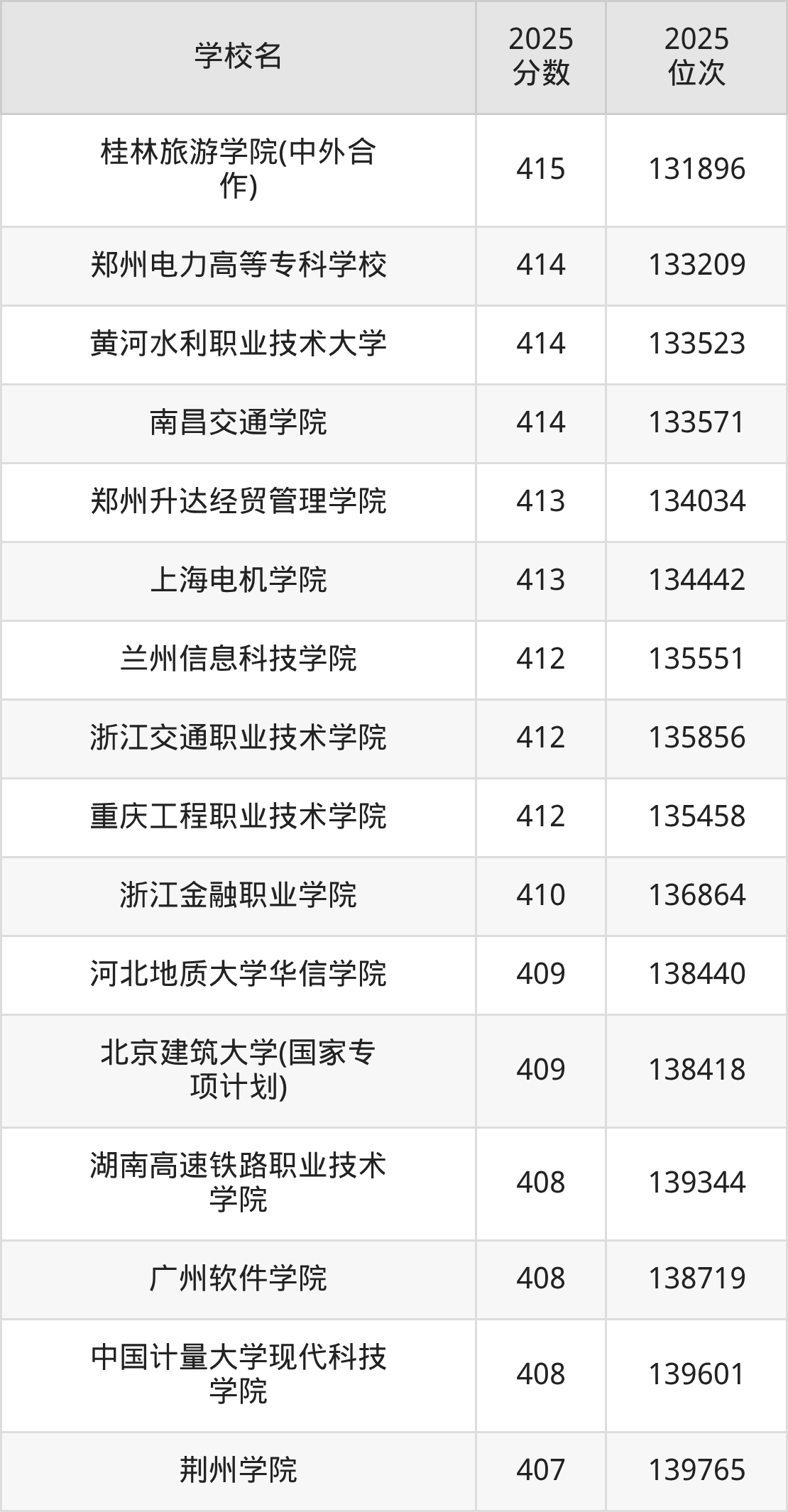 | 湖北铁道运输职业学院 | 419 | 56016 |