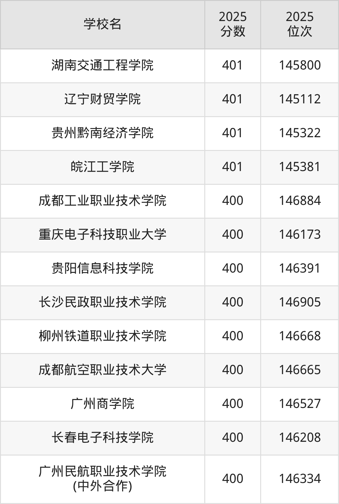 | 湖南机电职业技术学院 | 411 | 59196 |