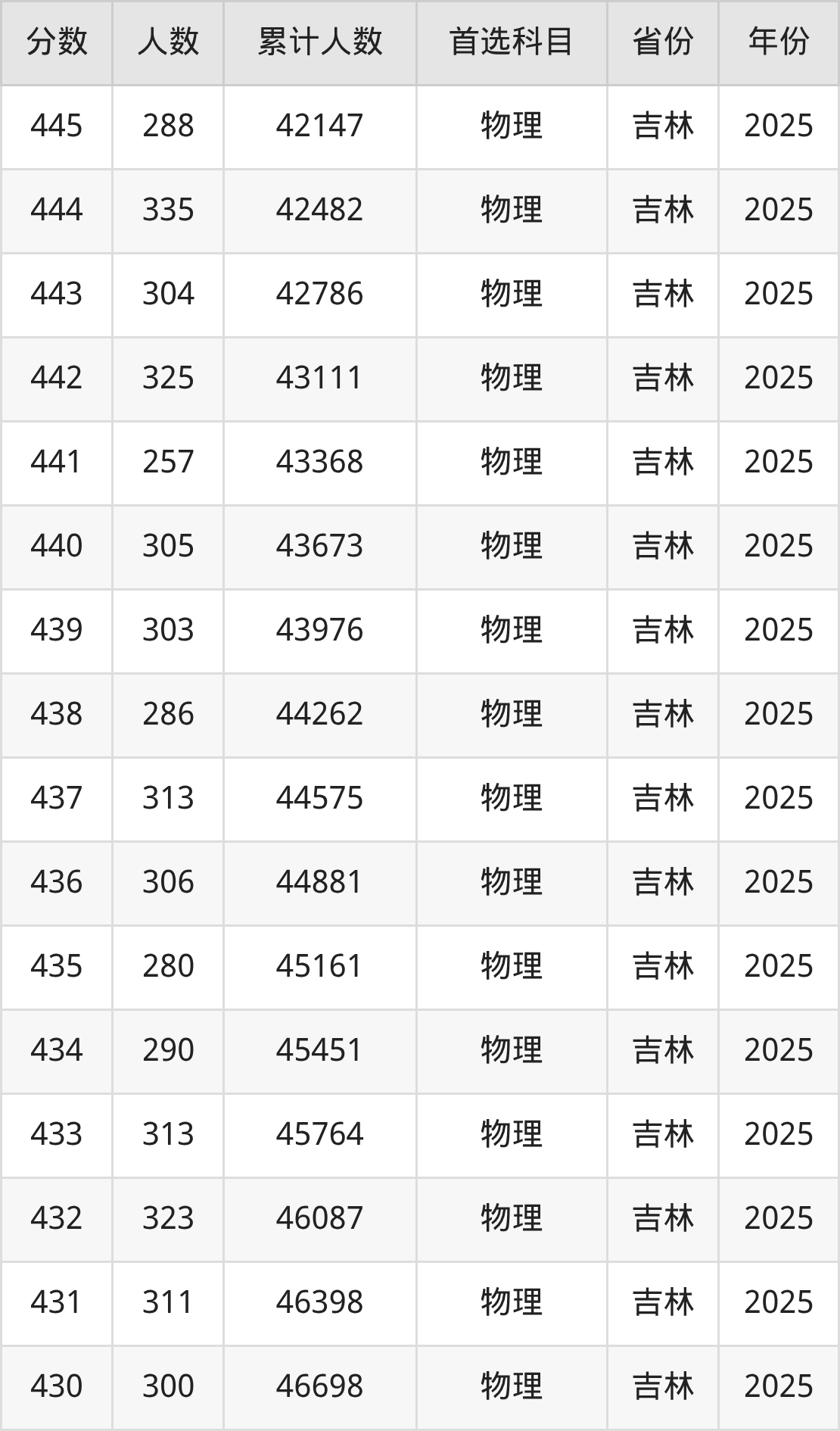 温馨提示:全国各省录取分数线不相同,本文以吉林省为例,为大家带来2025年录取分数线位于420到460分的985大学名单汇总,并附上该分数段对应的位次排名区间,供查阅。