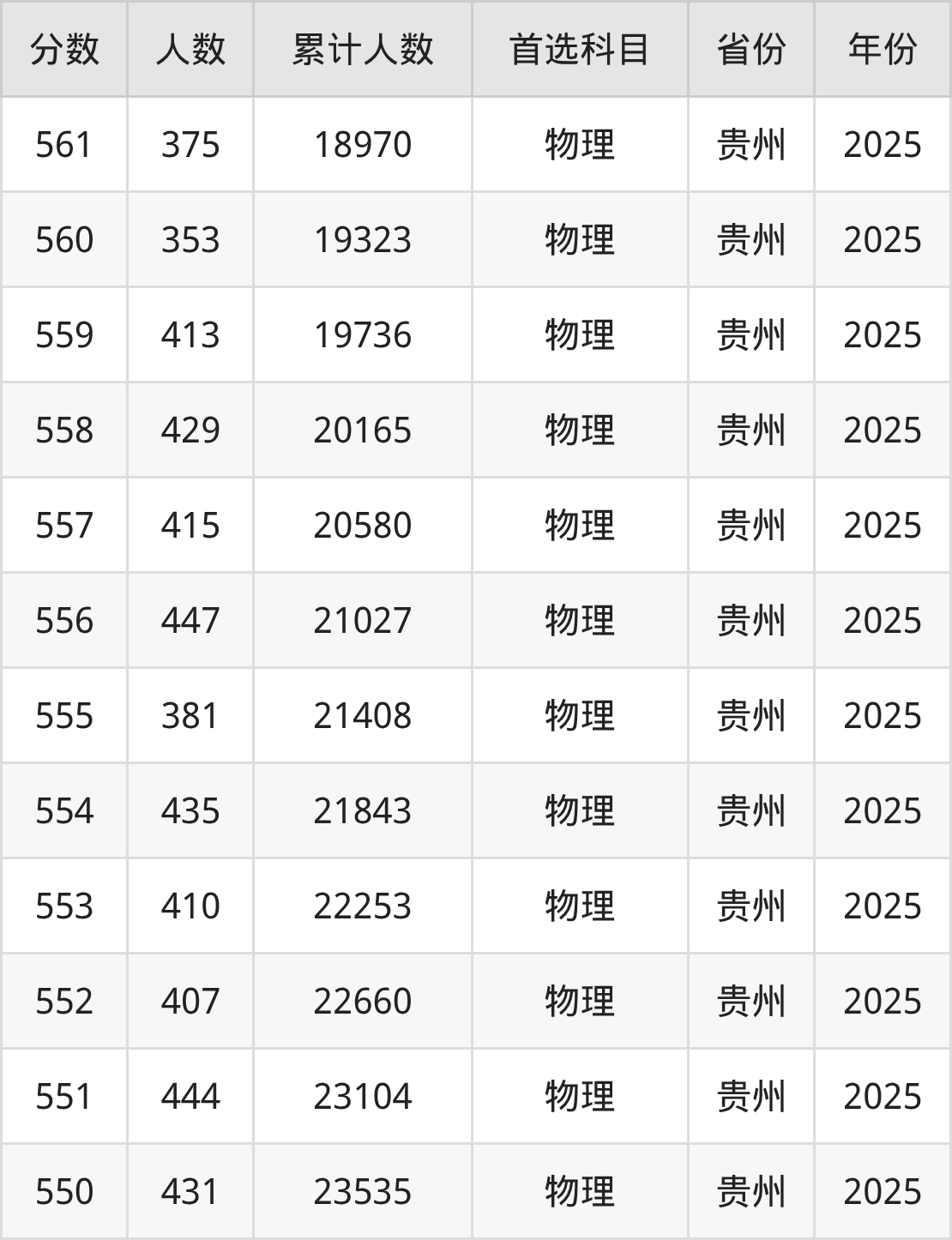 录取分数线的波动较大,下面圆梦小编为大家带来了2025年550到560分对应的位次排名区间,建议2026年位于该位次范围内的考生参考上文所整理的学校(本文仅针对贵州省)。